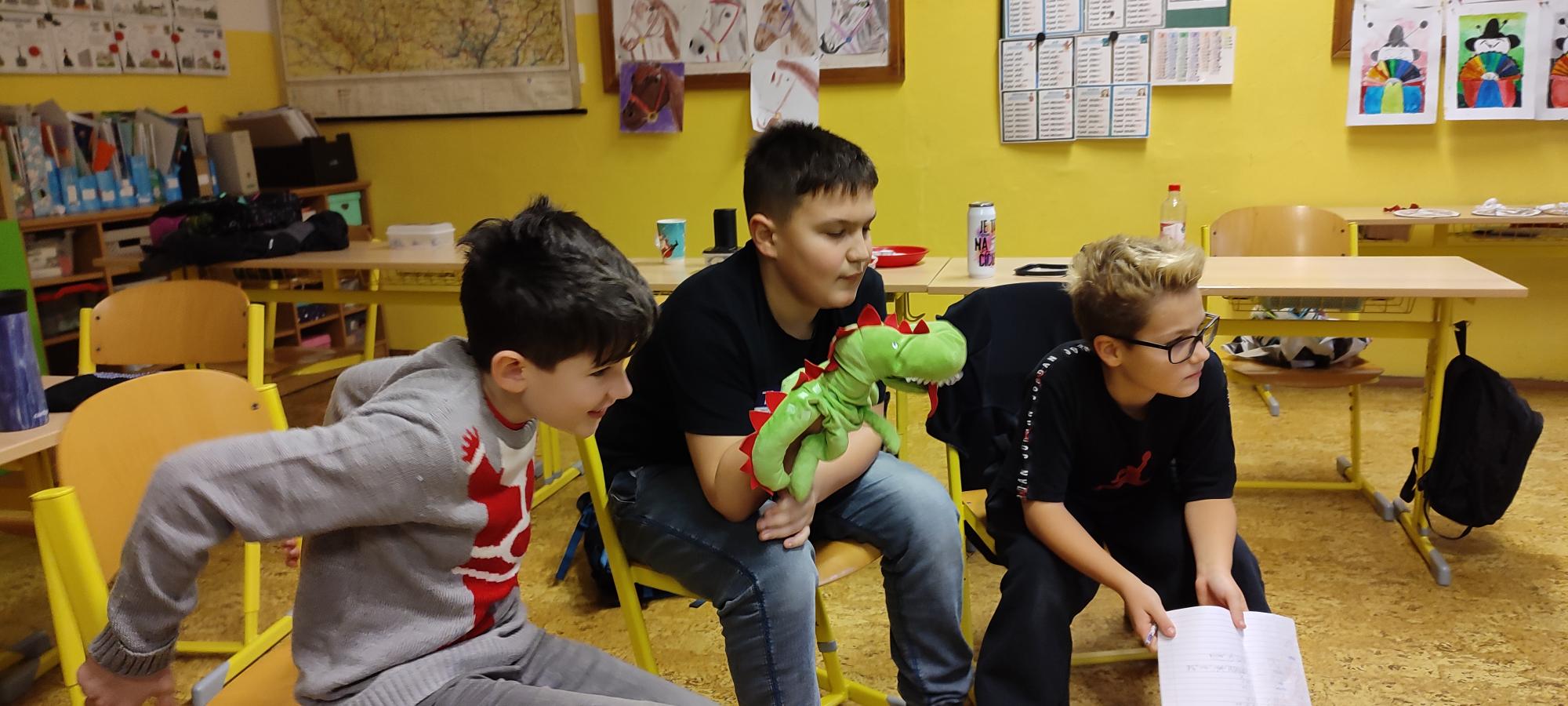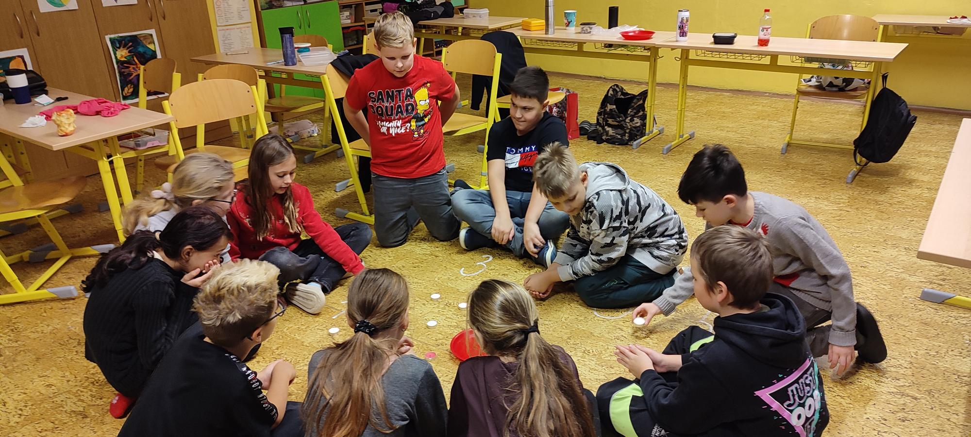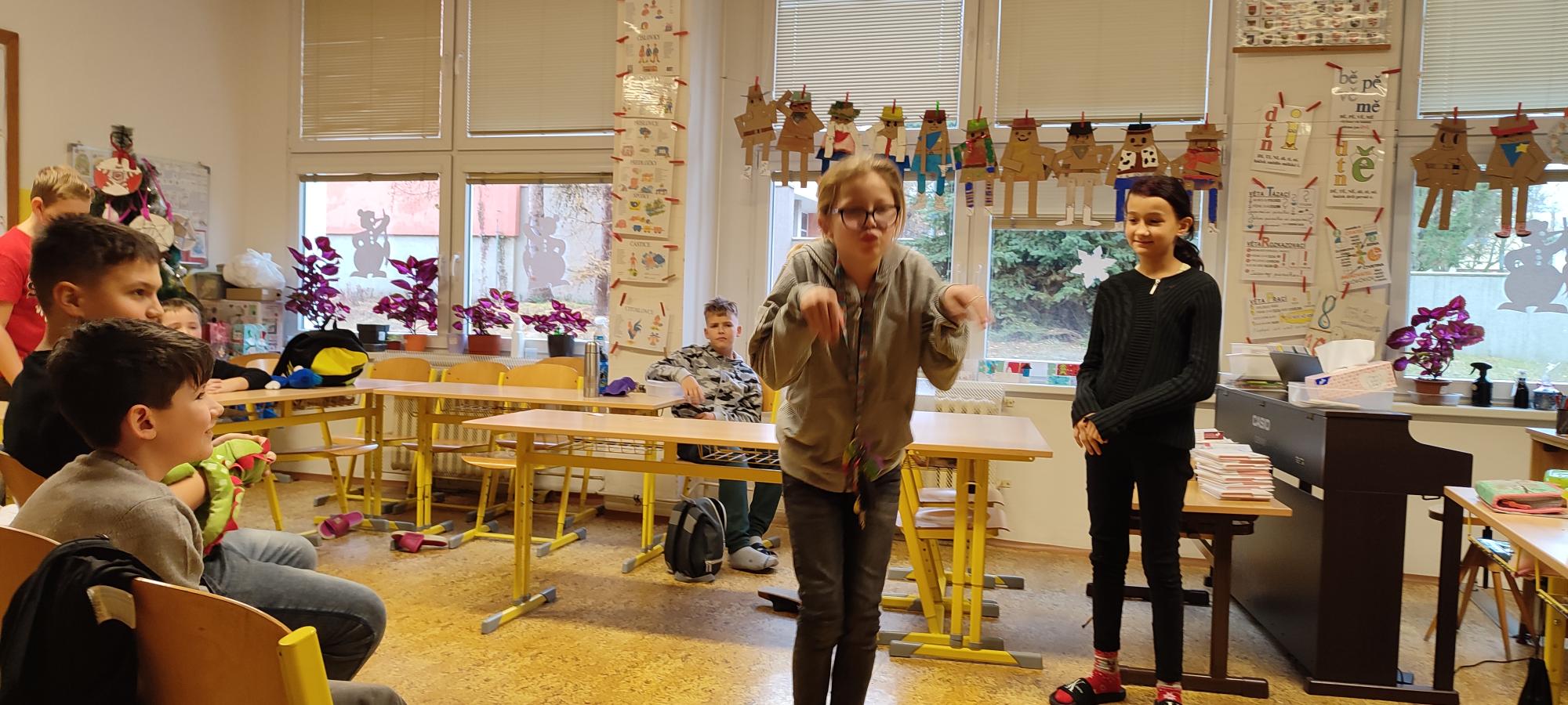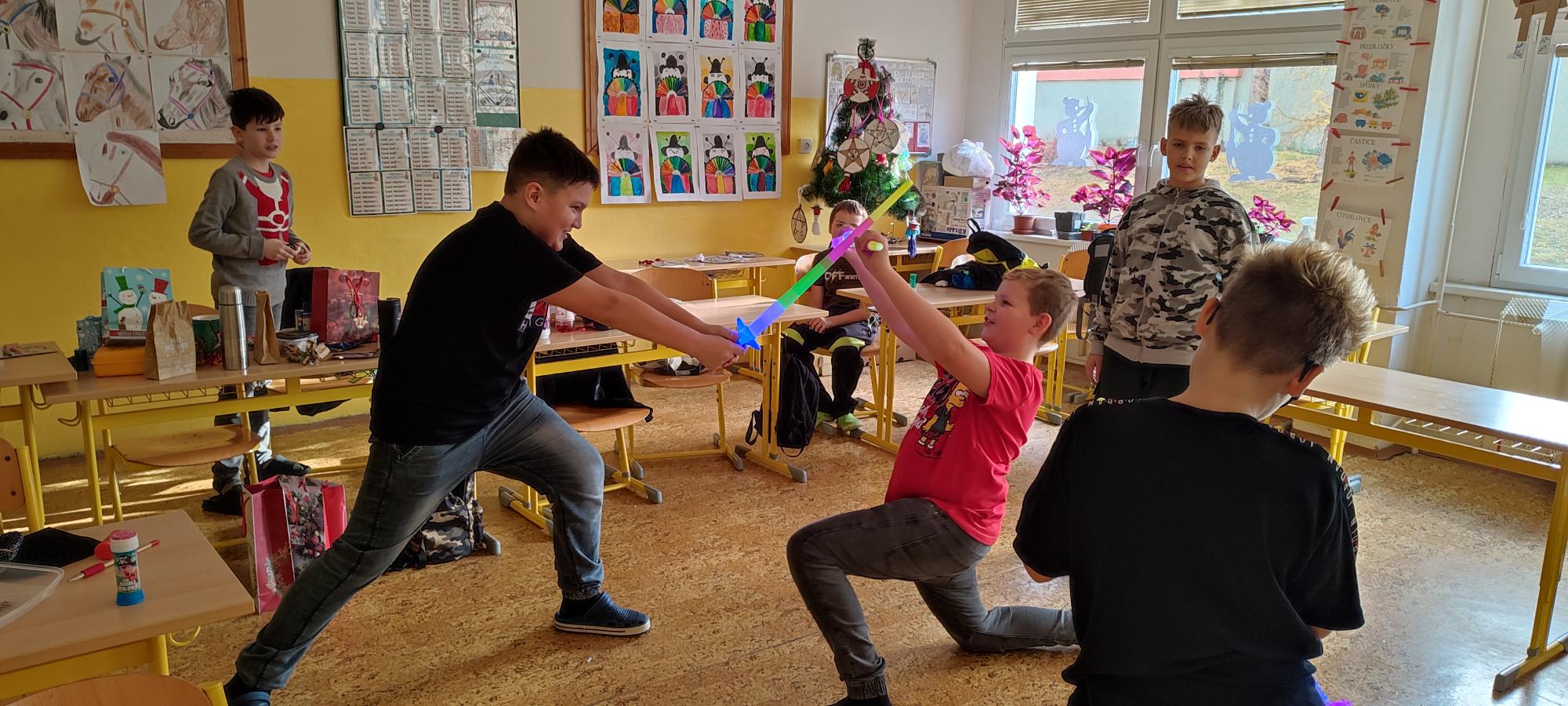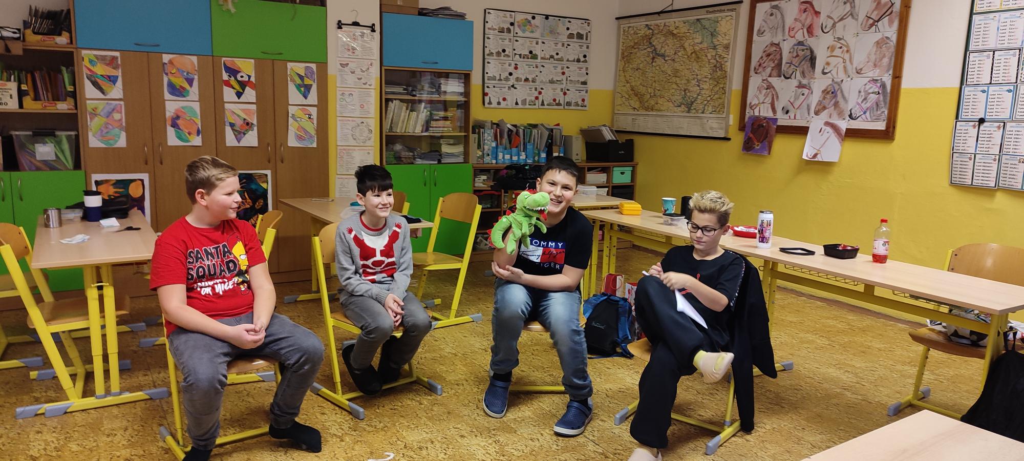 V pátek jsme ukončili tento rok návštěvou kina a besídkou. Žáci si besídku připravili sami. Moc jsme se pobavili při věštění budoucnosti z vosku litého do vody. Děvčata překvapila sestavou pro mažoretky a předváděním pantomimy. Jedna skupina nám zahrála loutkové divadlo. Kuba nám zazpíval, Dan přednesl báseň a fotbalové umění předvedl Tobiáš. Došlo i na taneček. Momenty překvapení nás čekali při rozbalování dárečků.