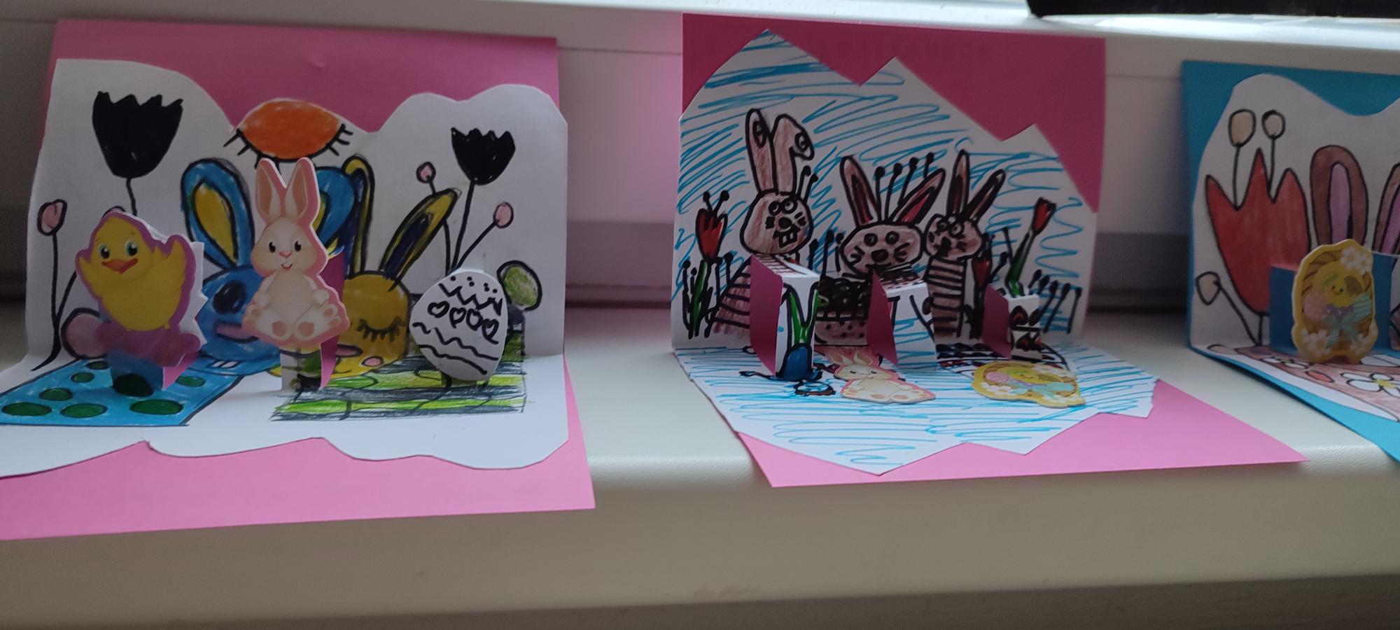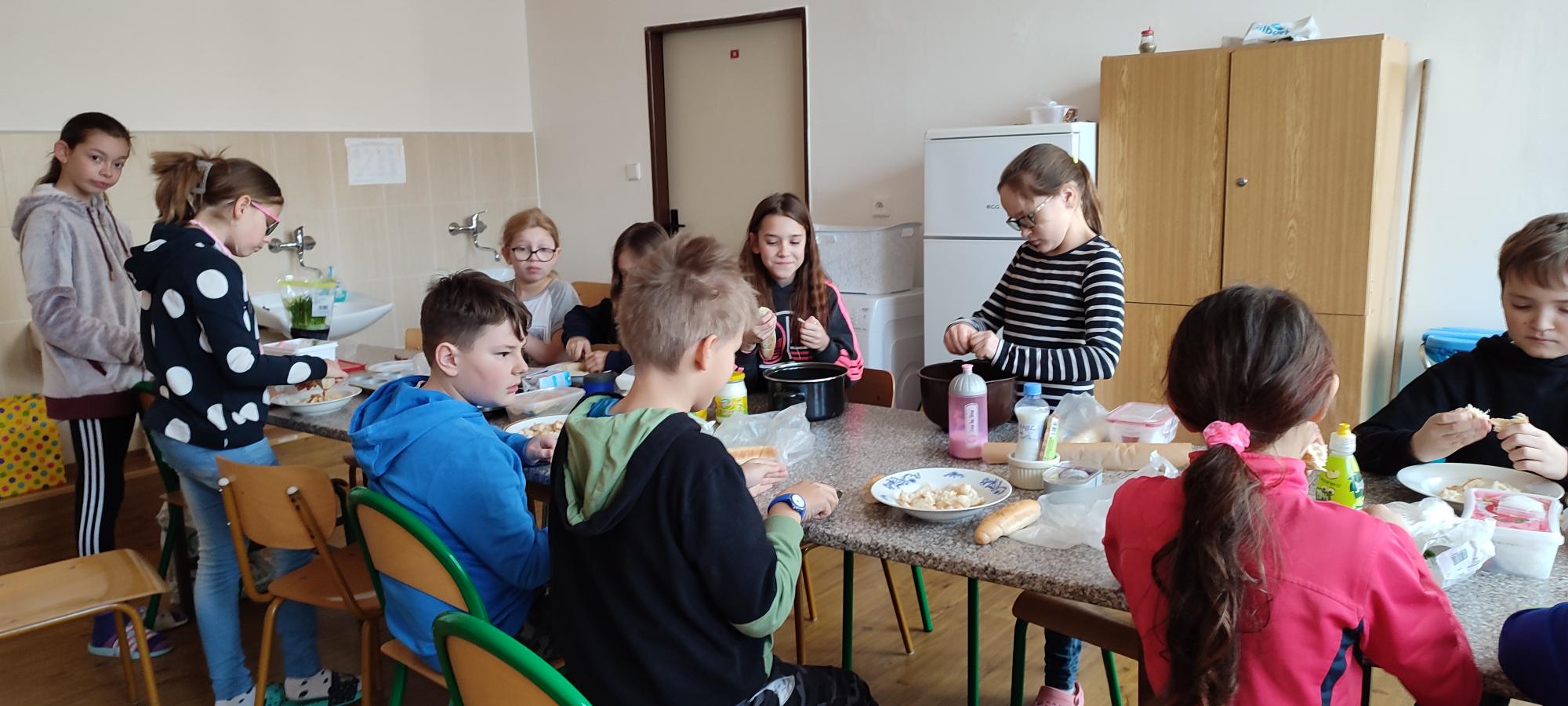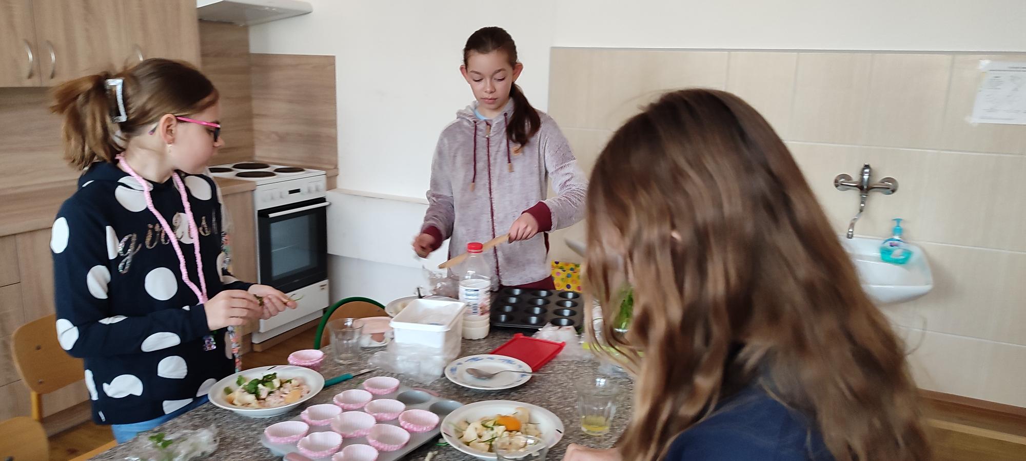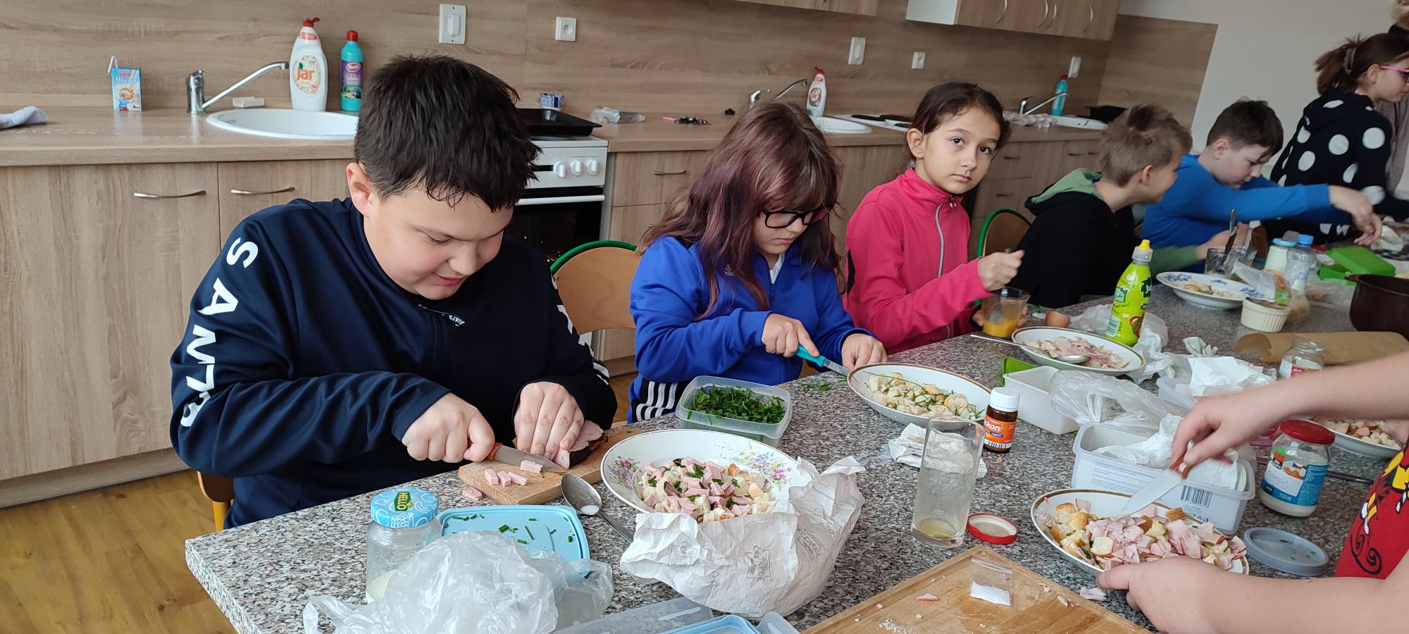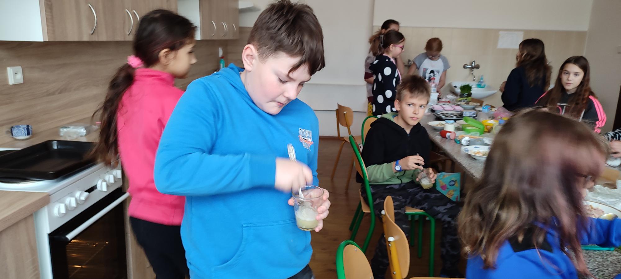 Napsali jsme si recept na jarní nádivku, kterou jsme následně upekli a ochutnali. V matematice jsme se zaměřili na informatiku a rýsování. V informatice jsme se orientovali ve čtvercové síti pomocí kódů. V geometrii jsme narýsovali tangram v podobě vajíčka, který jsme následně rozstříhali a vytvořili z něj obrázky. Stihli jsme i vyrobit velikonoční přáníčko a zasít osení.