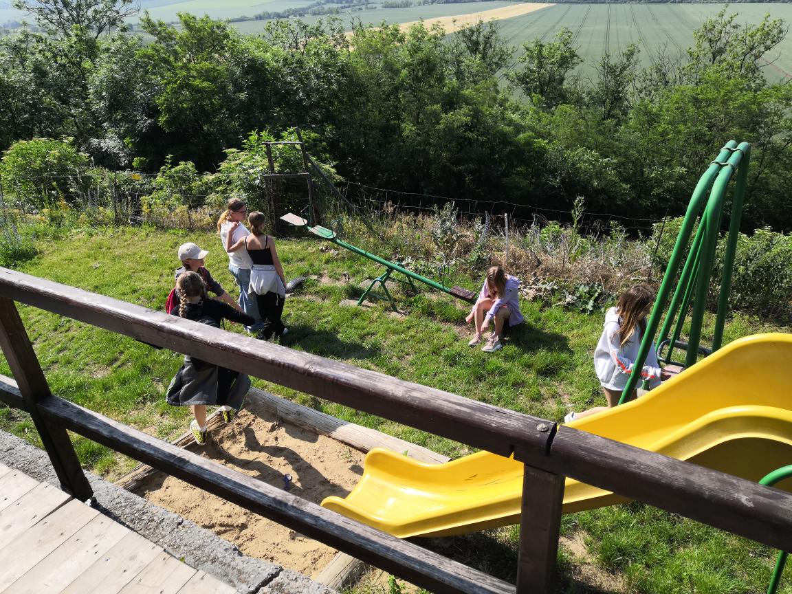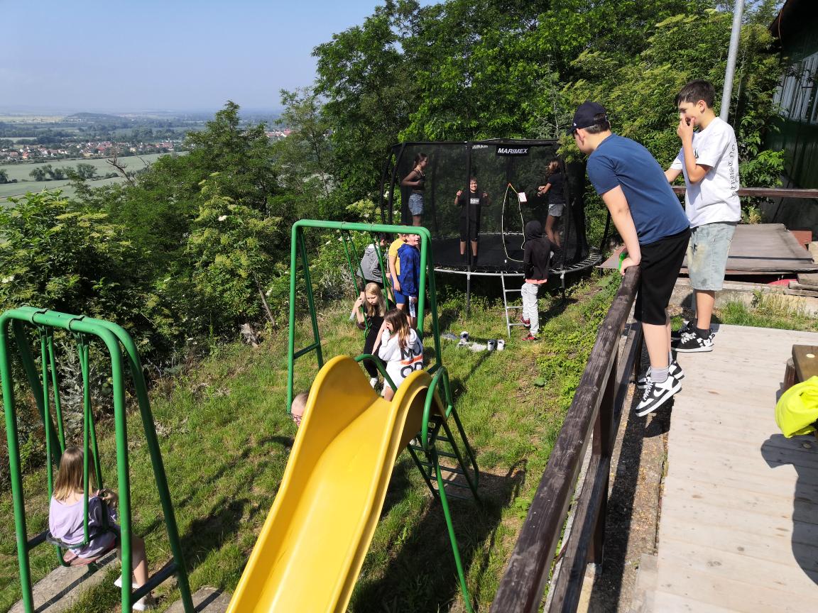 12.6. jsme si užili pěší výlet na Červeňák (vrch Stříbrník) ještě s třídou 6.B. Cestou jsme si zasportovali na hřišti v Dobroměřicích, podruhé se občerstvili a nabrali síly na zpáteční cestu.