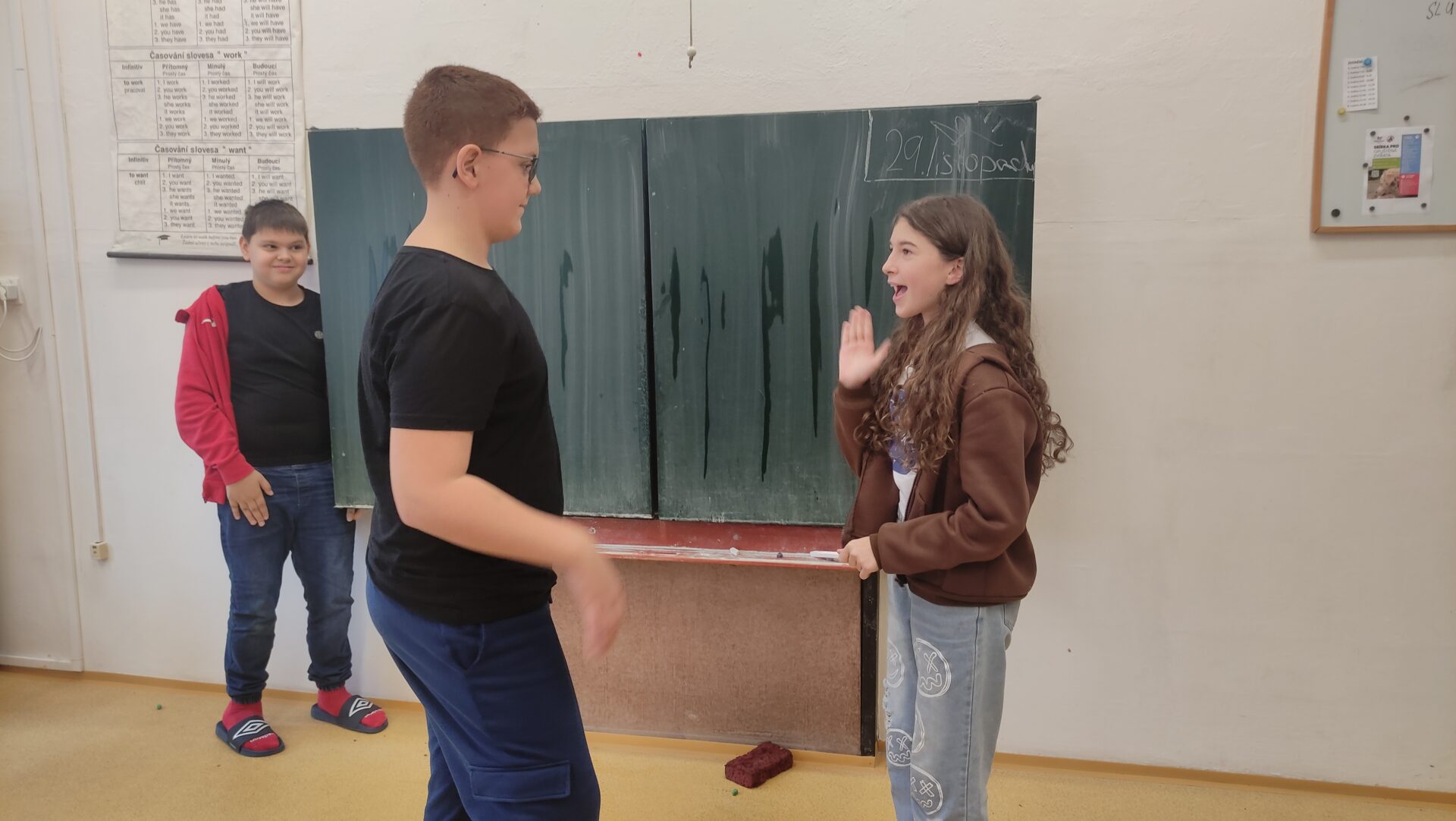 Celý podzim jsme se o hodiny literatury věnovali řeckým bájím a pověstem. Na závěr tohoto tématu jsme si zahráli divadlo. Každá skupinka nám předvedla svou inscenaci, která musela být provedena pouze pantomimou! Zbylí žáci hádali, o jakou báji se jedná. Celkem jsme si zahráli: krále Midase, Orfea a Eurydiku, Prométhea a Paridův soud.
