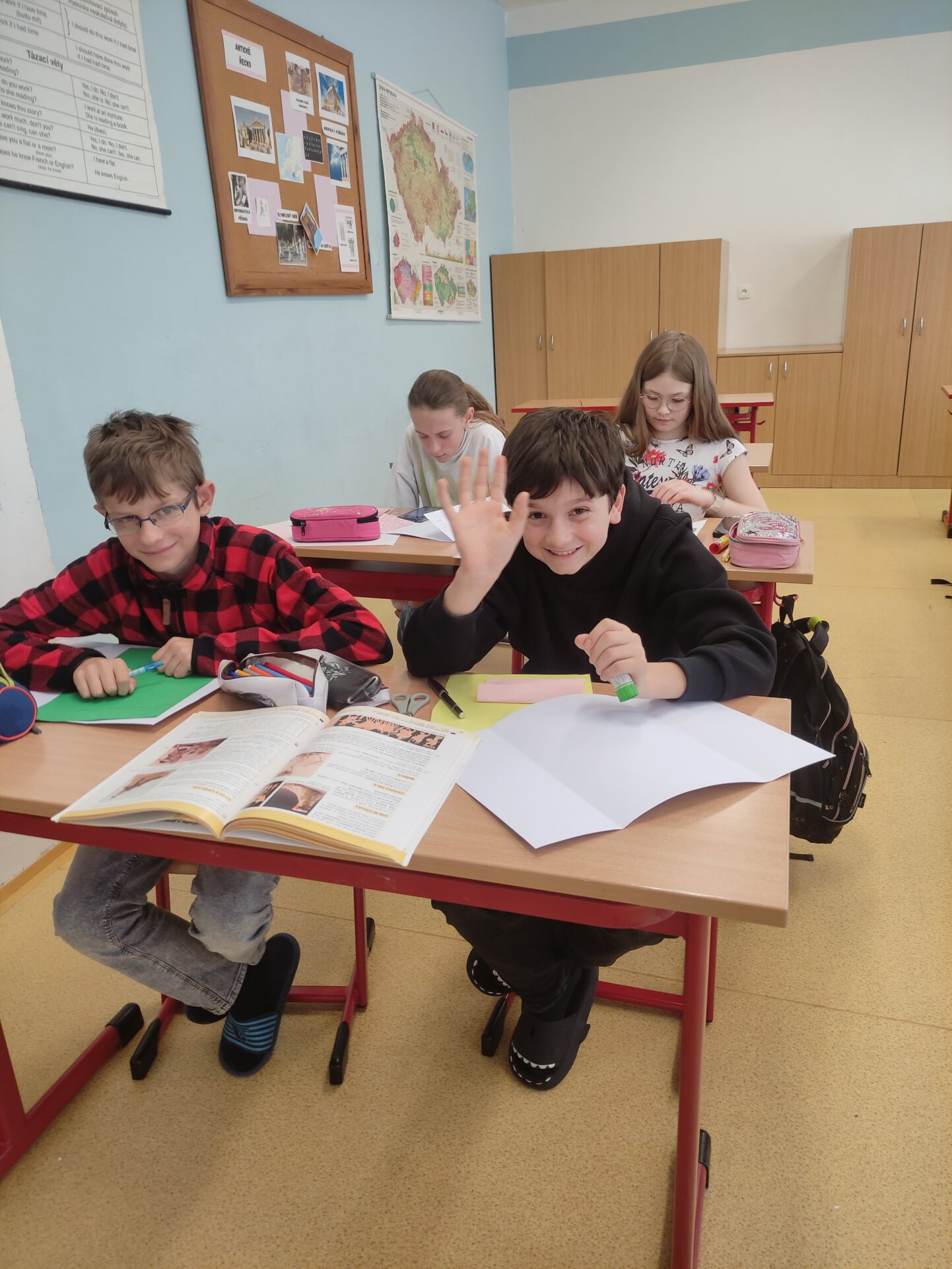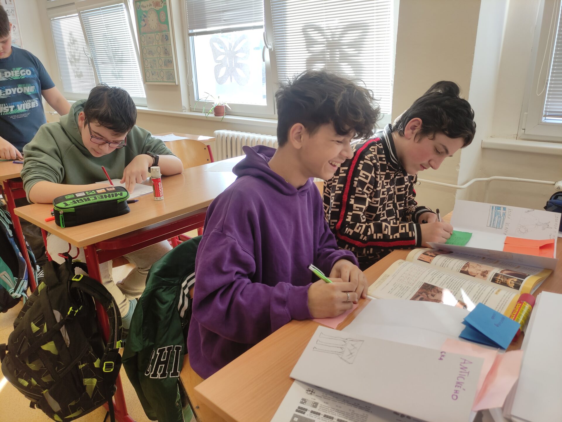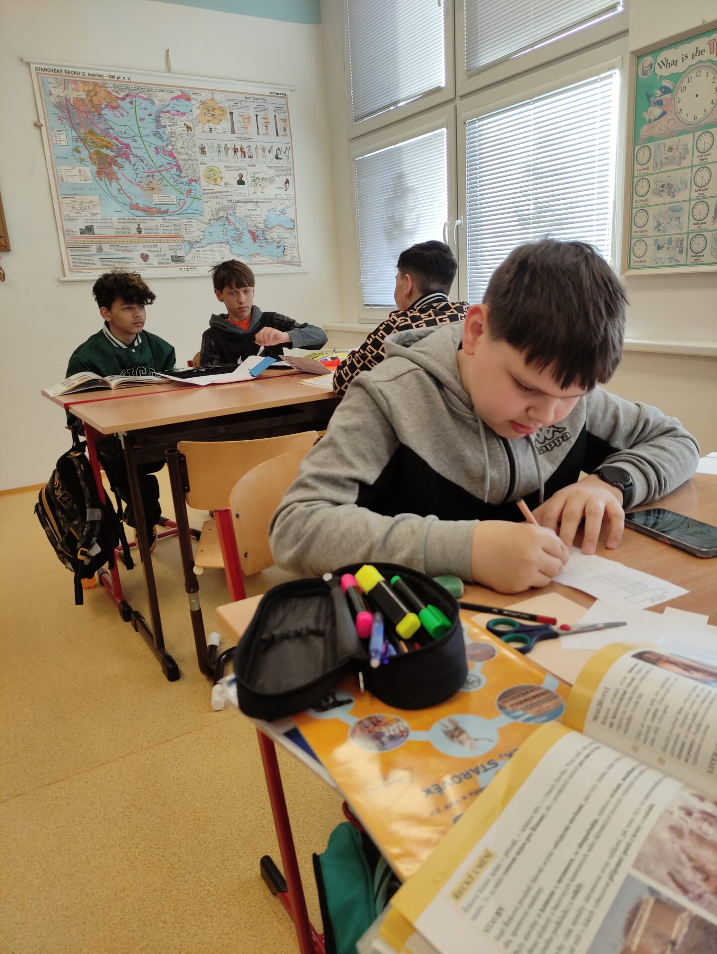 V březnu jsme se během hodin dějepisu věnovali projektu Dědictví antického Řecka. Žáci se učili vyhledávat informace v učebnici i na internetu, vybrat jen ty podstatné a zpracovat je dle témat. V neposlední řadě je také důležitá kreativita a originalita, každý svůj lapbook pojal zcela jinak – a to je na tom to nejlepší 🏛️🇬🇷🌅☀️