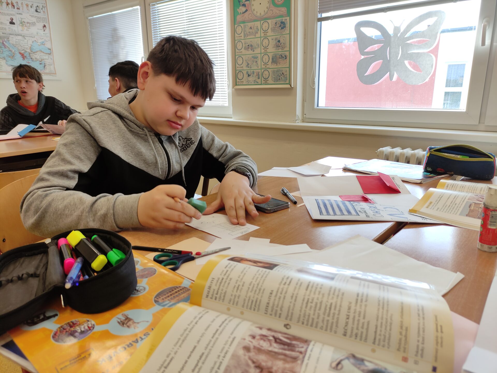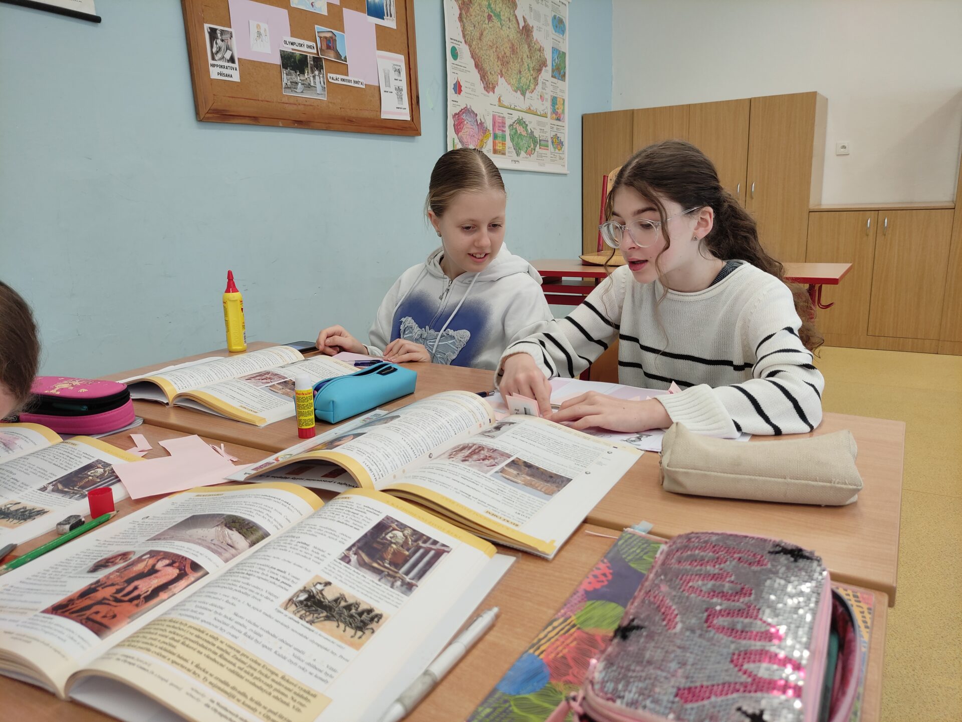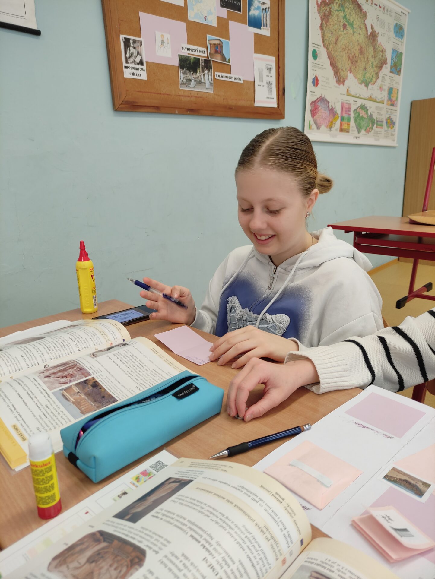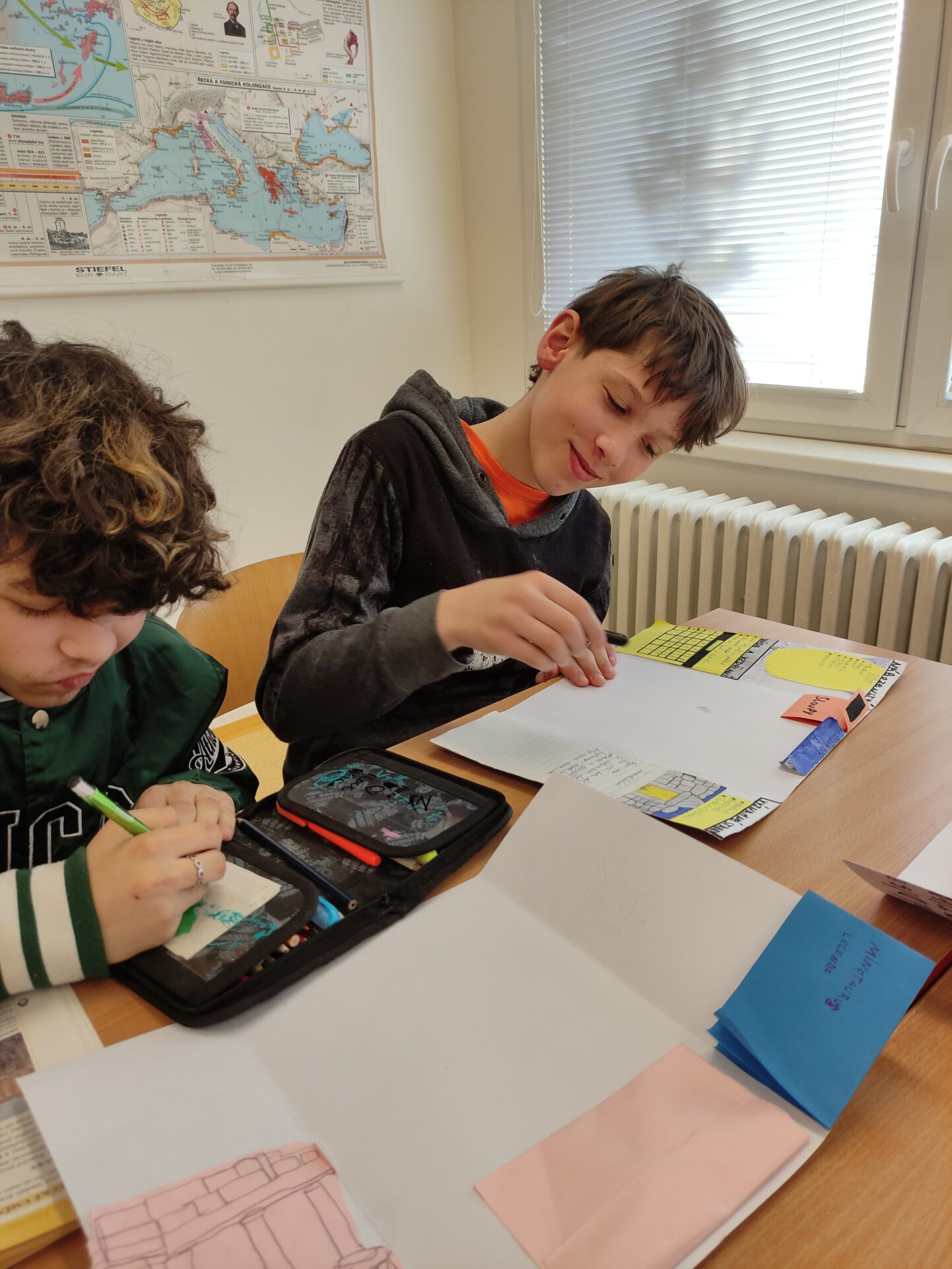 V březnu jsme se během hodin dějepisu věnovali projektu Dědictví antického Řecka. Žáci se učili vyhledávat informace v učebnici i na internetu, vybrat jen ty podstatné a zpracovat je dle témat. V neposlední řadě je také důležitá kreativita a originalita, každý svůj lapbook pojal zcela jinak – a to je na tom to nejlepší 🏛️🇬🇷🌅☀️