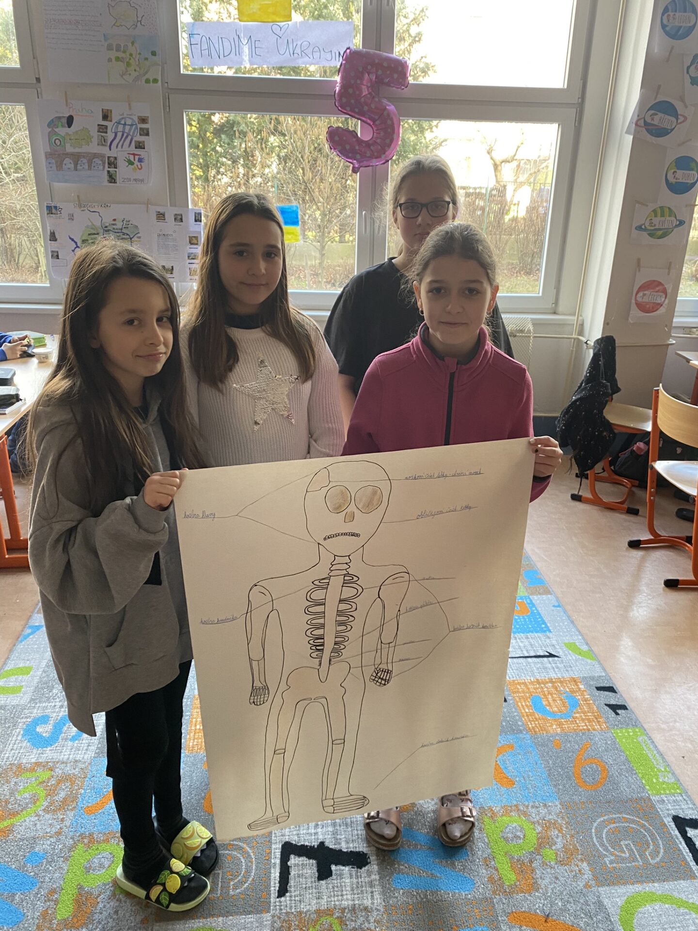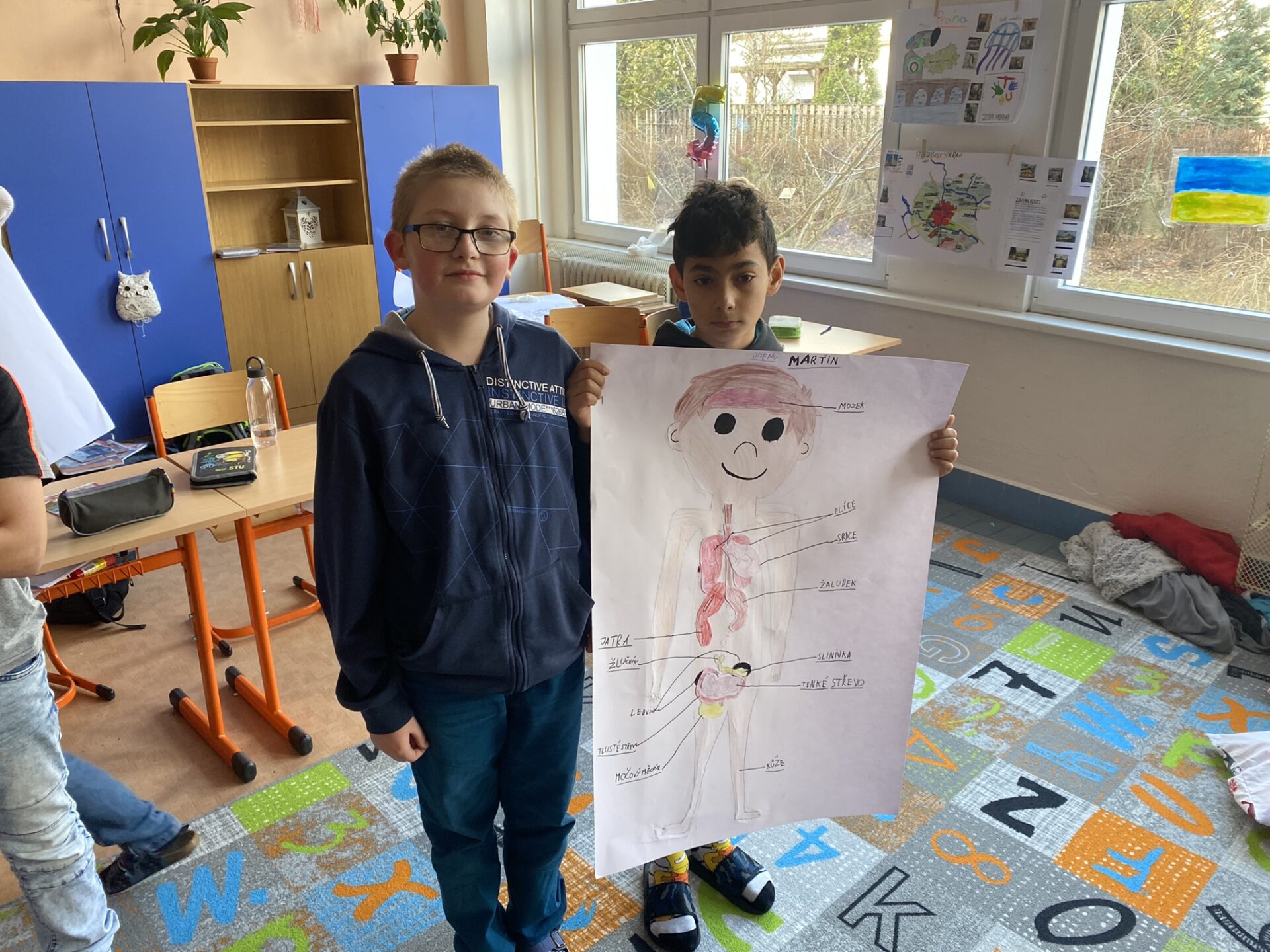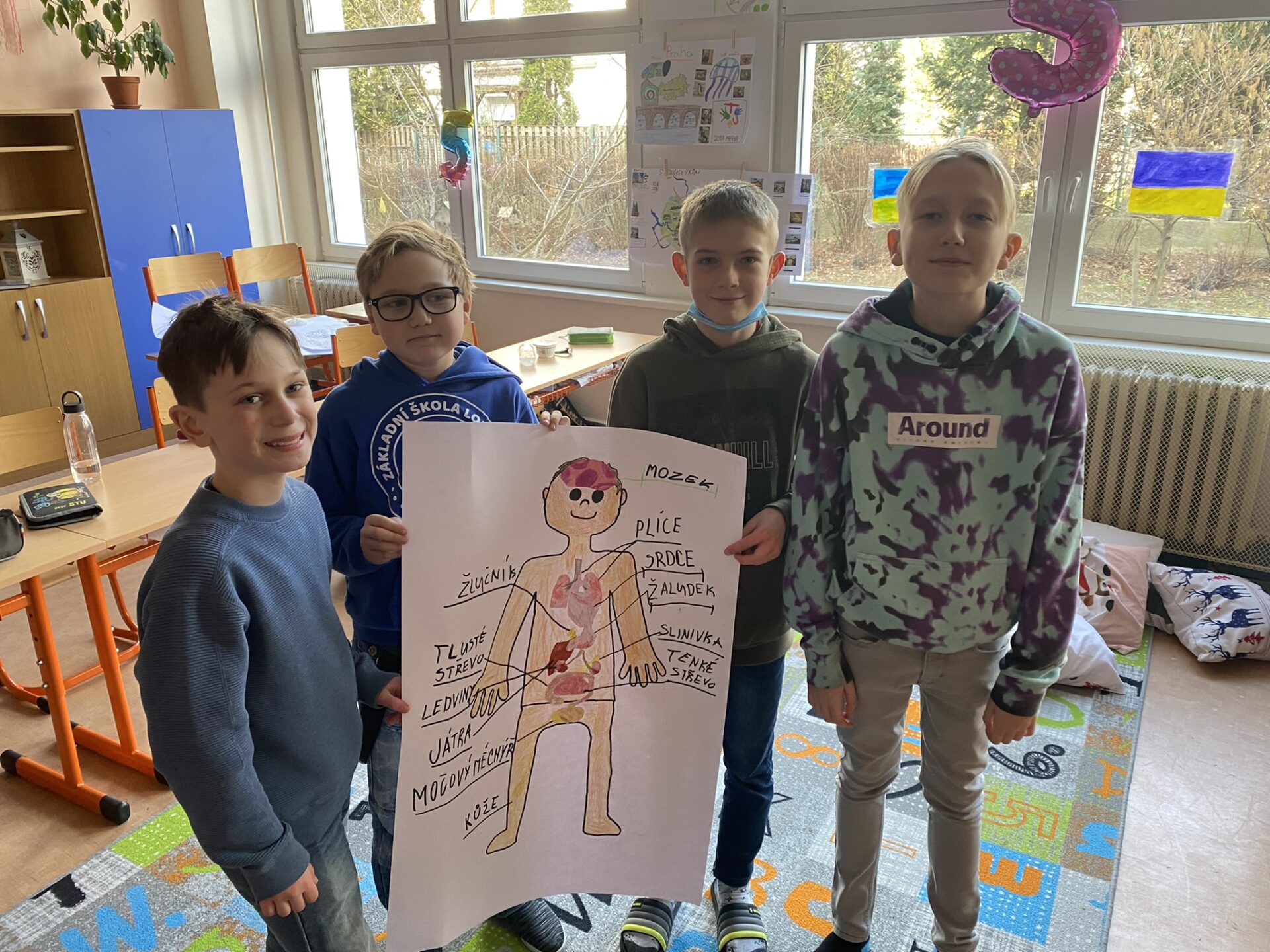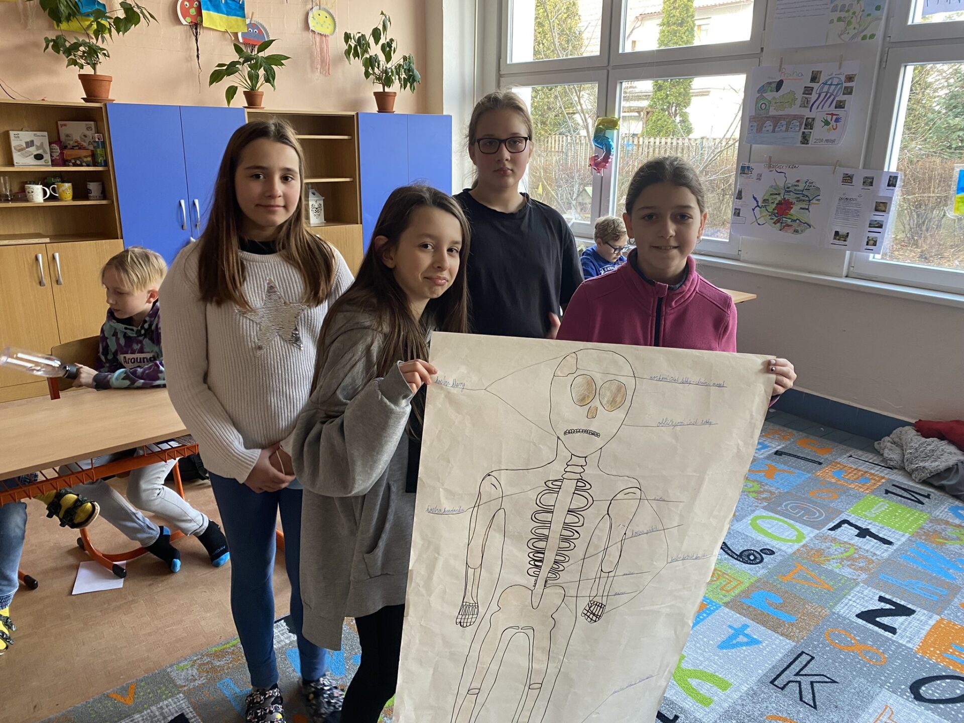 V přírodovědě se aktuálně zabýváme lidským tělem, kosterní a orgánovou soustavou. Rozhodli jsme se na toto téma vytvořit projekty. Nejdříve jsme si vyzkoušeli sestavit orgánovou soustavu na předem připraveném panáčkovi a poté jsme si panáčka a orgány vyrobili sami. Vytvořili jsme si projekt i na kosterní soustavu. Projekty jsme poté odprezentovali.