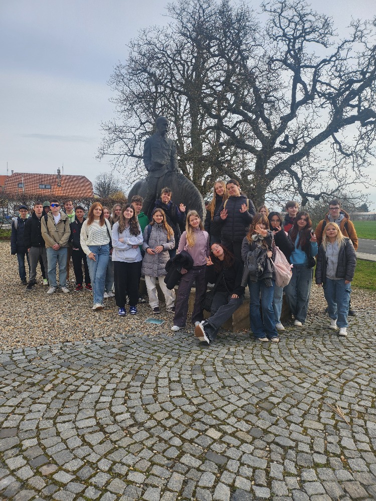 Dne 2. 4. 2025 jsme vyrazili po stopách T. G. Masaryka a navštívili jsme Lány. Zavítali jsme do muzea, které je věnované našemu prvnímu československému prezidentovi. V expozici jsme se dozvěděli o životě rodiny Masarykových, o období první světové války a českých legiích, vzniku Československa a o období první republiky. Prohlédli jsme si i osobní předměty z Masarykovy pozůstalosti i nedaleké místo prezidentova posledního odpočinku. Pokračovali jsme procházkou parku lánského zámku s prvky od věhlasného architekta Jože Plečnika a prohlédli jsme si oficiální letní sídlo hlavy státu.