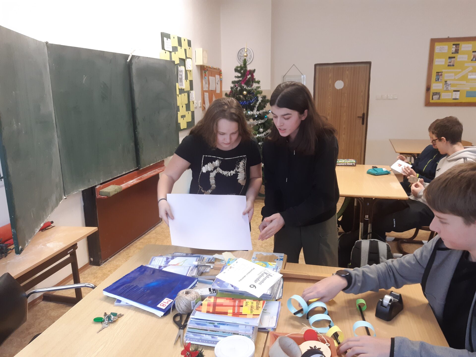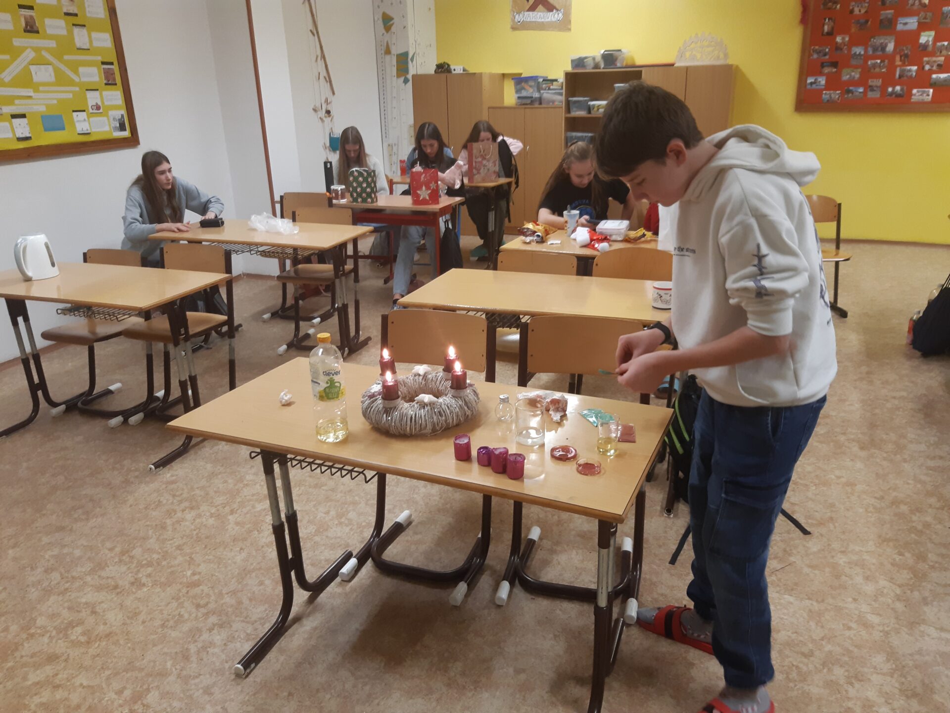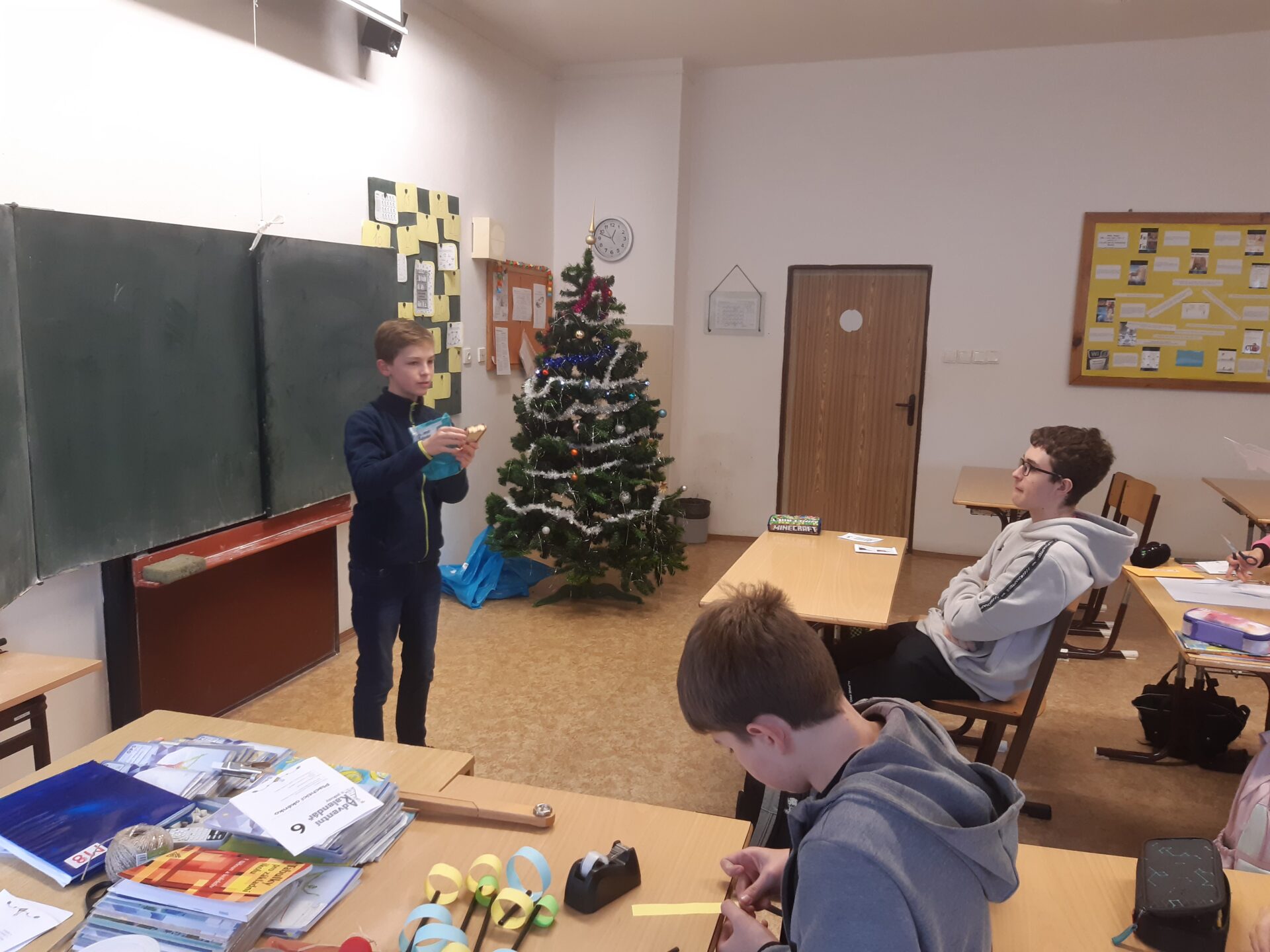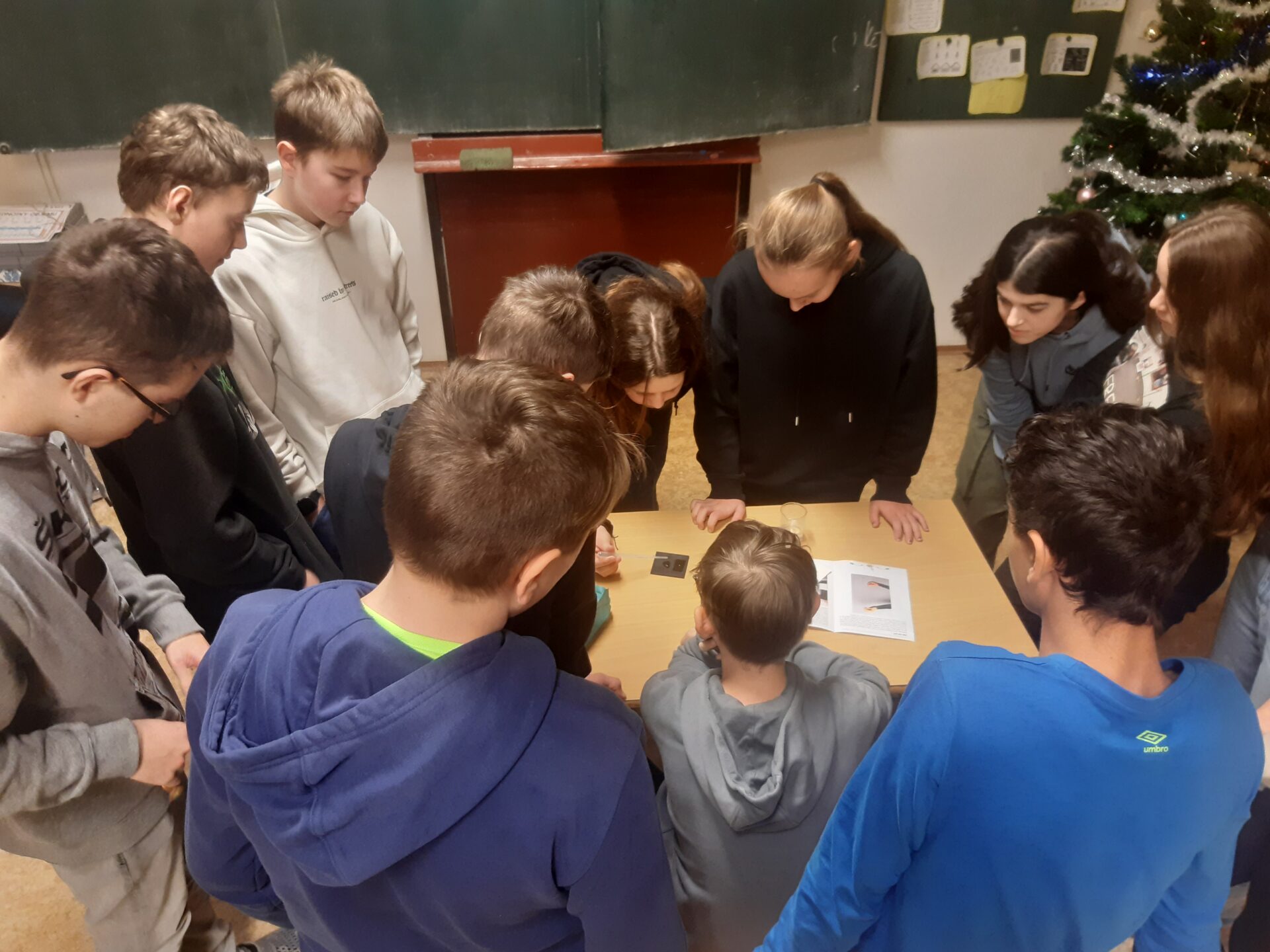 Ještě jednou se alespoň na chvíli vraťme do adventní doby. Žáci 8.A už tradičně měli možnost celý prosinec šifrovat díky šifrovacímu adventnímu kalendáři od Cryptománie. Ale protože máme rádi i novinky, přidali jsme letos ještě jeden adventní kalendář – úžasný fyzikální kalendář od Údifu (Úžasné DIvadlo Fyziky). Každý den tak jeden ze spolužáků rozbalil jeden pokus, který nám příští den předvedl. Vytvořili jsme tak jednoduchý elektromotor, přemohli gravitaci, vyrobili nekonečně hlubokou díru, našli limity vlastního těla a mnoho mnoho dalšího. Někteří z nás ještě i o třídní vánoční besídku vyráběli svítící přání či ozdoby na stromeček připomínající barevnými proudy nejedno vesmírné těleso. A abyste i vy měli něco z našich pokusů, můžete se podívat na několik fotografií.