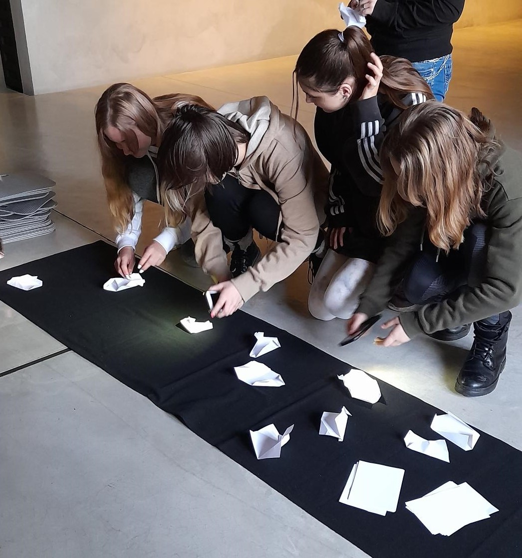 I naše 7. C navštívila edukační program k právě probíhající výstavě Moniky Immrové v Galerii Benedikta Rejta. Většina z nich byla v galerii poprvé. Žáci plnili skupinové úkoly, zahráli si na detektiva a na závěr si na svá dílka pěkně posvítili.