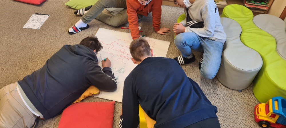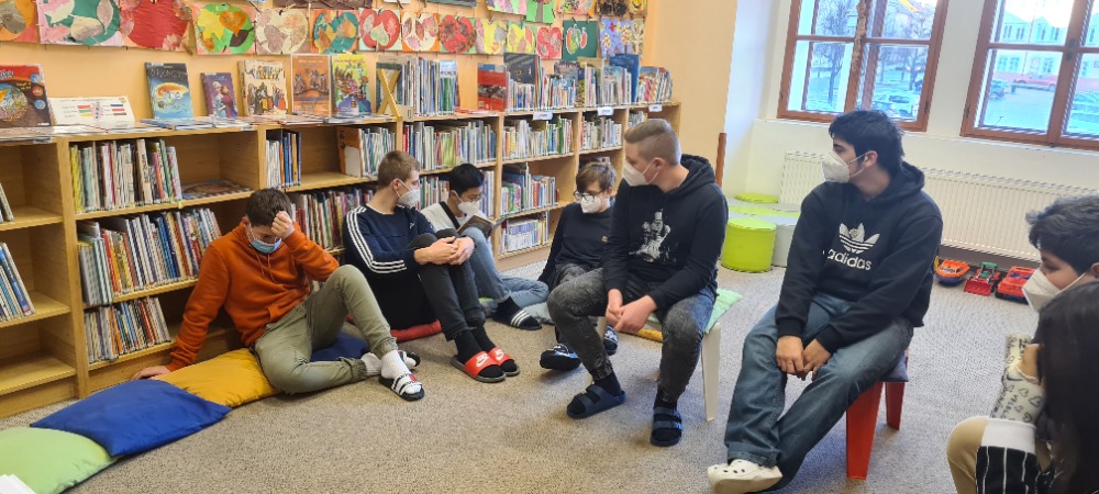 Dnes jsme se pro změnu vydali do lounské knihovny, abychom ochutnali delikatesu jménem fantasy literatura. Musíme říci, že svět magie, nadpřirozených bytostí a kouzel nás pohltil natolik, že jsme si na závěr naší lekce o fantasy literatuře vytvořili svou zemi Za obrazem, spolu s čarodějem, vílami a dalšími magickými bytostmi, kteří se dorozumívají jazykem, který jsme jim vytvořili. Kniha se řekne krunk, víla je šel, jezero ütse a na rozloučenou slyšíme hlasité jör, což znamená ahoj. I my jsem si řekli ahoj s tím, že se brzy uvidíme na další úžasné lekci s Janou Hrbkovou.