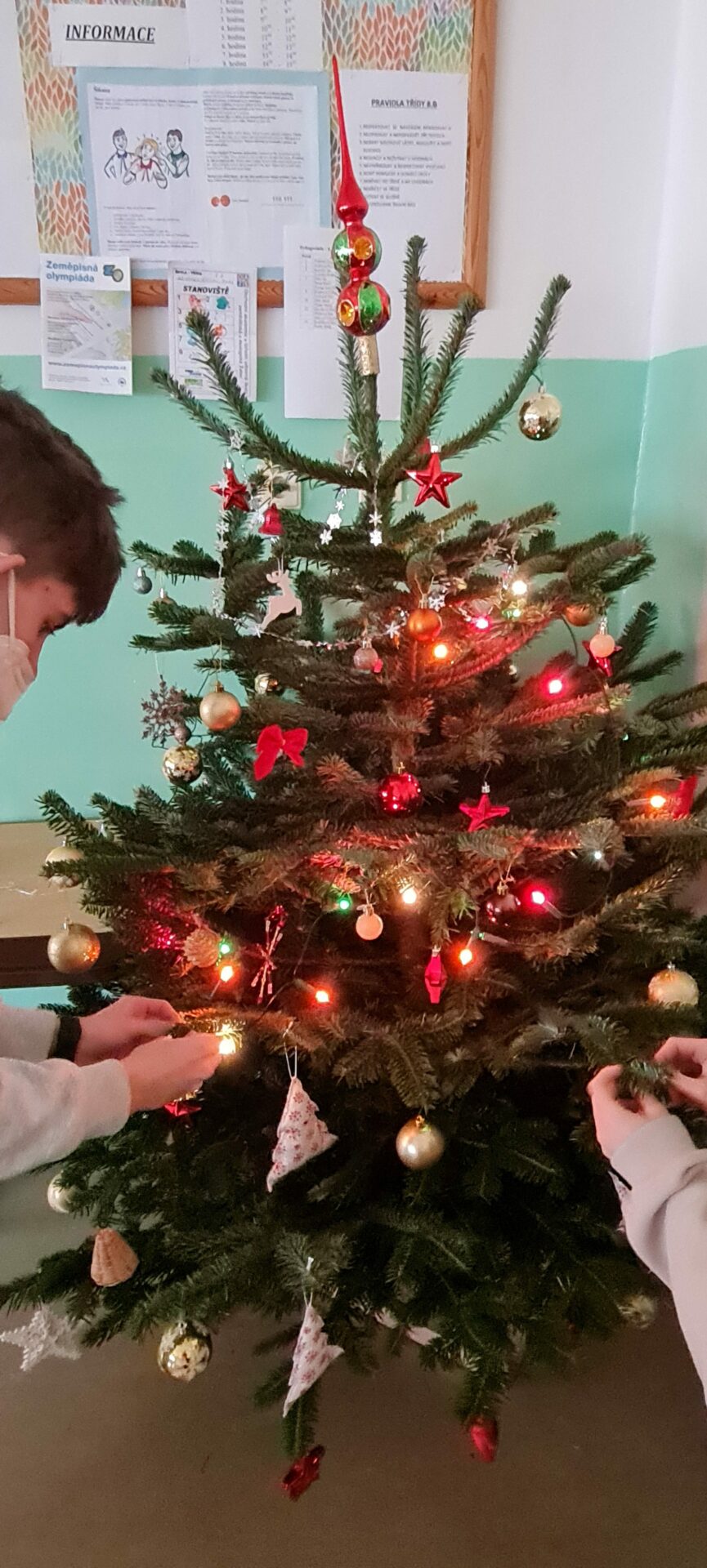 8.B – 6.12.2021 jsme společně zdobili vánoční stromeček a vyzdobili jsme si třídu v období adventu, domluvili jsme se na živém stromečku, aby nám to v naší třídě krásně vonělo, složili jsme se na něj, každý donesl nějakou ozdobu a všichni se těšili, jak letos bude vypadat náš třídní vánoční stromeček, u kterého si uděláme ve středu 22.12.2021 vánoční besídku.