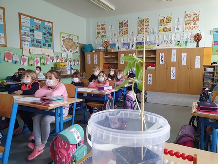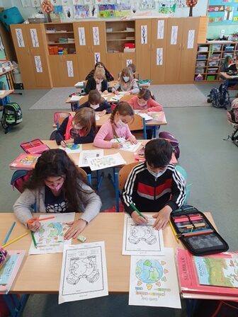 V první třídě jsme oslavili Den Země. A co jsme všechno dělali? Vybarvovali a doplňovali jsme pracovní listy. Tvořili plakáty s motivem planety Země. Na školní zahradě jsme si každý zasadili semínko aksamitníku. Květináčky jsme dali na okno, a budeme sledovat, jak roste.