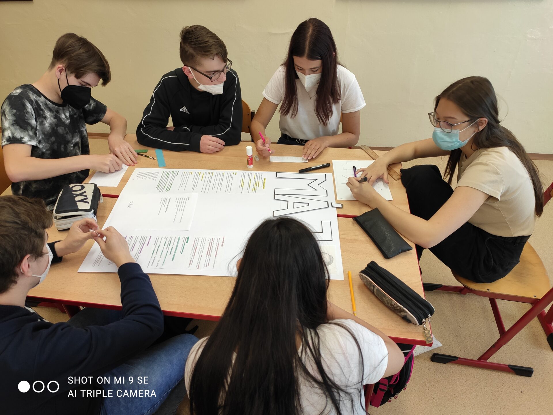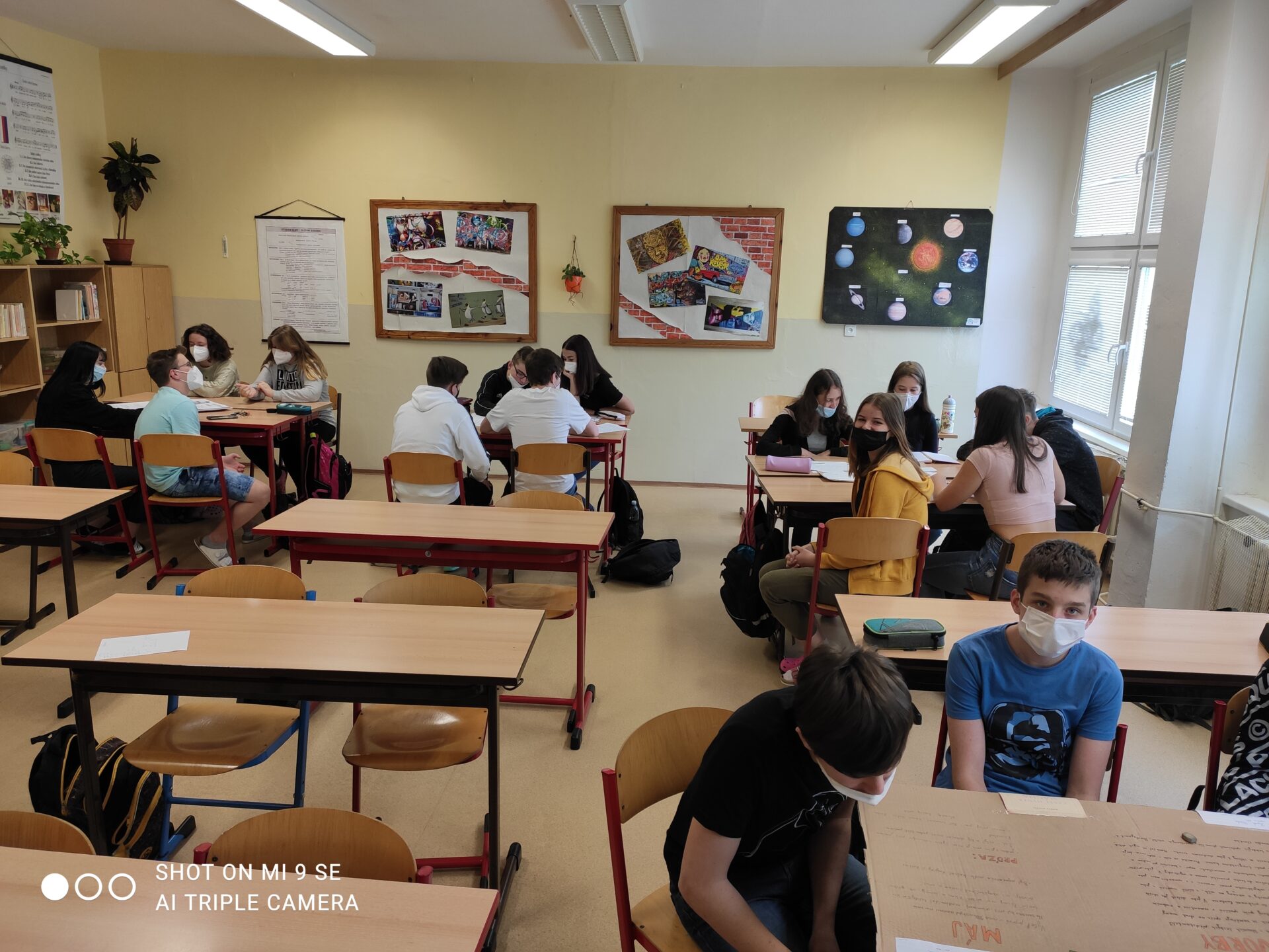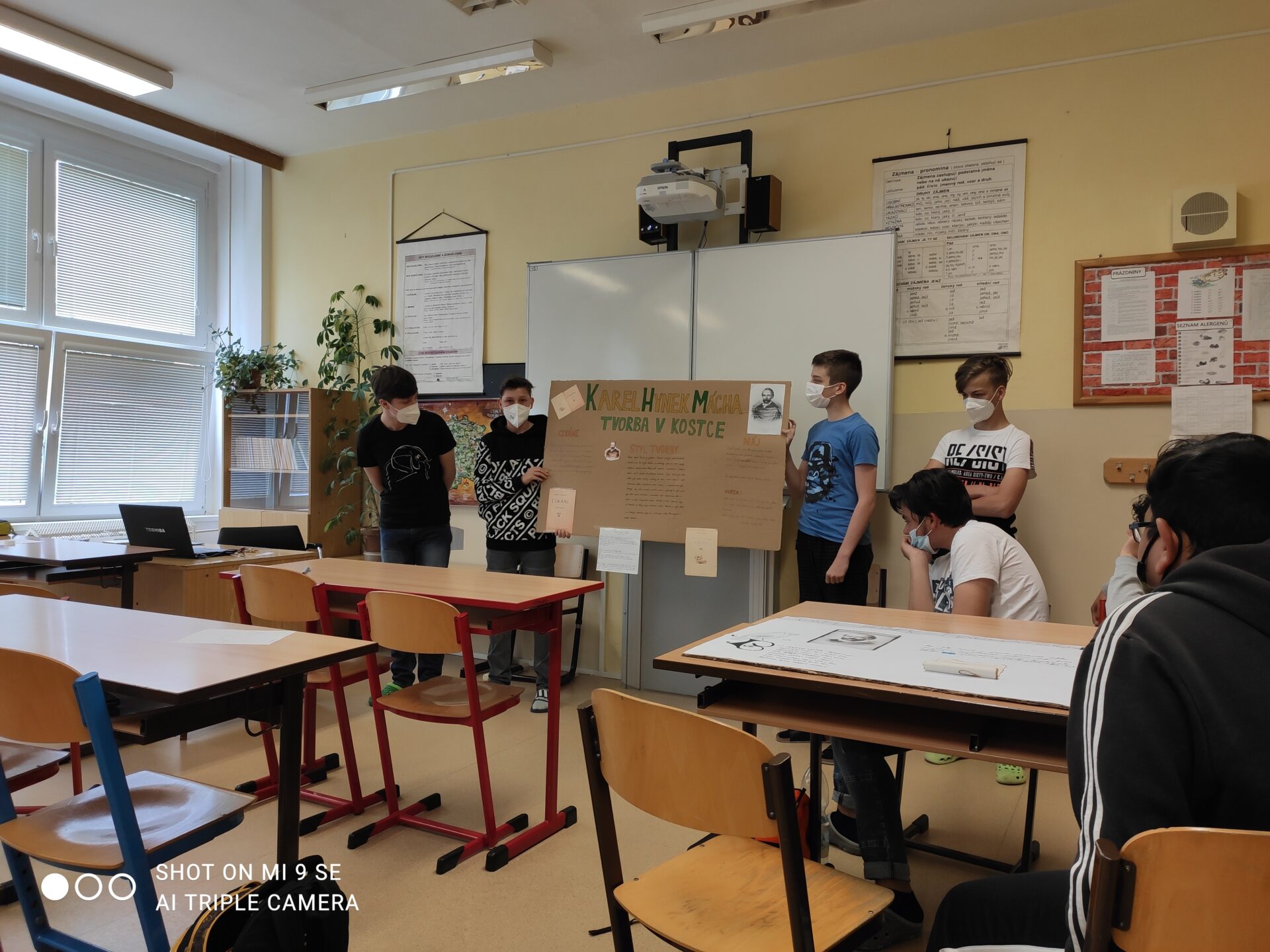 Hodiny českého jazyka zahájili deváťáci po distanční výuce projektovým vyučováním. Připomněli si výraznou osobnost české literatury Karla Hynka Máchy. Společná práce při hledání a zpracovávání informací přispěla k upevnění schopnosti orientovat se v informačních zdrojích. Při obhajobě vlastní práce měli možnost vyzkoušet si své vyjadřovací schopnosti i před spolužáky. Realizace zvoleného tématu nabídla nejen množství zajímavých postřehů, ale byla pro žáky i přínosem, neboť prezentované informace všechny přítomné obohatily o nové poznatky.