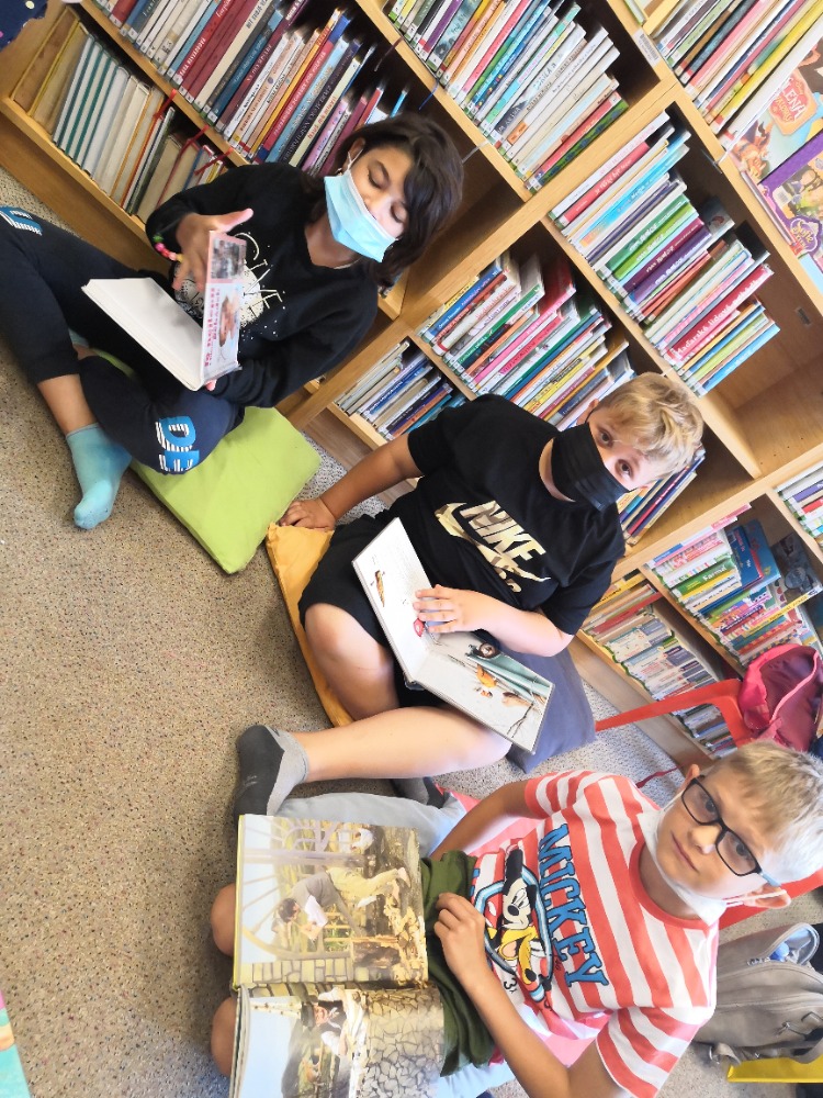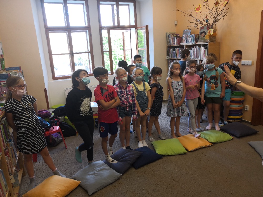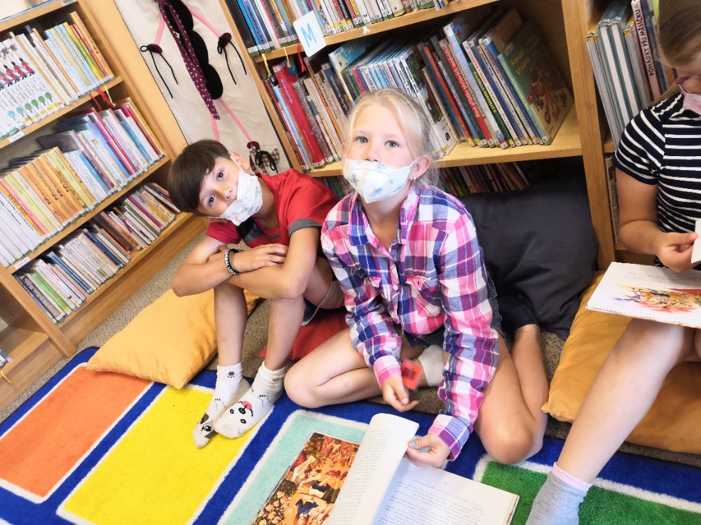 Zasíláme pár fotografií z úterní knihovny, kde nám paní knihovnice vyprávěla o pohádkách. My jsme hbitě odpovídali na její záludné otázky a za odměnu si zahráli kouzelnou hru. Navíc jsme obdrželi i knihu, kterou jsme v 1. ročníku kvůli Covid-19 nemohli dostat, jsme moc rádi, že na nás nezapomněli. Seznámili jsme se také s novými knihami. Někteří z nás si hned i nějaké knihy vypůjčili.