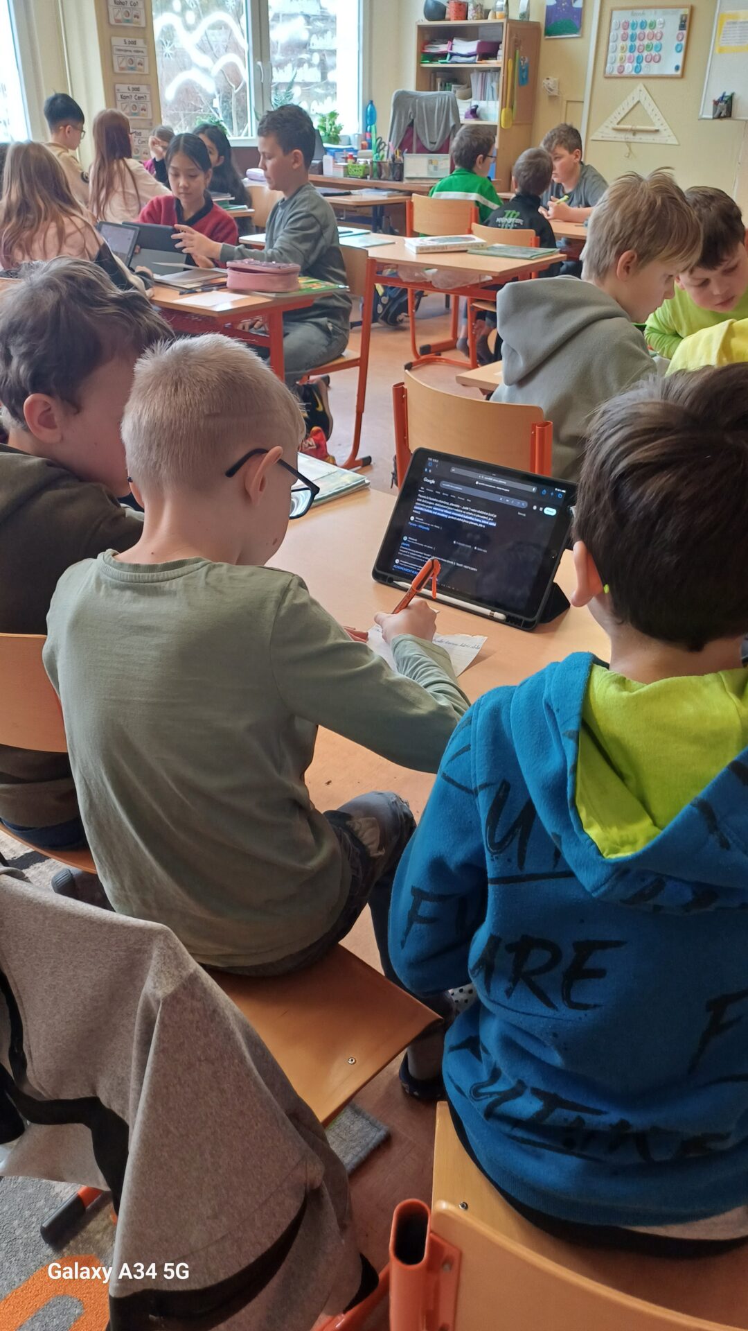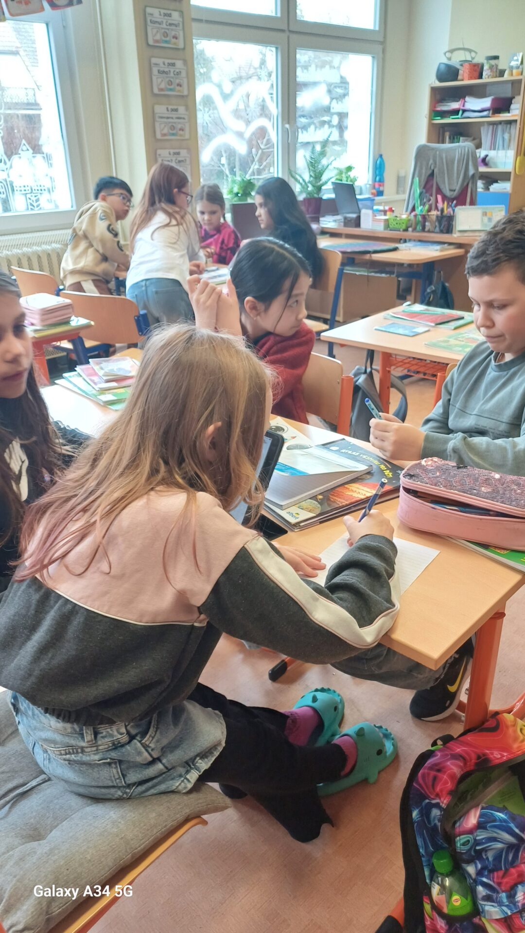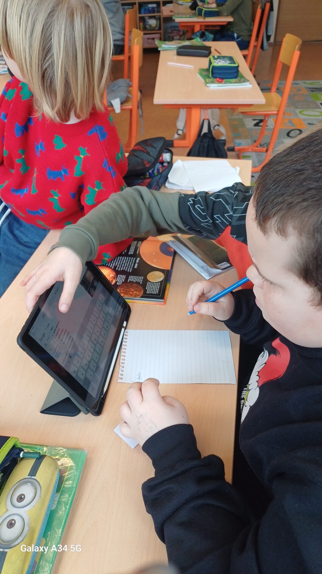 Celý měsíc únor jsme v hodinách prvouky získávali poznatky o vesmíru a planetách, které tvoří Sluneční soustavu. Informace jsme vyhledávali nejen na internetu, ale také v různých naučných knihách a časopisech, které jsme si přinesli. Každá skupina měla vyhledat podle zadaných otázek informace o jedné planetě a vytvořit tak zajímavy referát. Téma Vesmír a Sluneční soustava jsme propojili v rámci mezipředmětových vztahů i do dalších hodin. Například ve výtvarné výchově a pracovních činnostech jsme vytvořili zajímavé koláže. Žáci 3.B