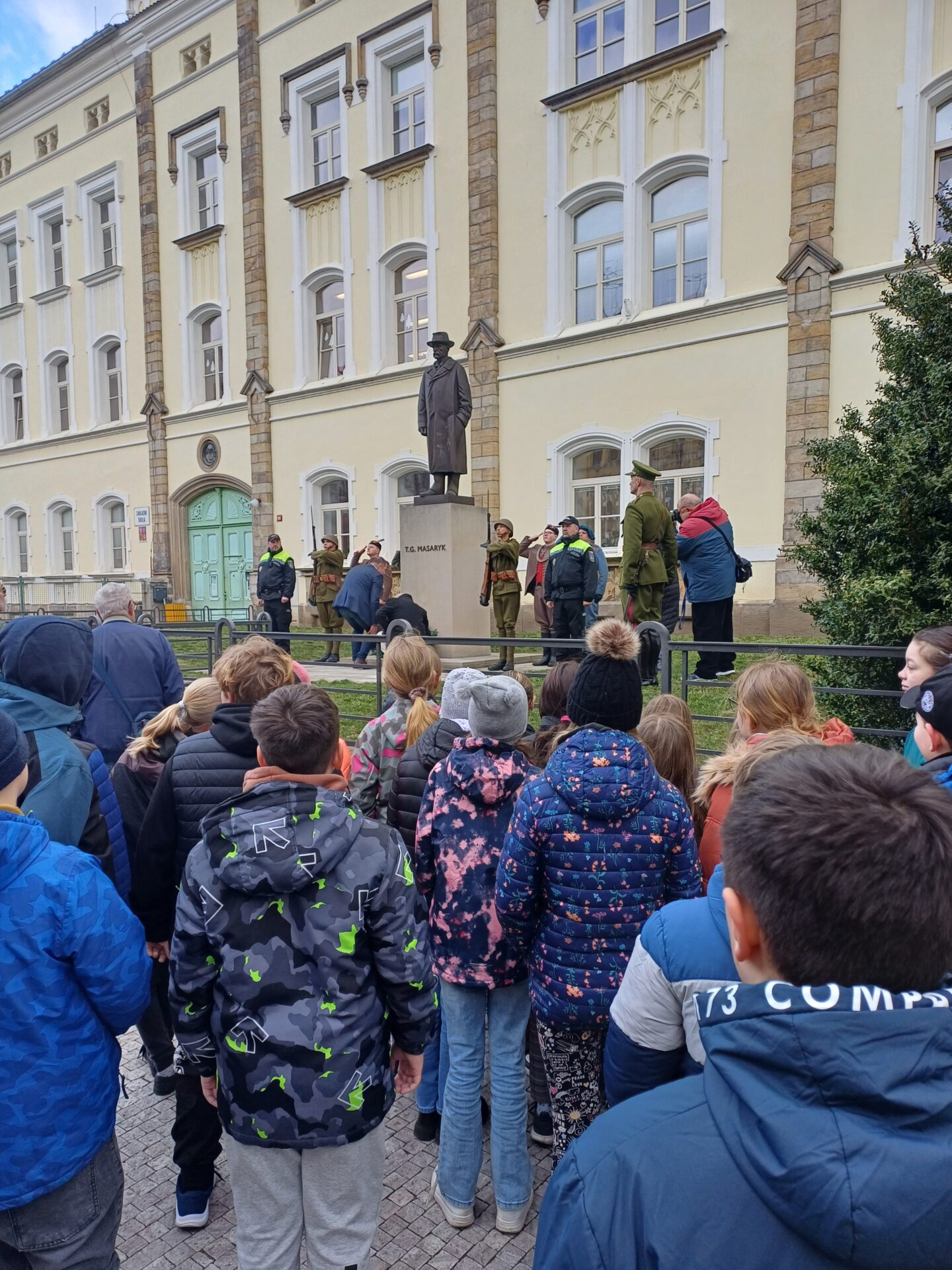 7. března uplynulo 174 let od narození T.G.Masaryka. Naši žáci pátých tříd se zúčastnili této pietní akce, vzpomínková slova pronesl pan starosta Milan Rychtařík, položil se věnec a květiny, zapálily se svíčky a v myšlenkách se vzpomínalo na „prezidenta Osvoboditele“.🪽⏳️🕯💐