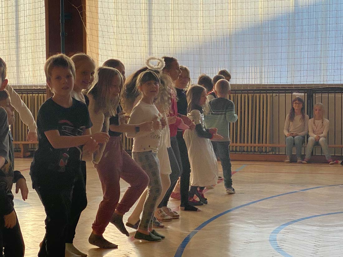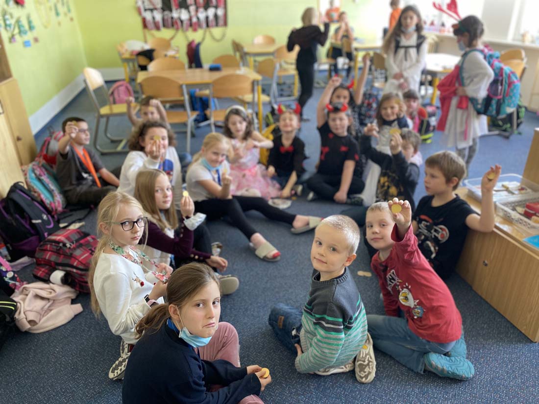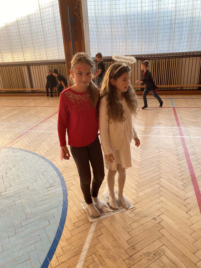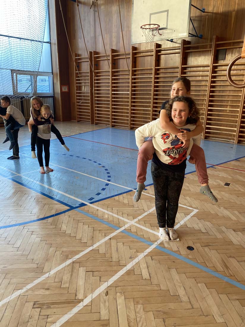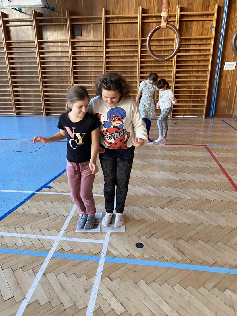 Nakonec jsme čertovské peníze proměnili ve sladkou odměnu a zvesela si zařádili v tělocvičně.