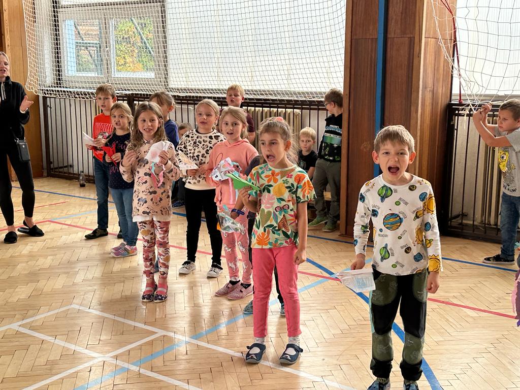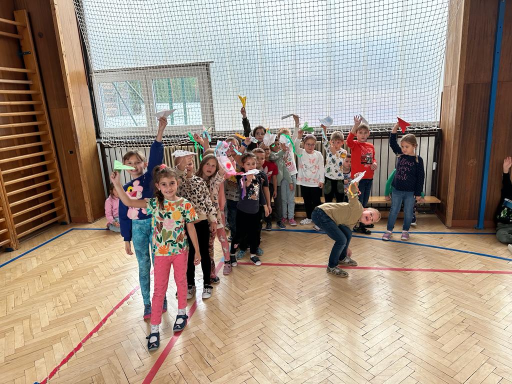 Místo draků na poli létaly vlastnoručně vyrobené vlaštovky tělocvičnou.