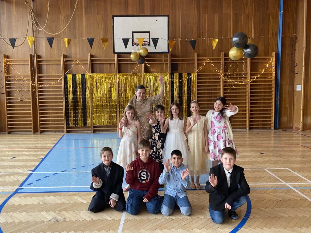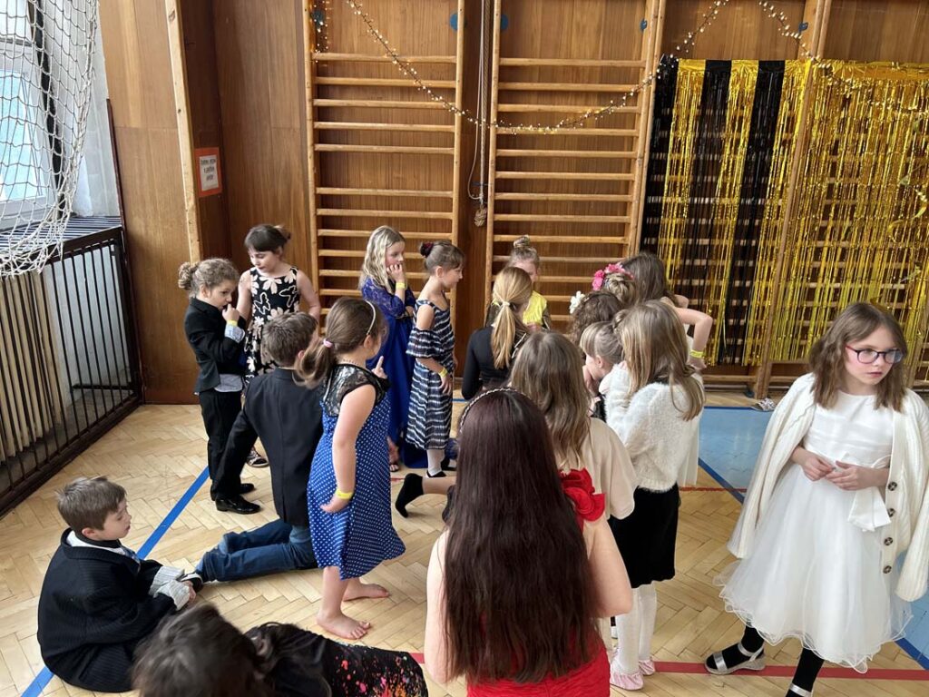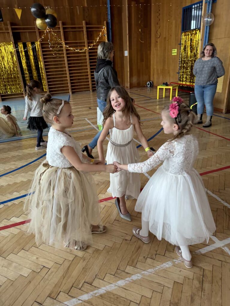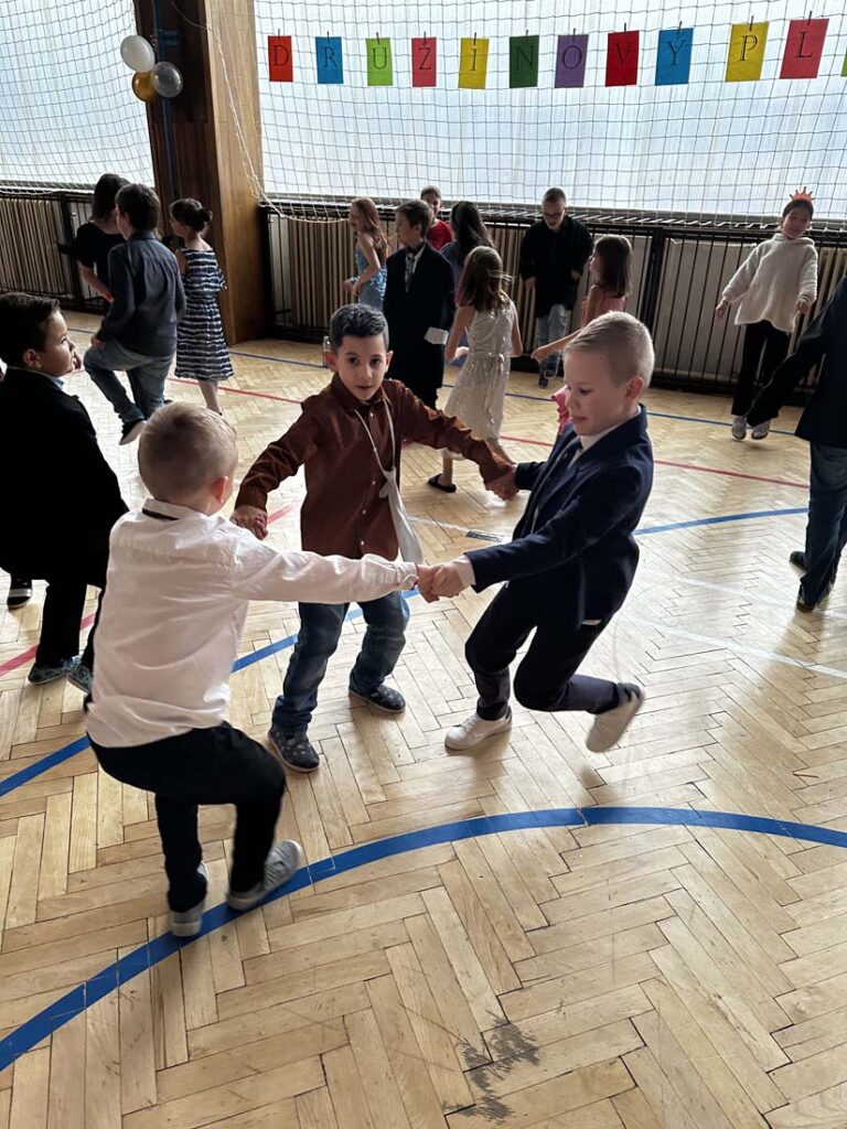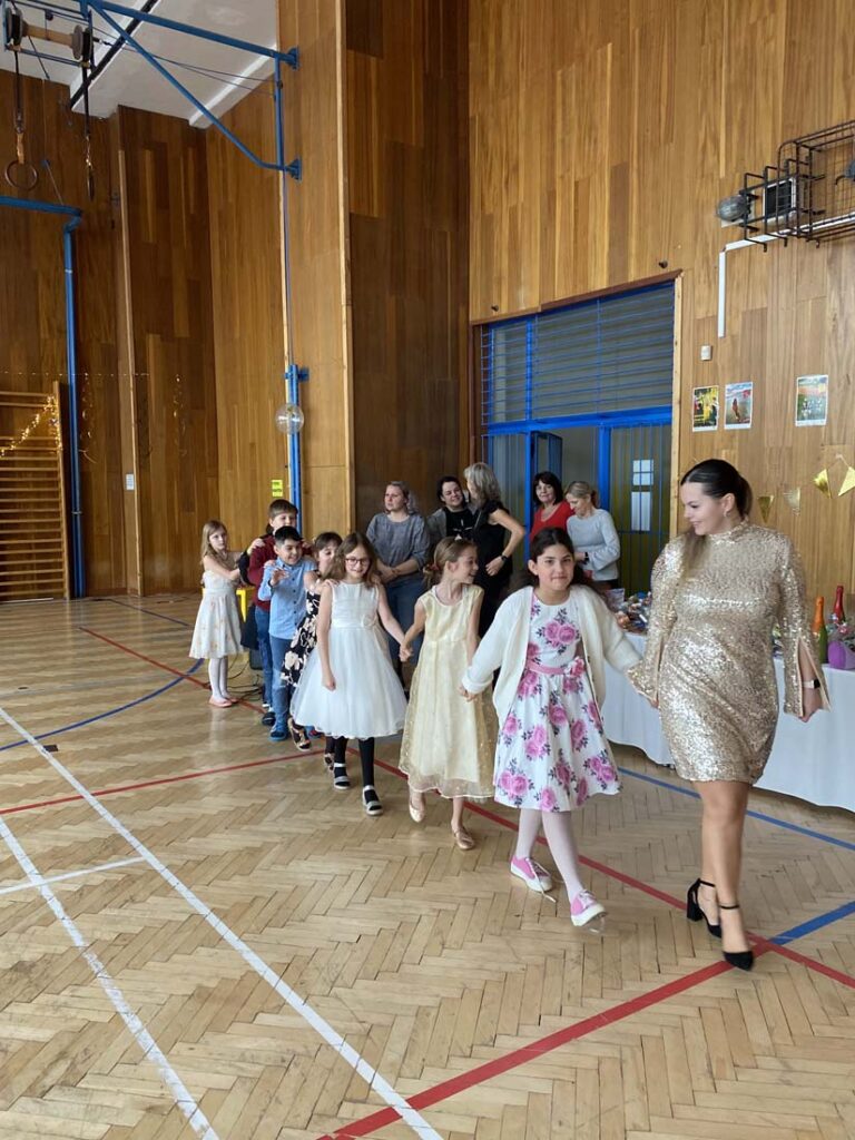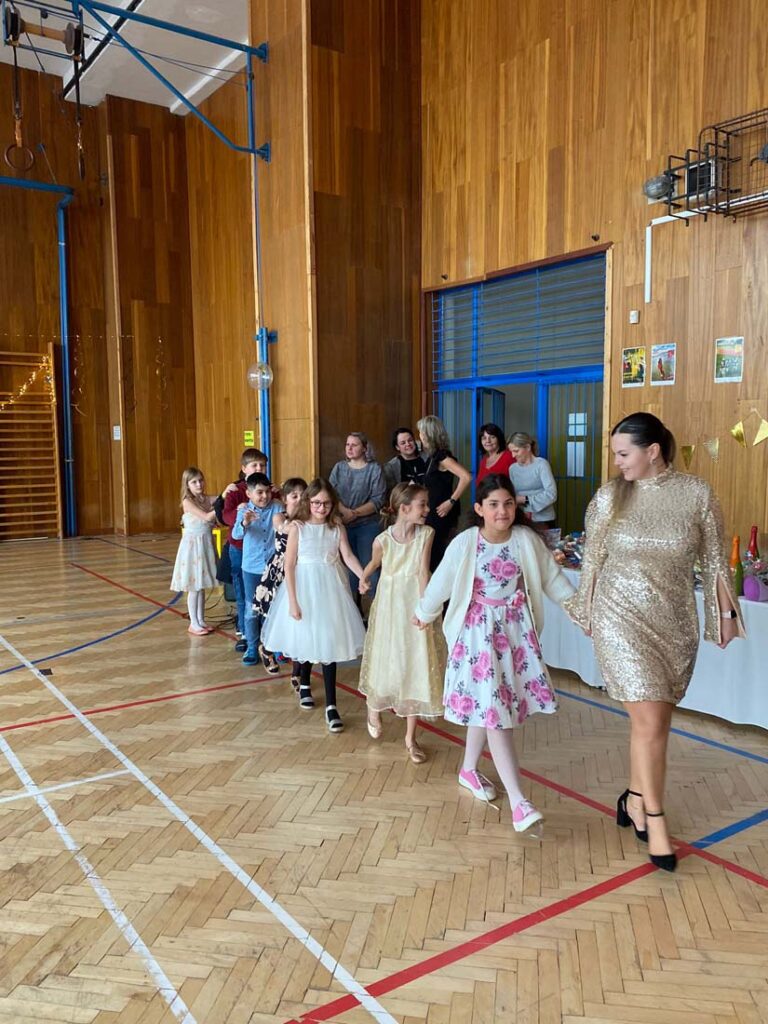 Plesová sezóna dorazila také k našim družináčkům. Dívky v plesových šatech, chlapci jako gentlemani. Všichni byli naprosto úžasní. Jako hosté vystoupili HD Zlouni a Iveta Plocová. Velké poděkování patří rodičům nejen za večerní róby, ale také za bohatou tombolu.