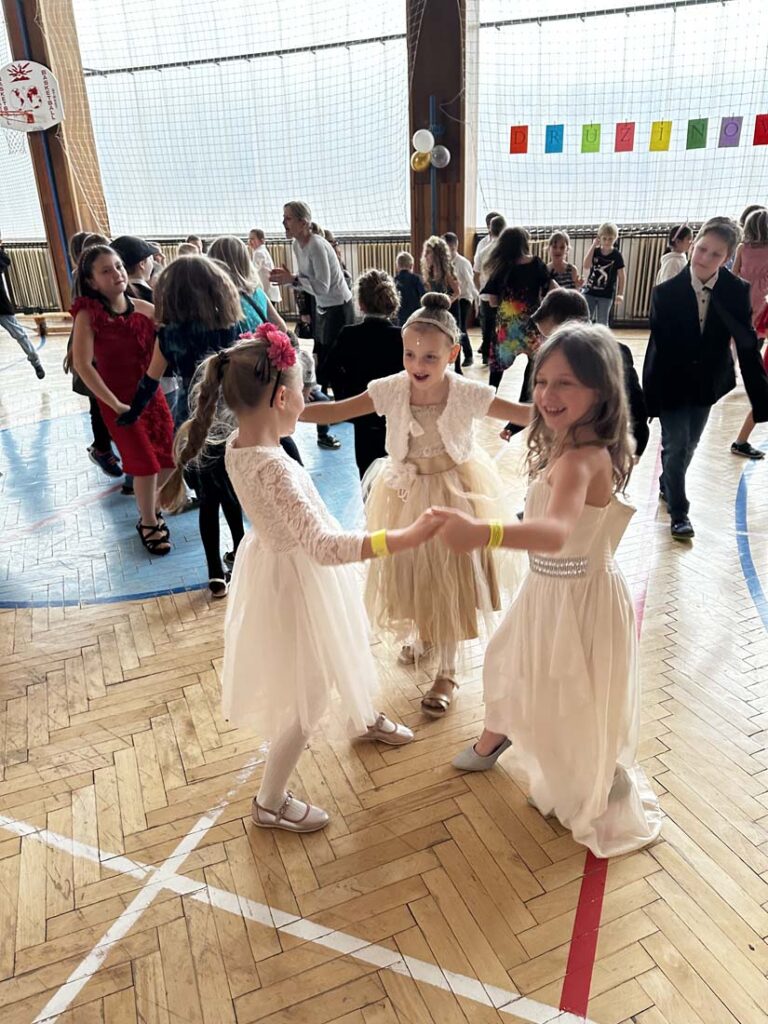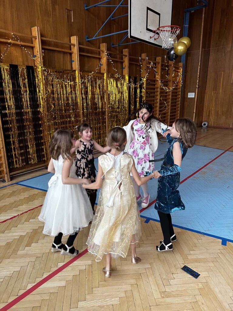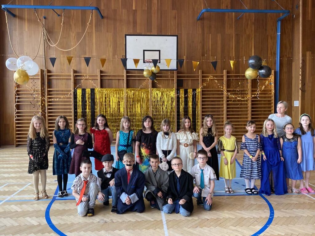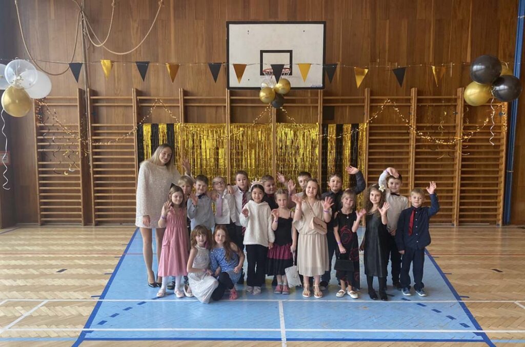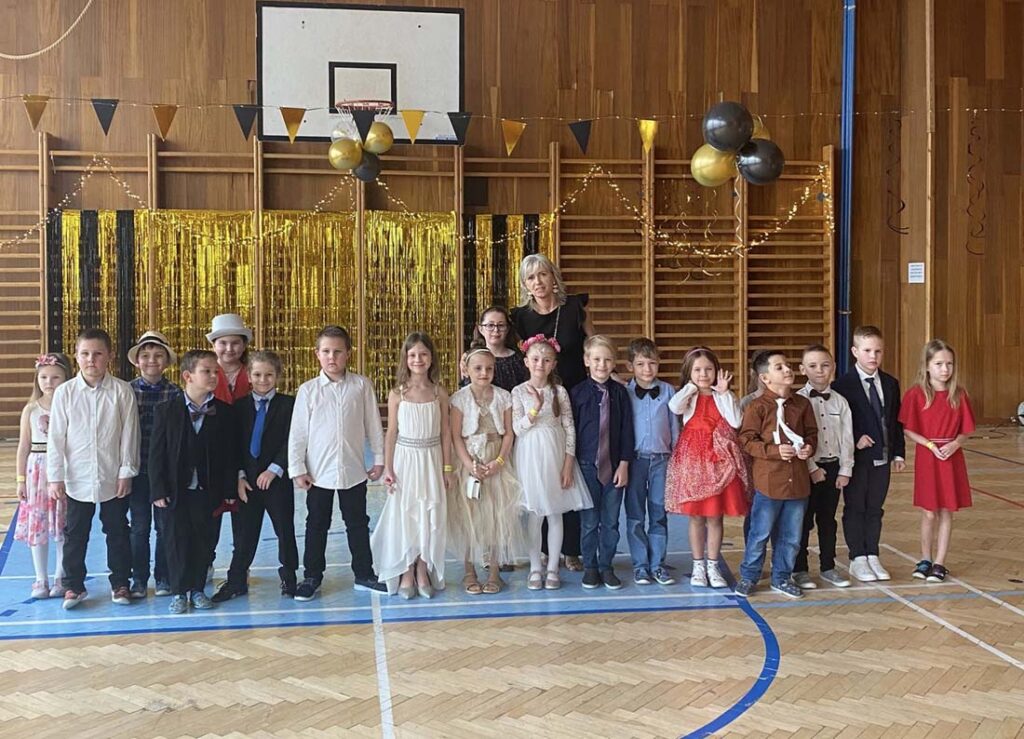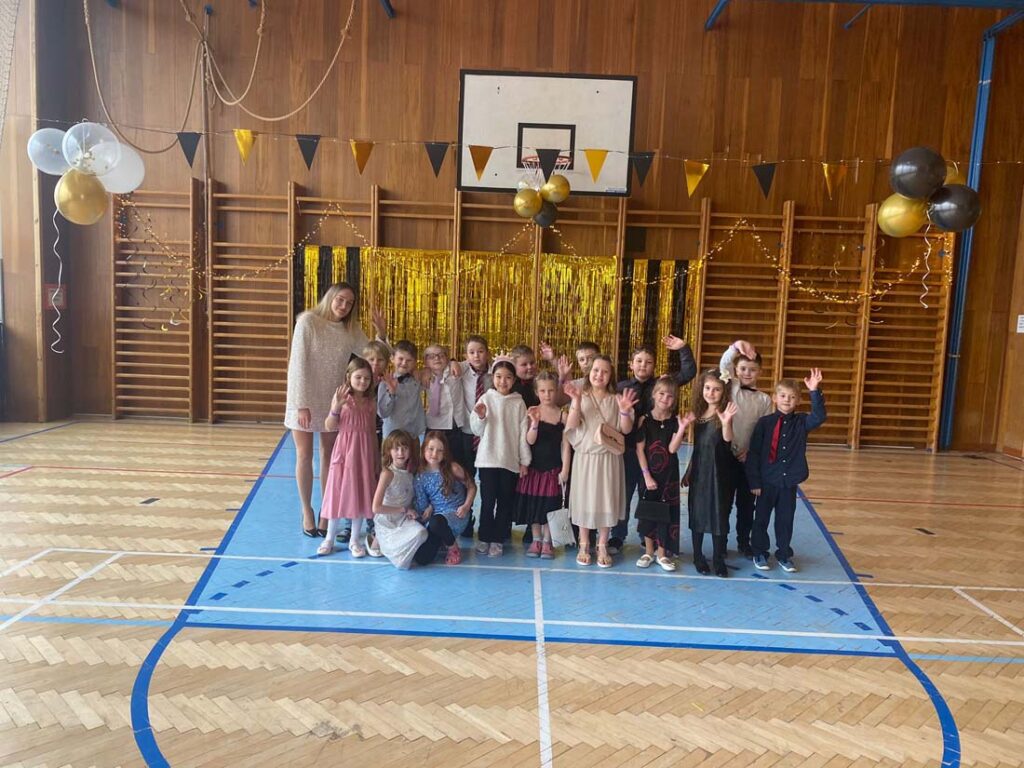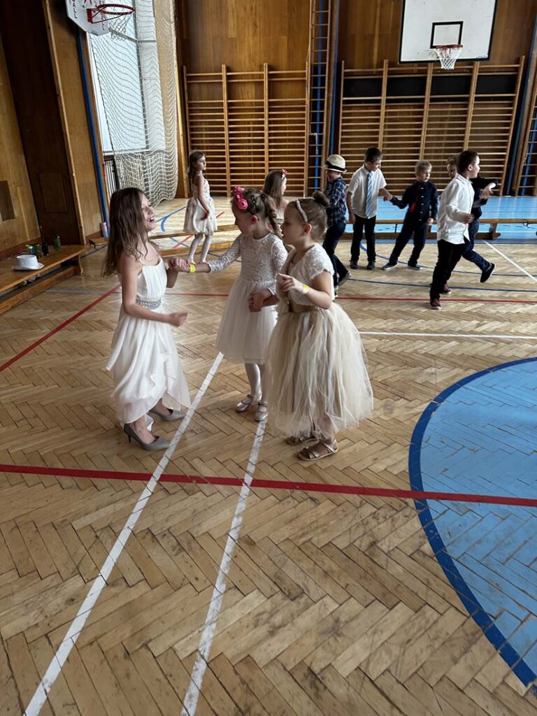Plesová sezóna dorazila také k našim družináčkům. Dívky v plesových šatech, chlapci jako gentlemani. Všichni byli naprosto úžasní. Jako hosté vystoupili HD Zlouni a Iveta Plocová. Velké poděkování patří rodičům nejen za večerní róby, ale také za bohatou tombolu.