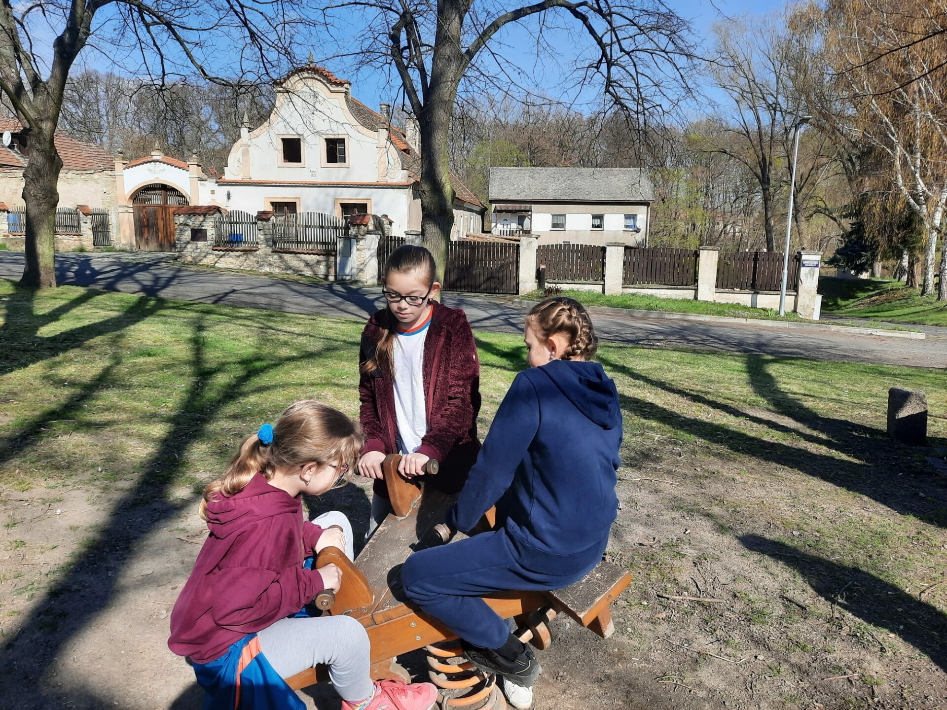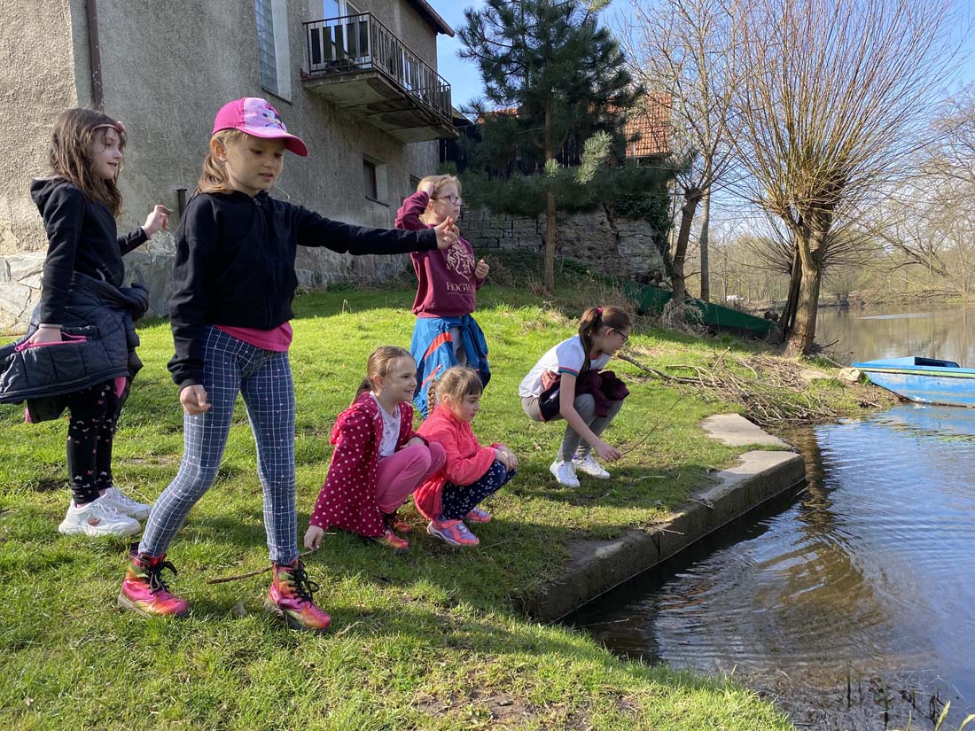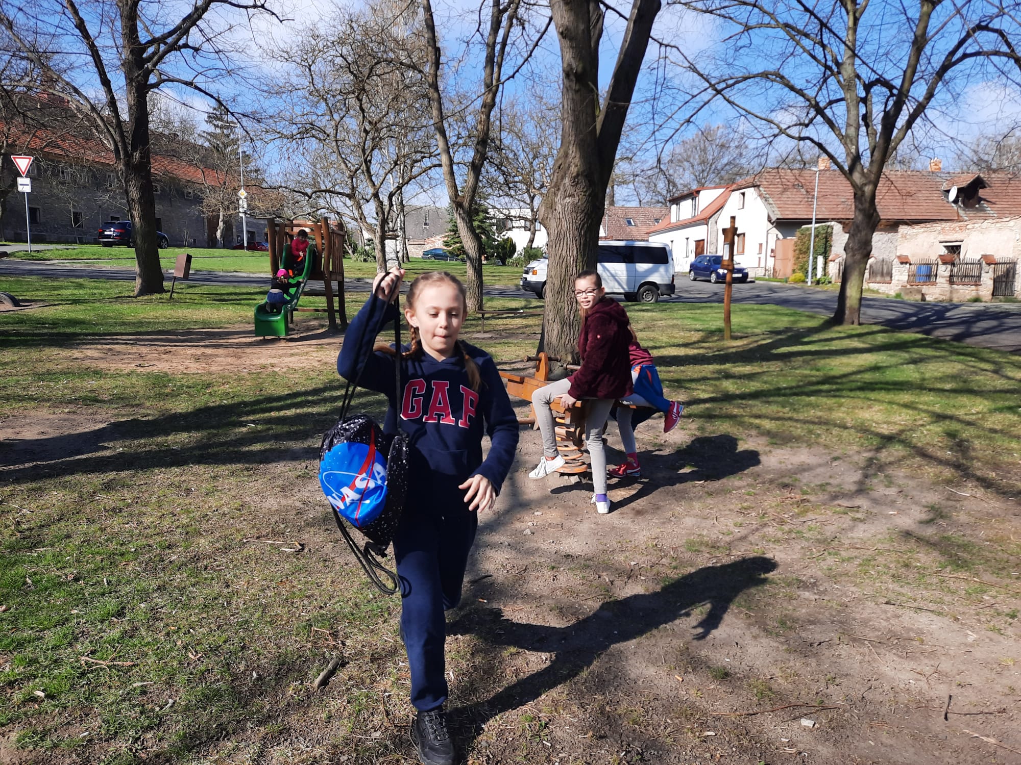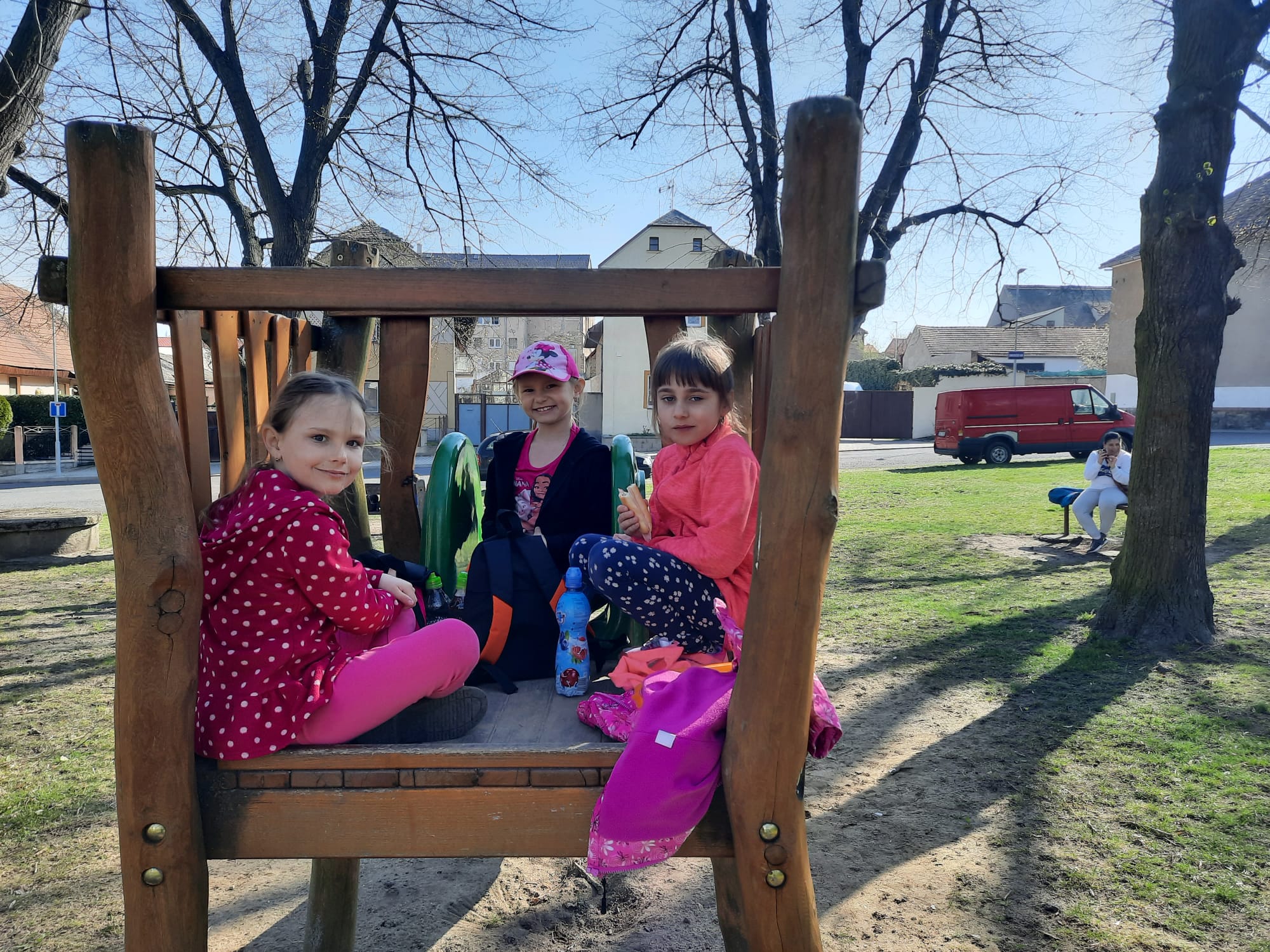 Den velikonočních prázdnin jsme v družině strávili pohybem. Vyšli jsme pozorovat krásy jara do bažantnice do Černčic. Přijít mohl kdo chtěl. Aby nám cesta lépe utíkala, všímali jsme si věcí kolem nás, počítali jsme zvířátka na cestě: pejsky, kočičky, motýli aj. Poznávali kytičky a ptáky v okolí řeky. Zastávkou na trase bylo dětské hřiště, kde jsme se nasvačili a pohráli si. Sešli jsme k řece, kde jsme si prohlédli kachny a hodili pár kamínkových žabek a na cestě u kostela spočítali, kolik schodů jsme zdolali. Na zpáteční cestě jsme se občerstvili v cukrárně. Zmrzlina byla sladkou tečkou za ušlými kilometry. Děti byly úžasné, nikoho nebolely nohy nebo to nikdo nepřiznal ?. Naši prvňáčci, druháci a třeťáci statečně zdolali neuvěřitelných 9 km a čeká je diplom s medailí, protože si to opravdu zaslouží. Jarním výšlapem nás doprovázela maminka paní Janečková.