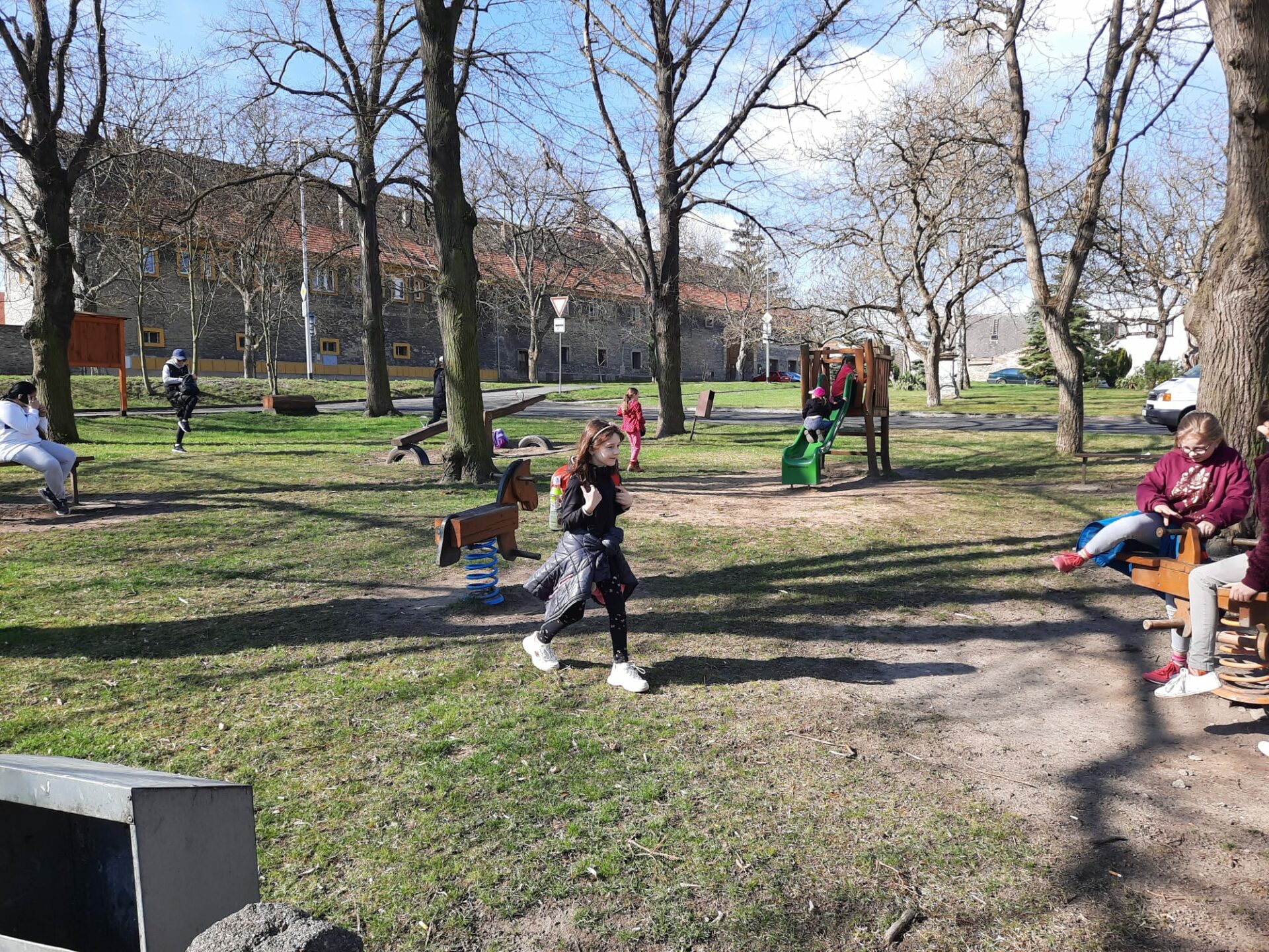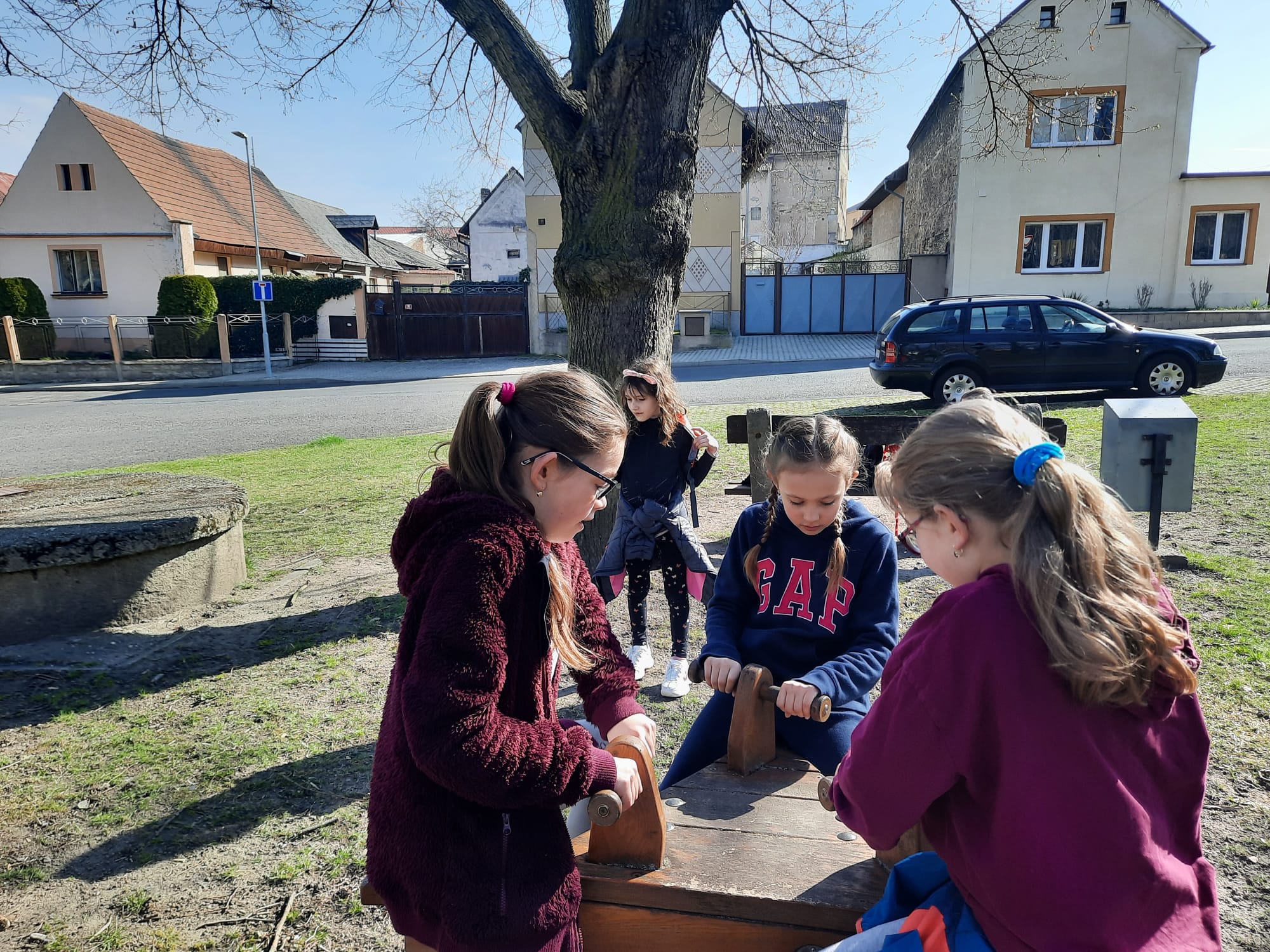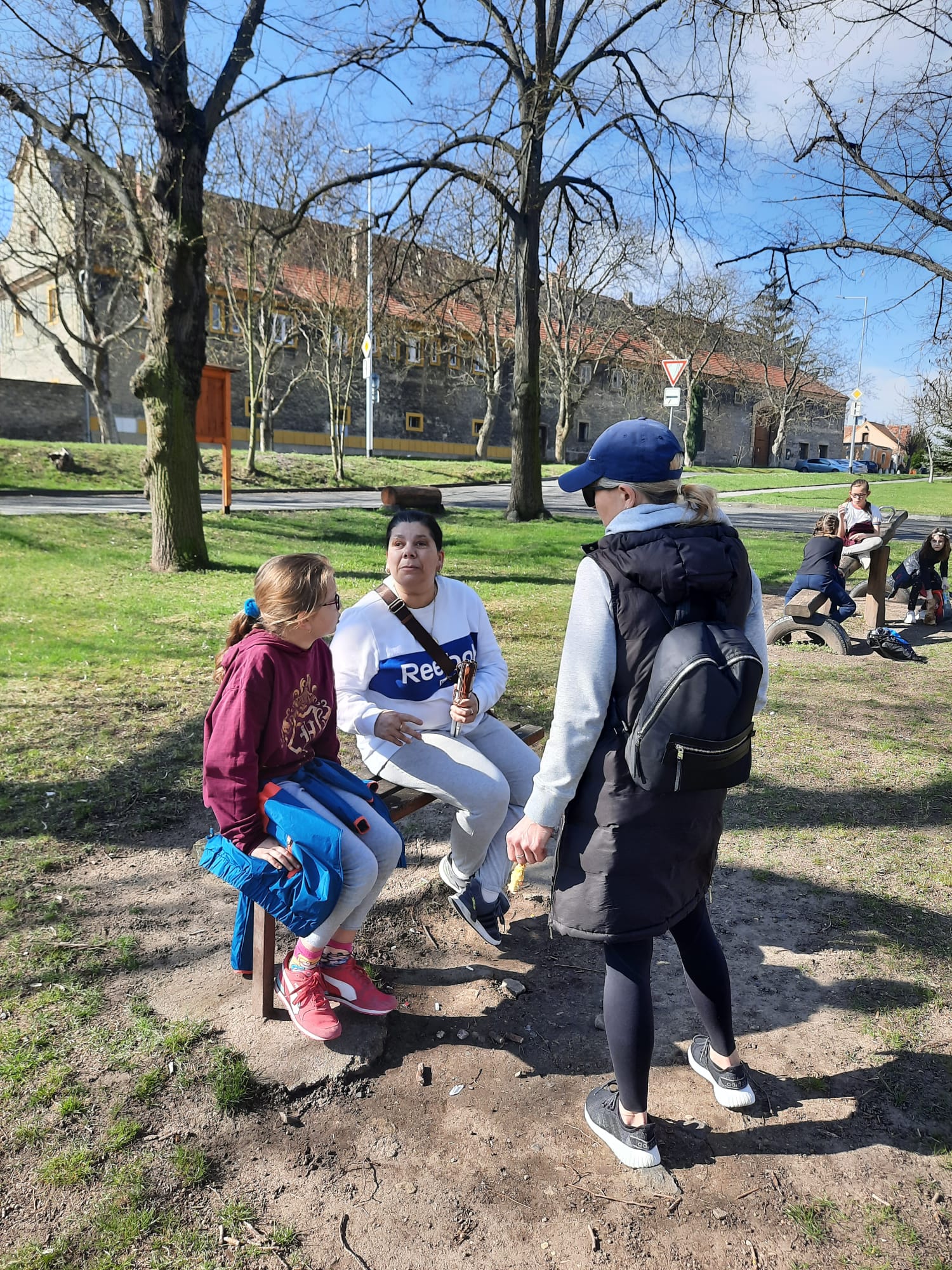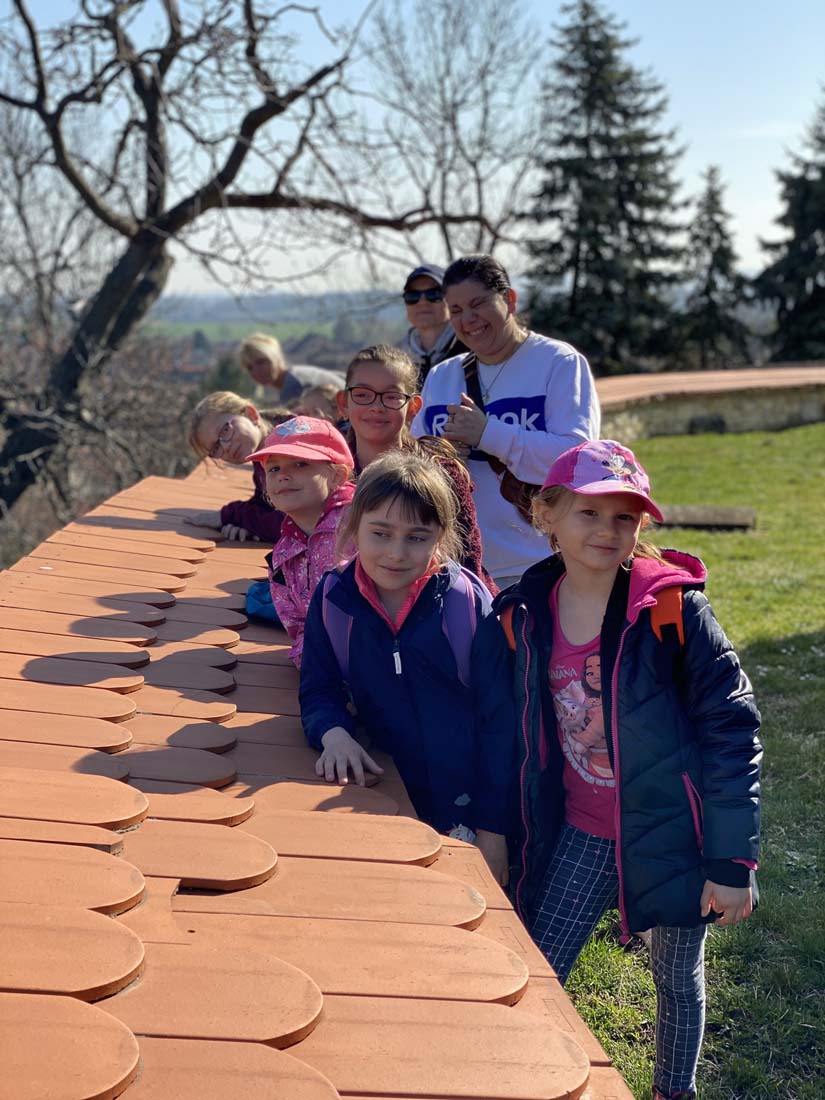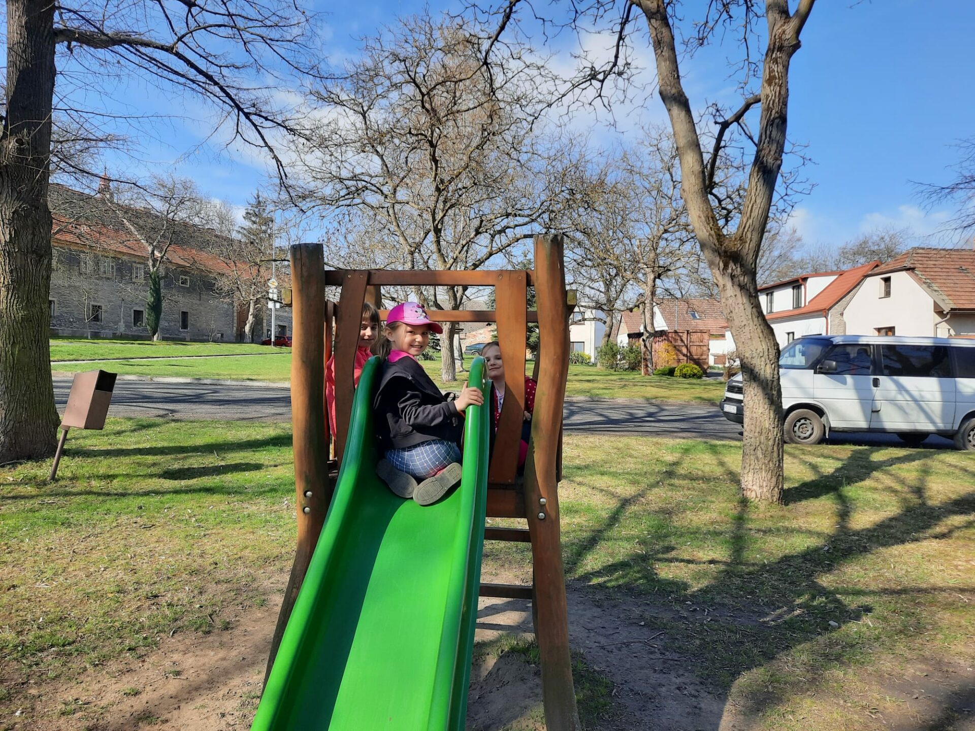 Den velikonočních prázdnin jsme v družině strávili pohybem. Vyšli jsme pozorovat krásy jara do bažantnice do Černčic. Přijít mohl kdo chtěl. Aby nám cesta lépe utíkala, všímali jsme si věcí kolem nás, počítali jsme zvířátka na cestě: pejsky, kočičky, motýli aj. Poznávali kytičky a ptáky v okolí řeky. Zastávkou na trase bylo dětské hřiště, kde jsme se nasvačili a pohráli si. Sešli jsme k řece, kde jsme si prohlédli kachny a hodili pár kamínkových žabek a na cestě u kostela spočítali, kolik schodů jsme zdolali. Na zpáteční cestě jsme se občerstvili v cukrárně. Zmrzlina byla sladkou tečkou za ušlými kilometry. Děti byly úžasné, nikoho nebolely nohy nebo to nikdo nepřiznal ?. Naši prvňáčci, druháci a třeťáci statečně zdolali neuvěřitelných 9 km a čeká je diplom s medailí, protože si to opravdu zaslouží. Jarním výšlapem nás doprovázela maminka paní Janečková.