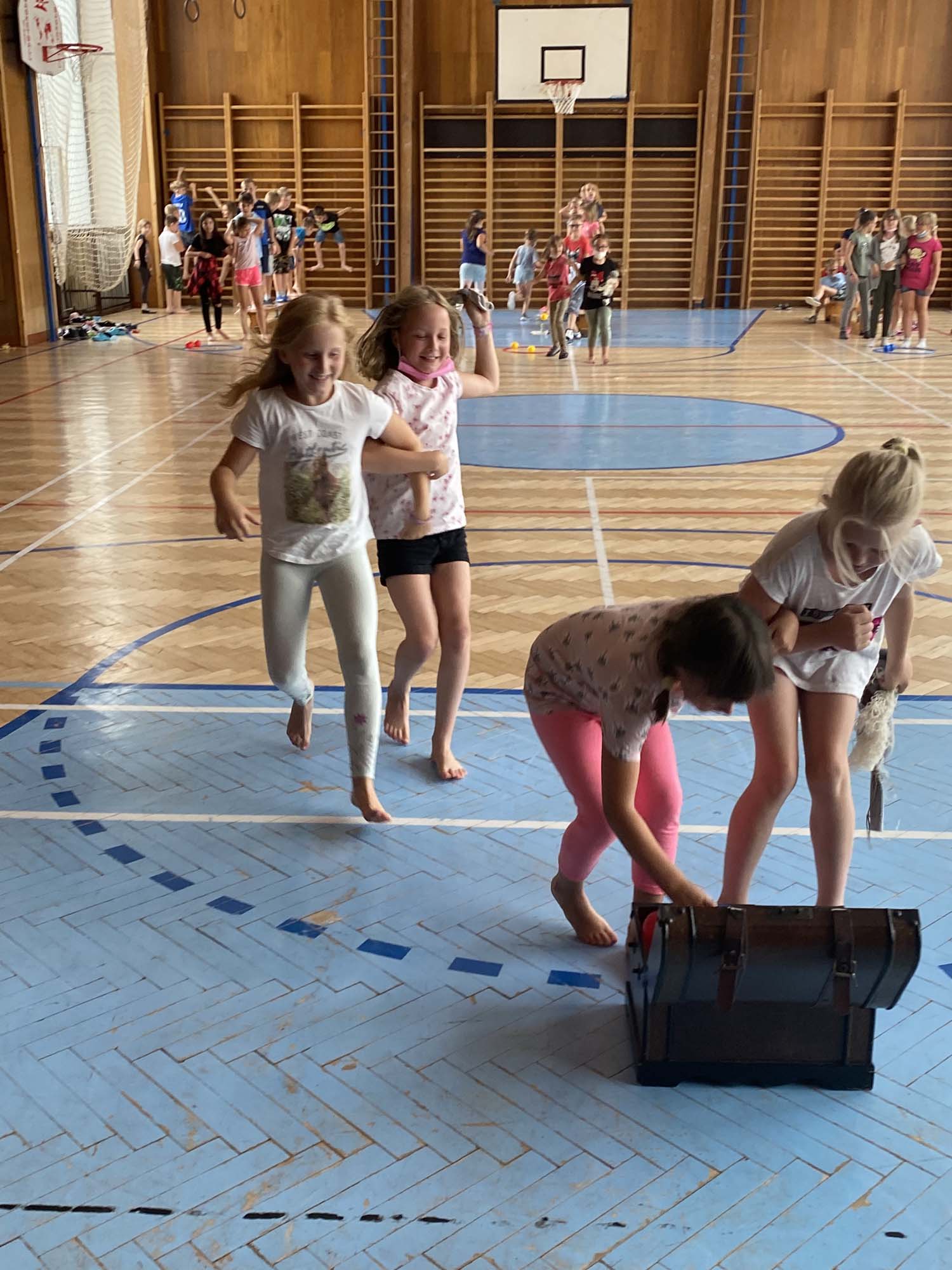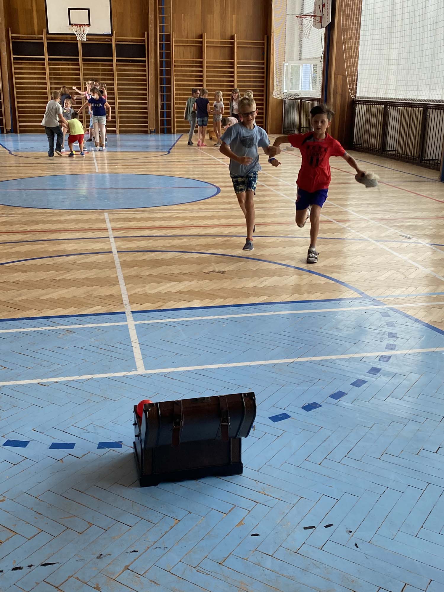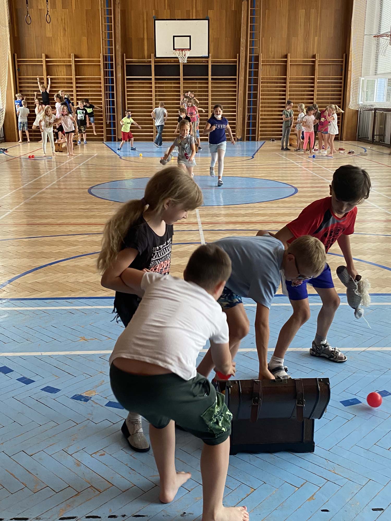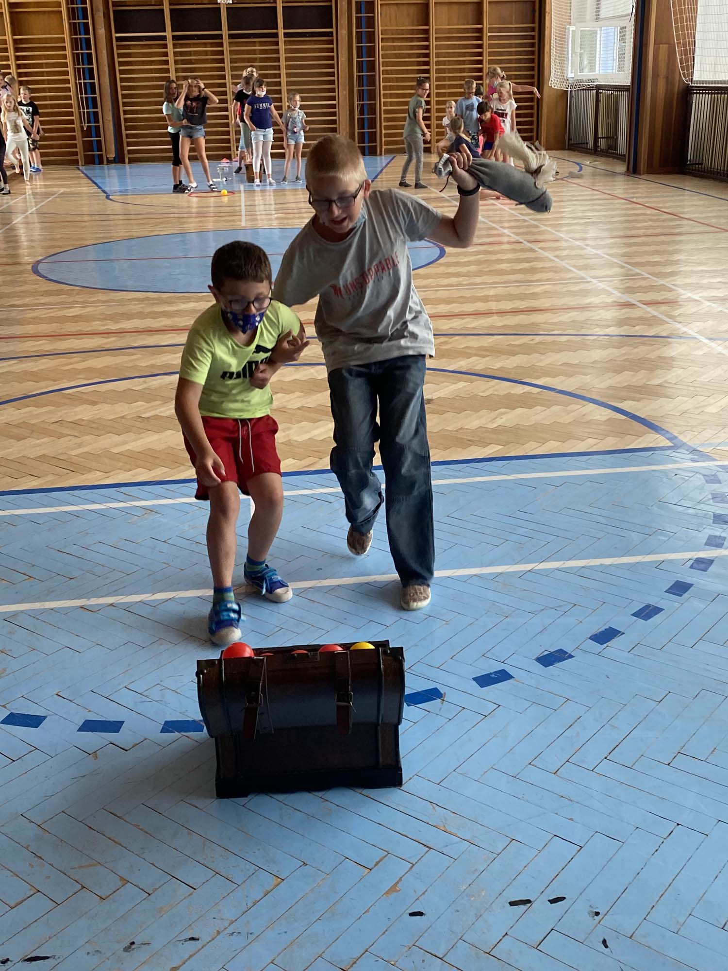 Rytířské hry ukončili školní rok 2020-21 ve školní družině. V úvodu jsme poděkovali účastníkům online vysílání družiny a deskových her za příspěvky a účast. Odměnili jsme děti diplomy a drobnými dárky. Poté se utkaly tři jezdecké oddíly v rytířské jízdě dvojic, vědomostmi upevnily svá královská města, se zajatcem ukořistily svou část pokladu a dovedly slepého rytíře do bezpečí. Poslední společné odpoledne si děti užily, odměna čekala na každého.