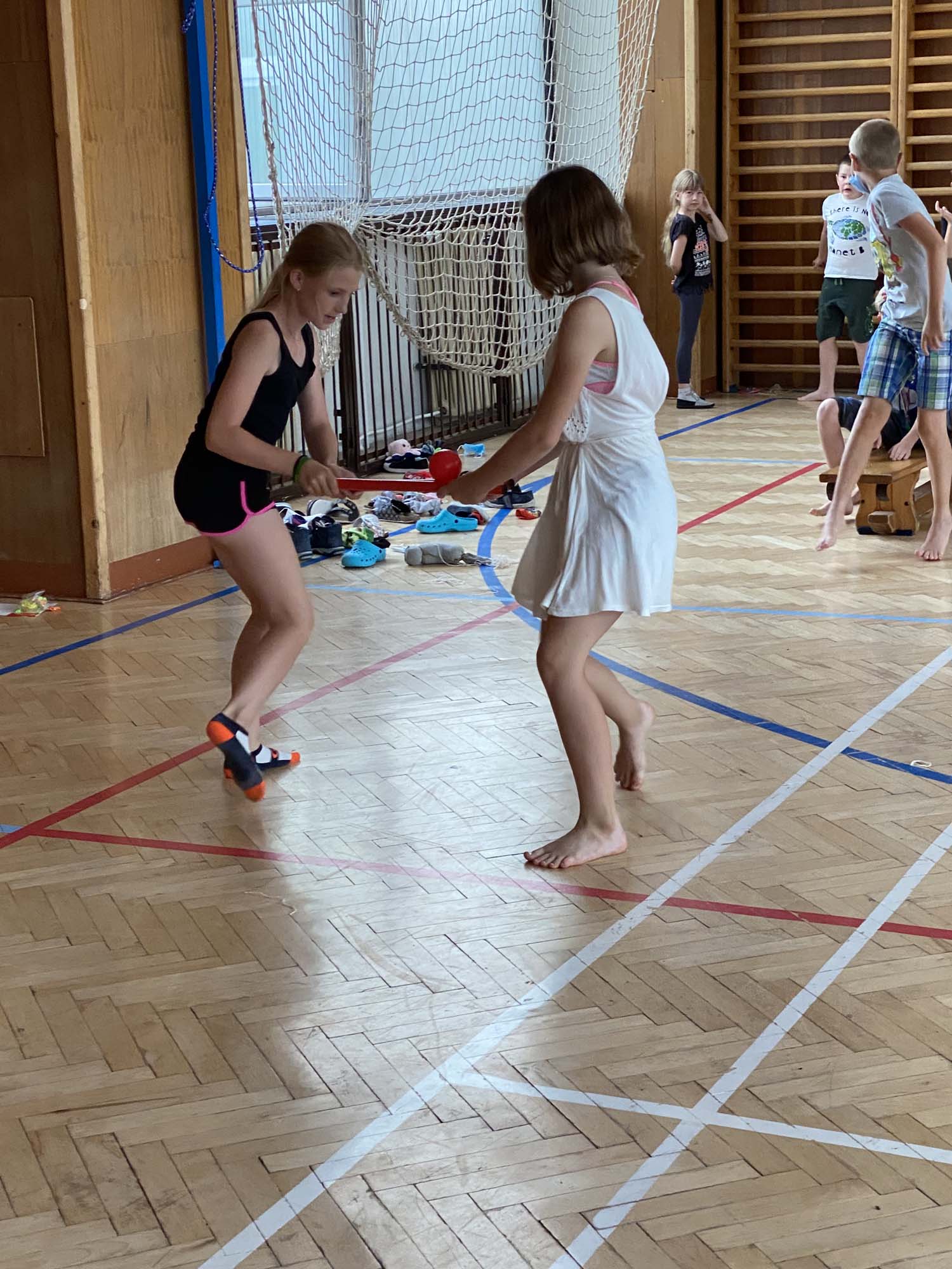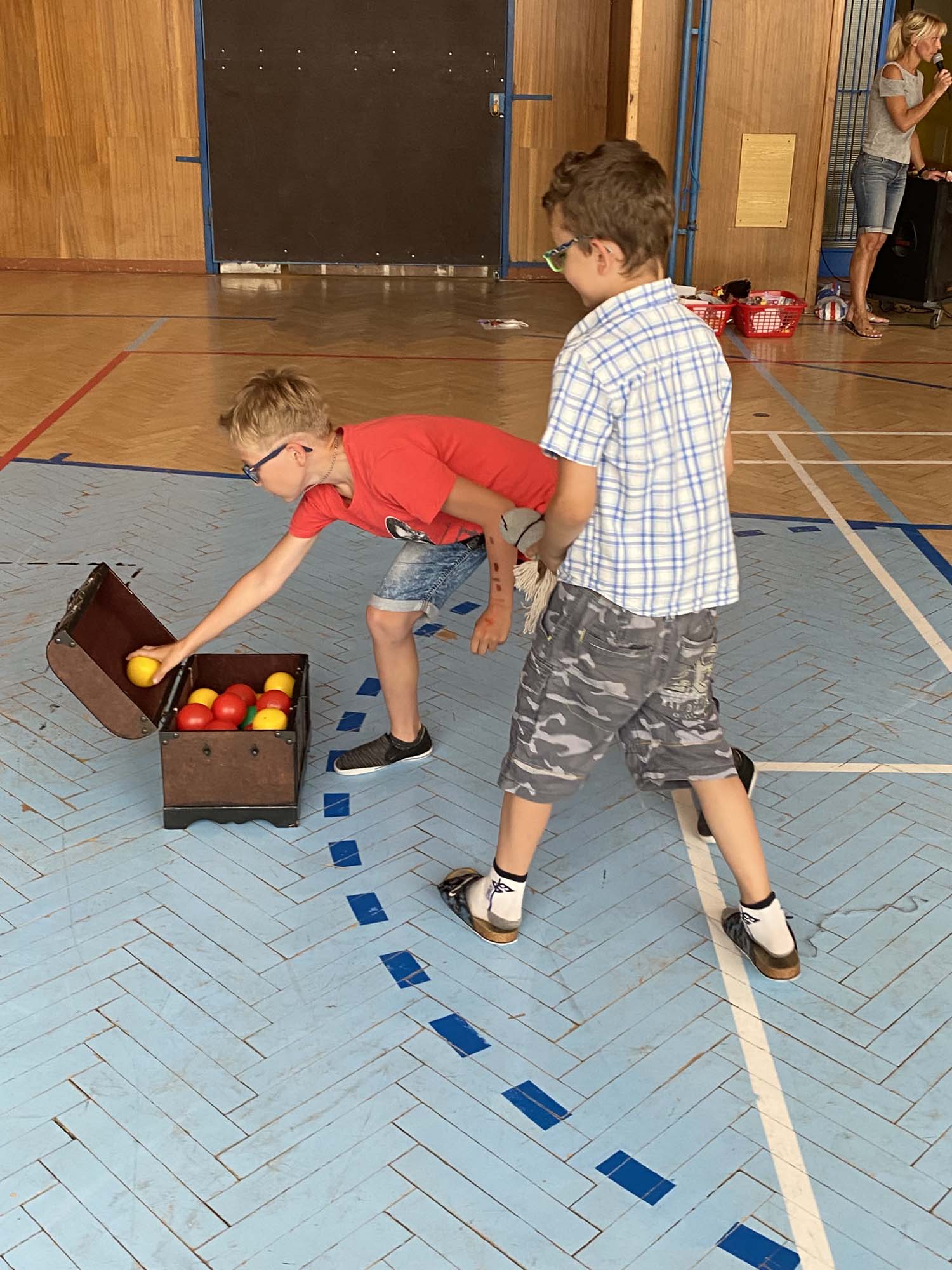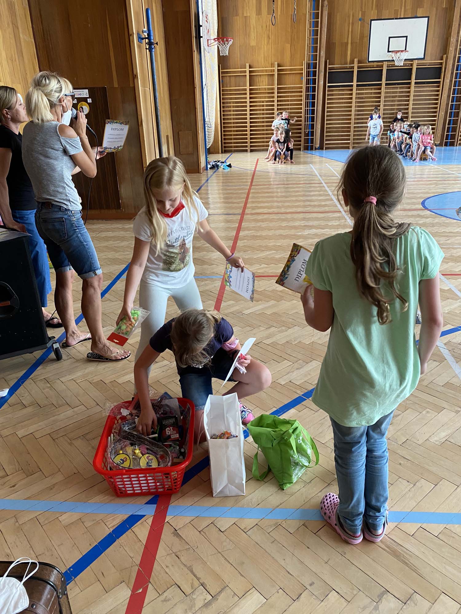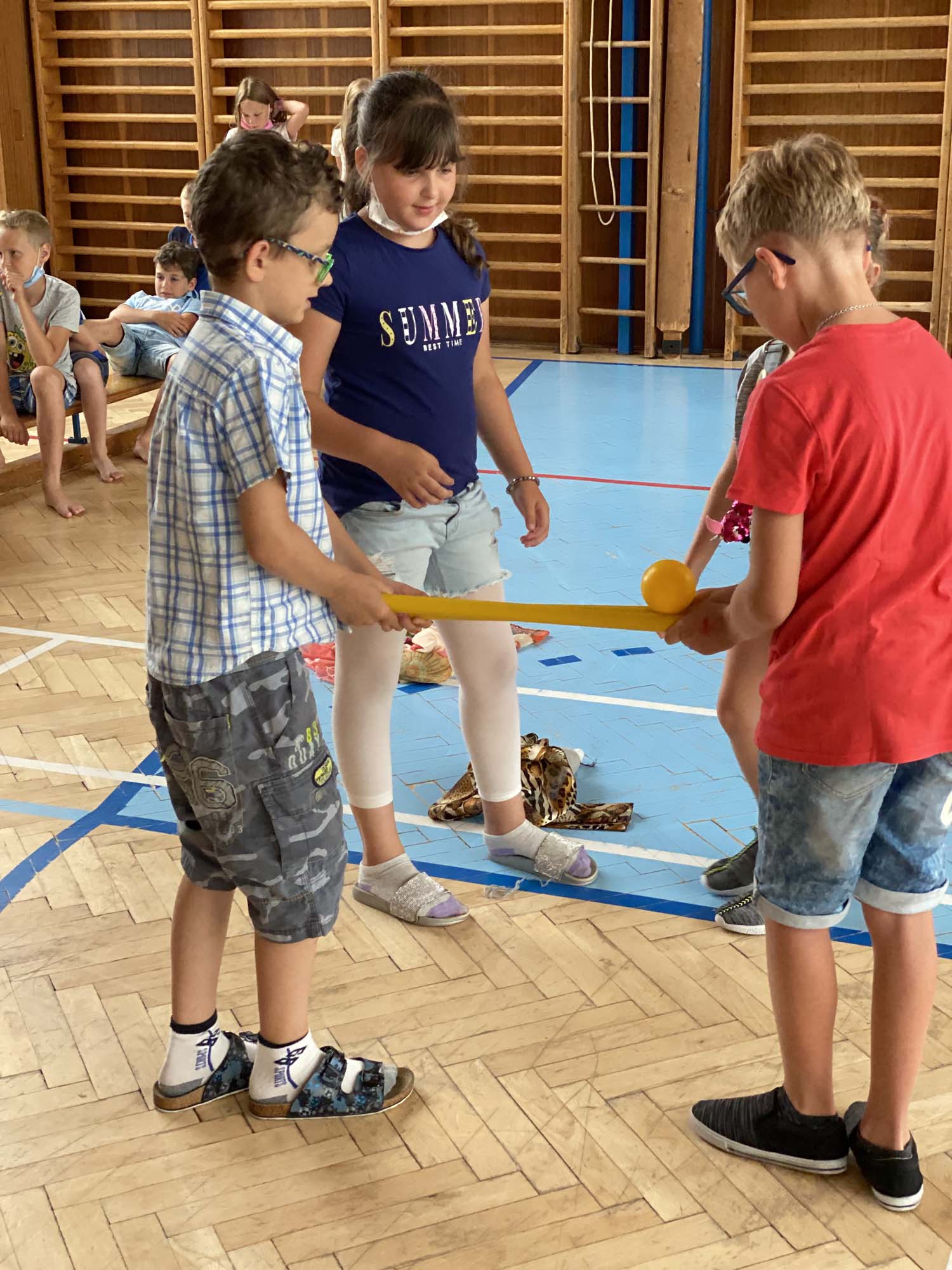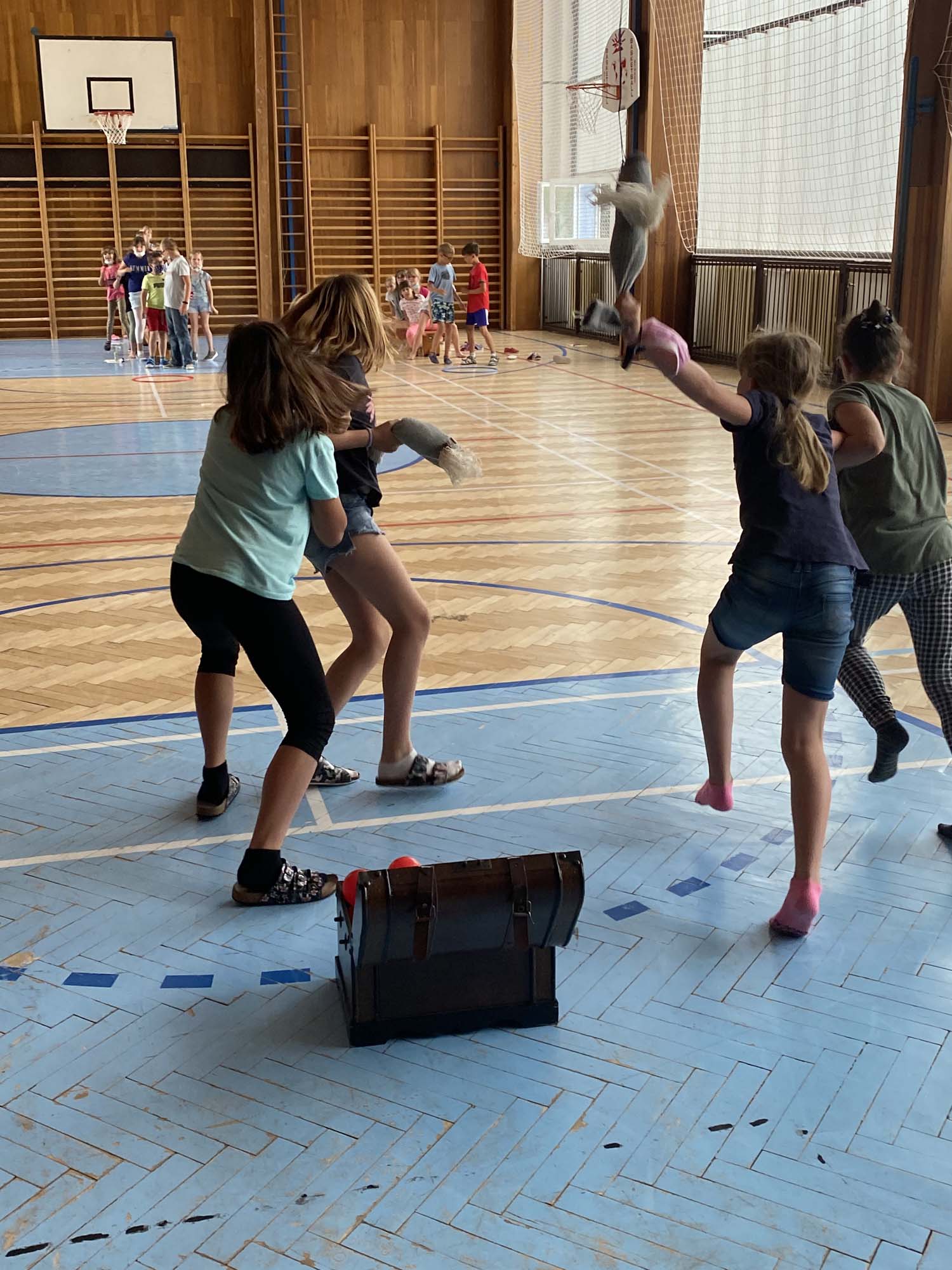 Rytířské hry ukončili školní rok 2020-21 ve školní družině. V úvodu jsme poděkovali účastníkům online vysílání družiny a deskových her za příspěvky a účast. Odměnili jsme děti diplomy a drobnými dárky. Poté se utkaly tři jezdecké oddíly v rytířské jízdě dvojic, vědomostmi upevnily svá královská města, se zajatcem ukořistily svou část pokladu a dovedly slepého rytíře do bezpečí. Poslední společné odpoledne si děti užily, odměna čekala na každého.