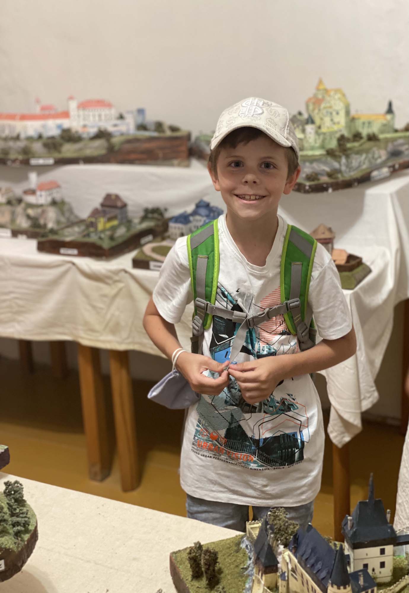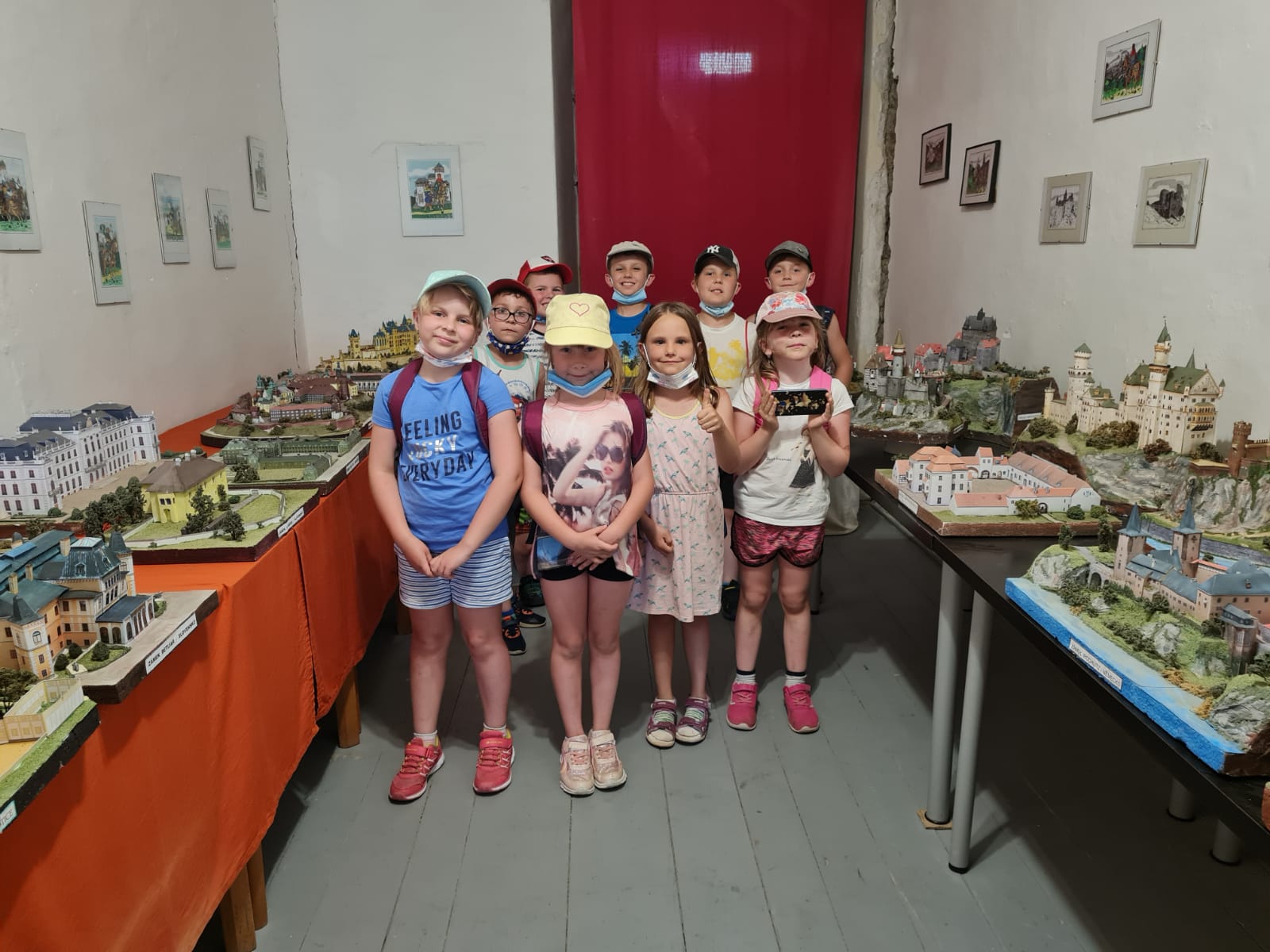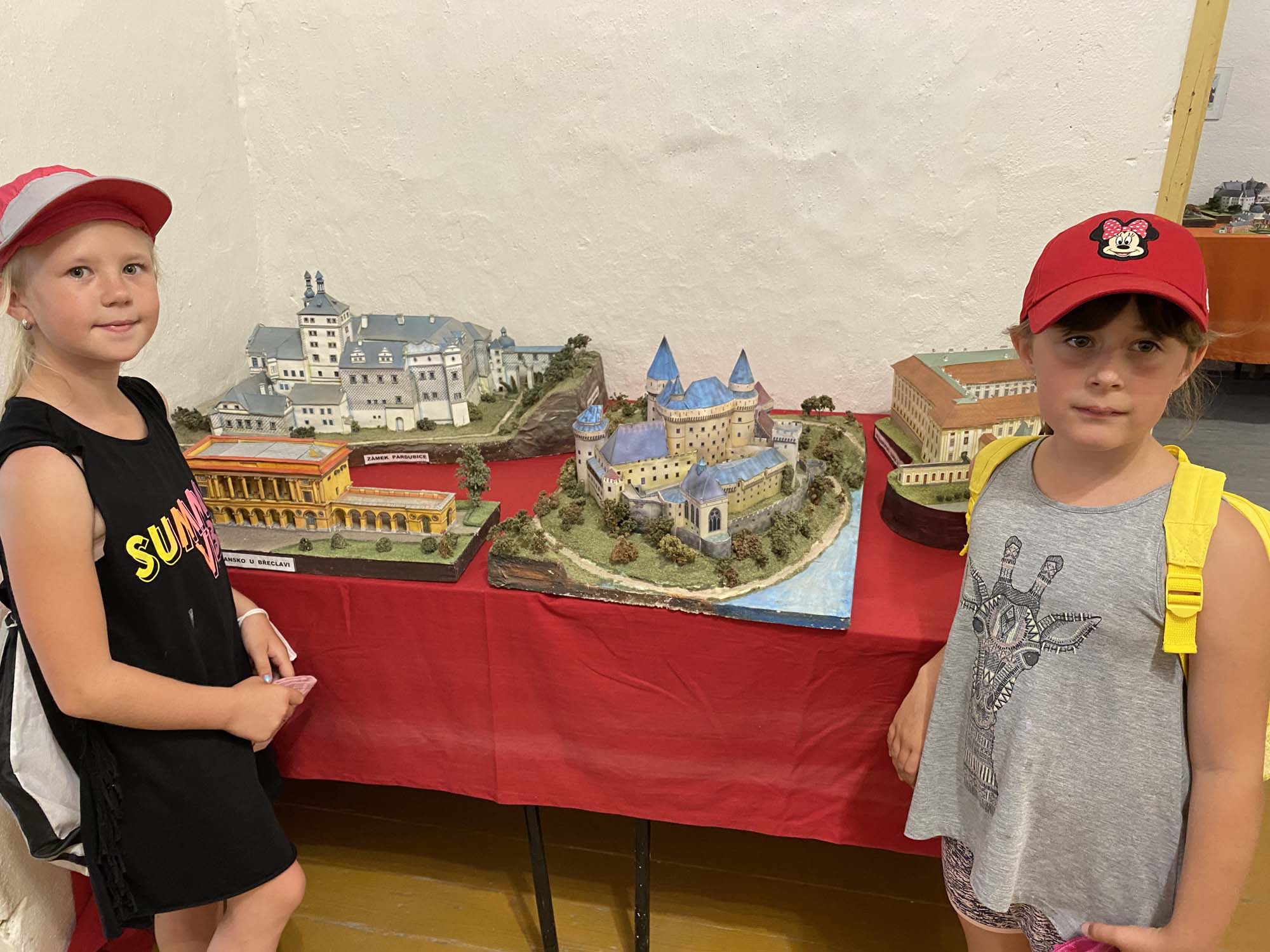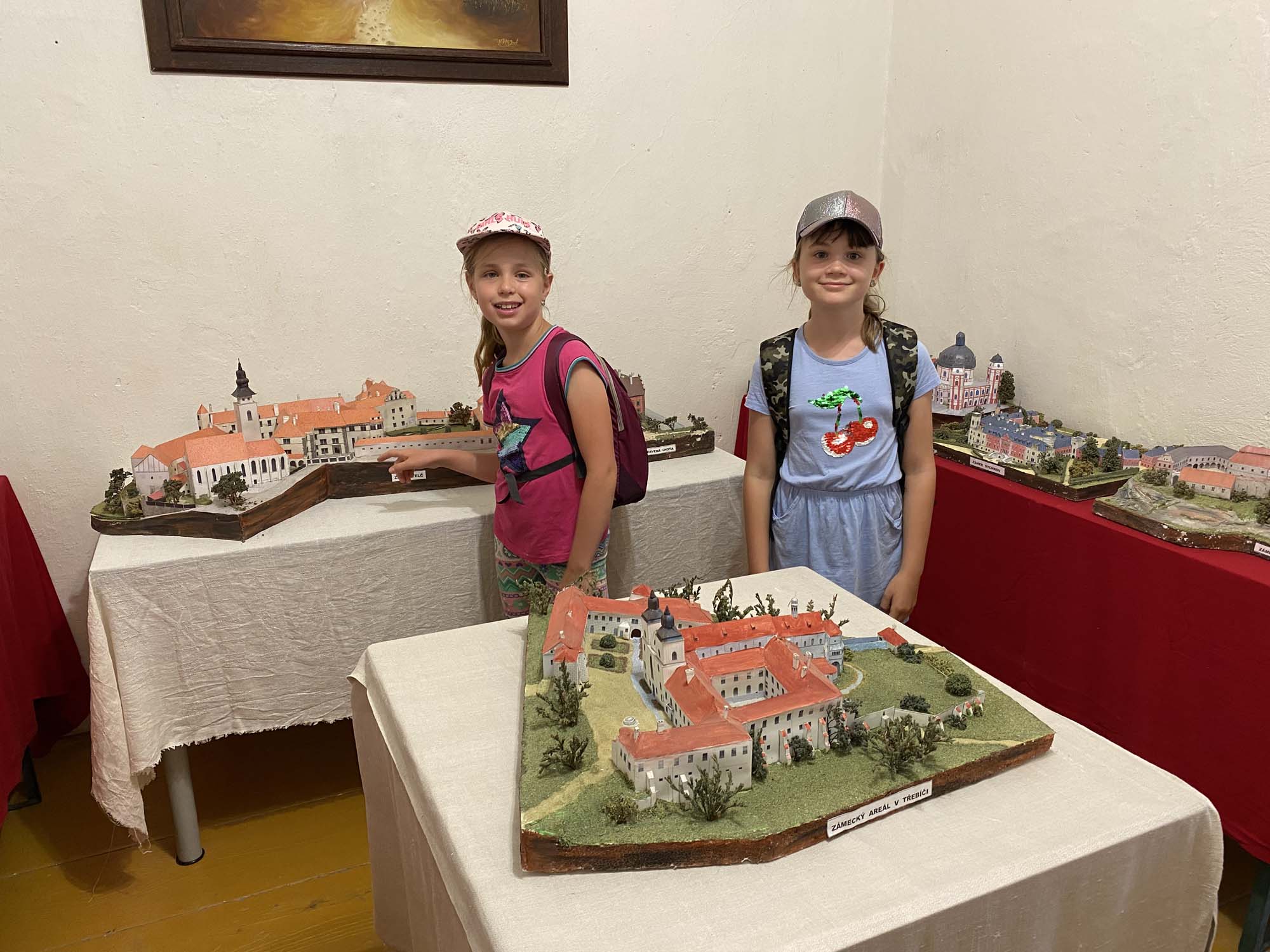 V jedné části zámku jsme si prohlédli výstavu modelů papírových hradů a zámků. Na zámecké zahradě jsme rýžovali české granáty.
