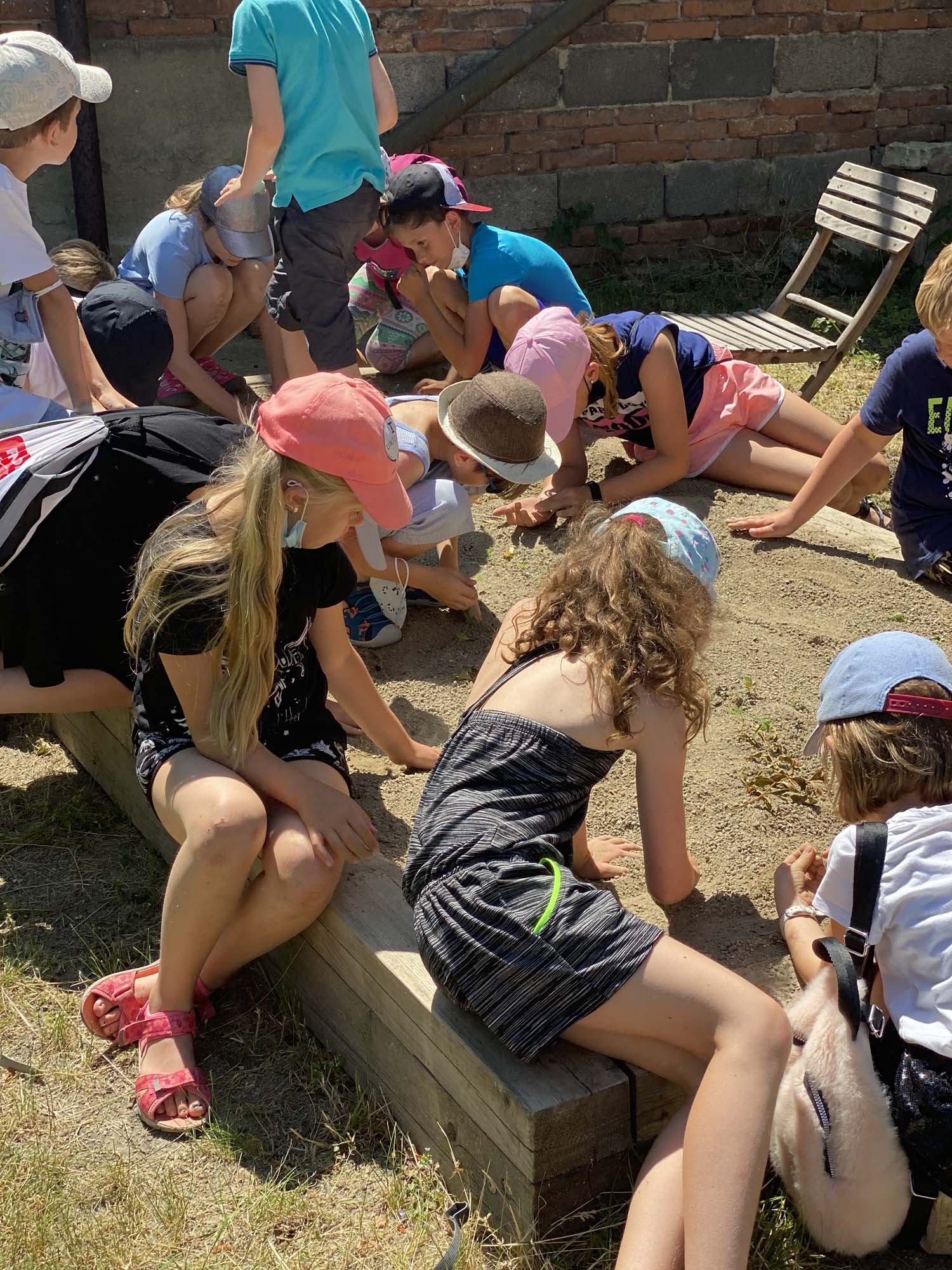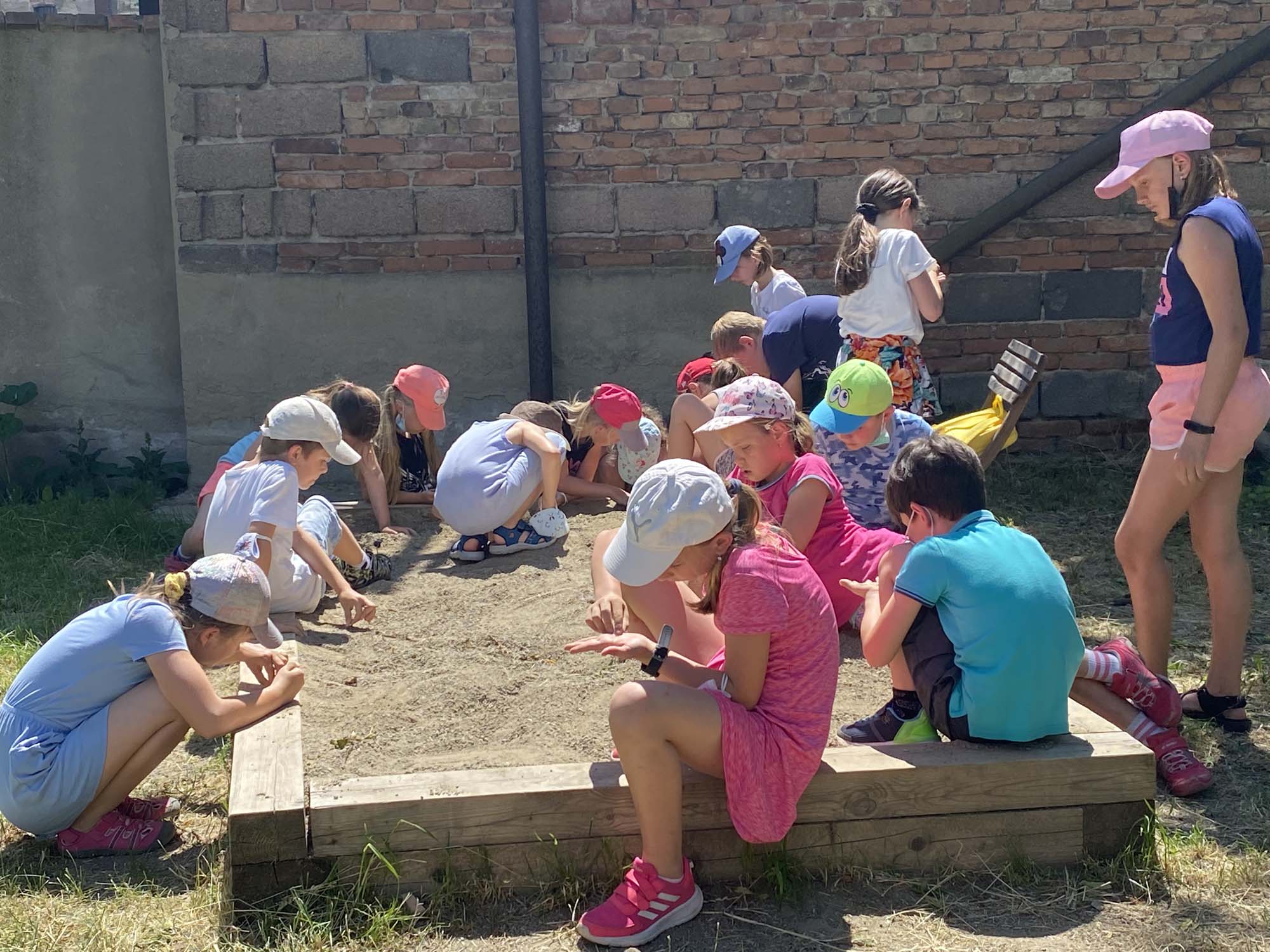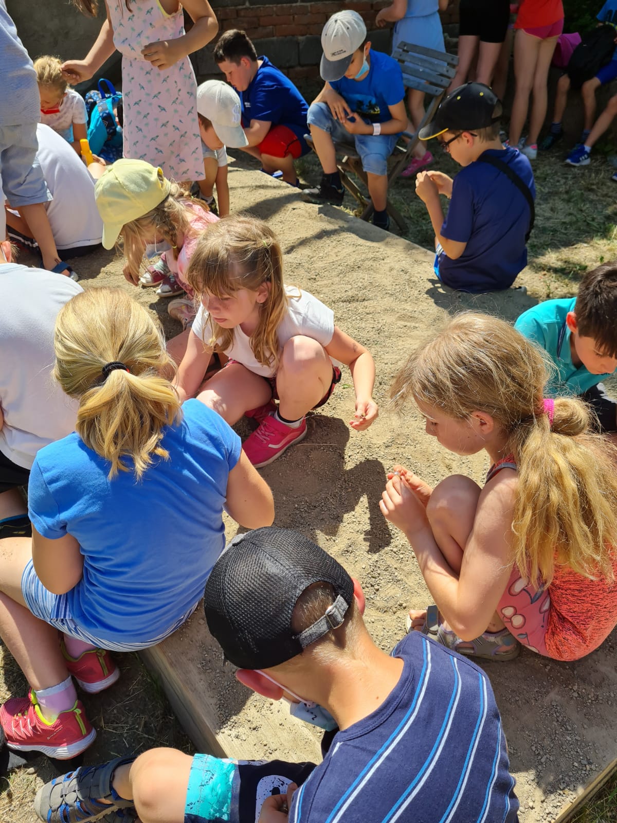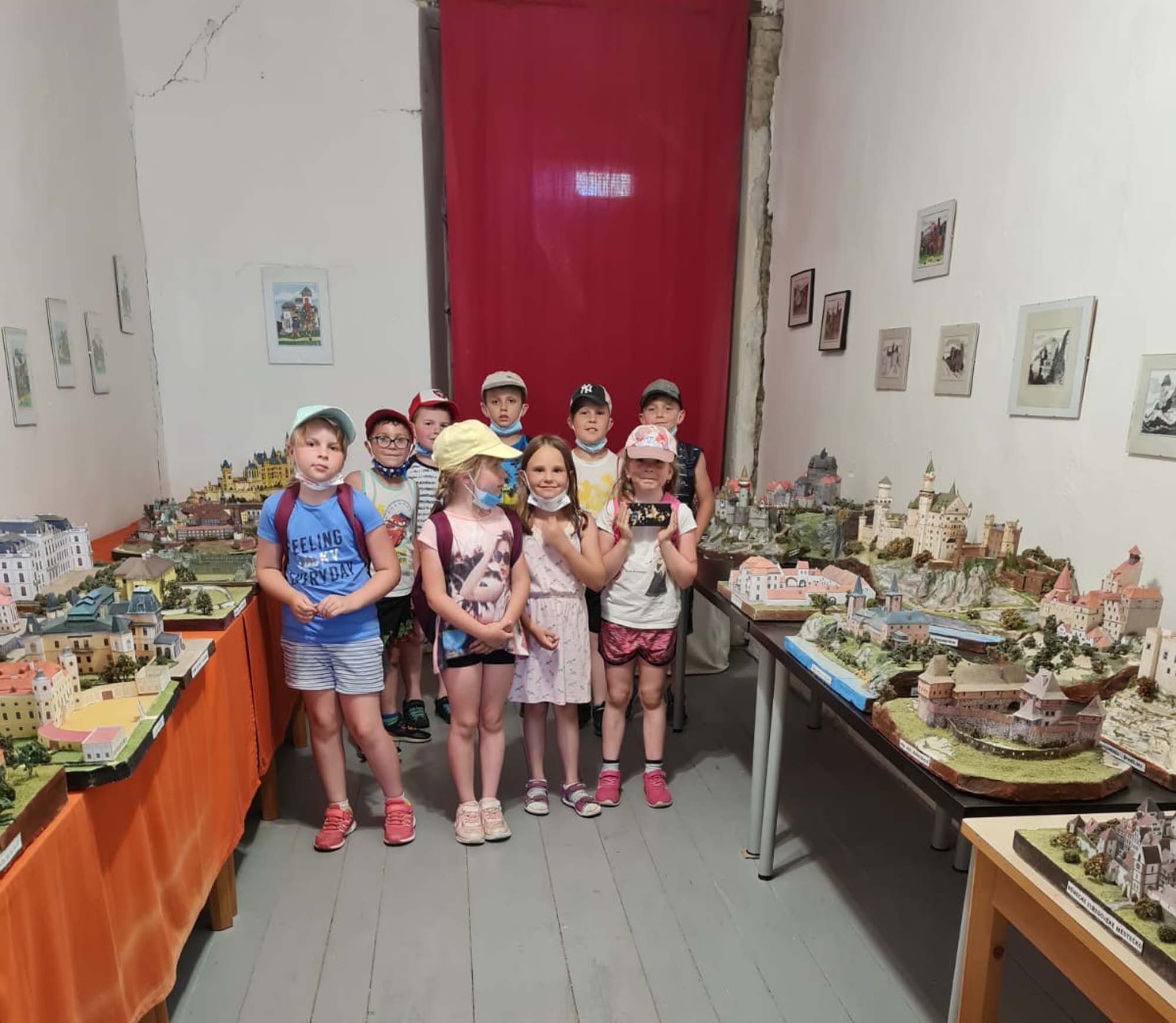 V jedné části zámku jsme si prohlédli výstavu modelů papírových hradů a zámků. Na zámecké zahradě jsme rýžovali české granáty.