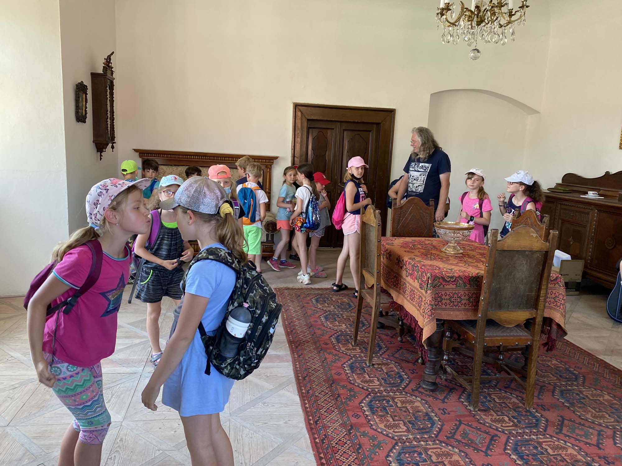 V pátek 18. 6. jsme vyrazili na výlet na Pátek. V místním zámku nás přivítal kastelán pan Petr Rasken Chaloupka. Provedl nás zámkem, kde bylo v parném dni příjemné chladno.