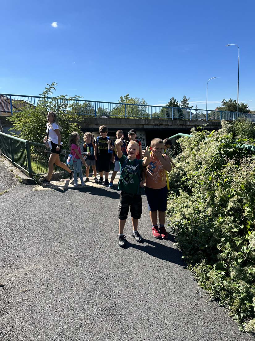 Poznali jsme kamarády z jiných oddělení. Výšlap podzimní přírodou statečně zvládli i ti nejmenší z přípravné třídy.