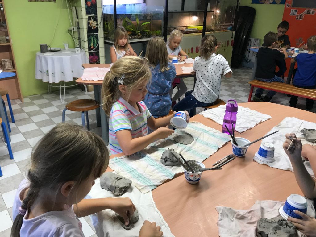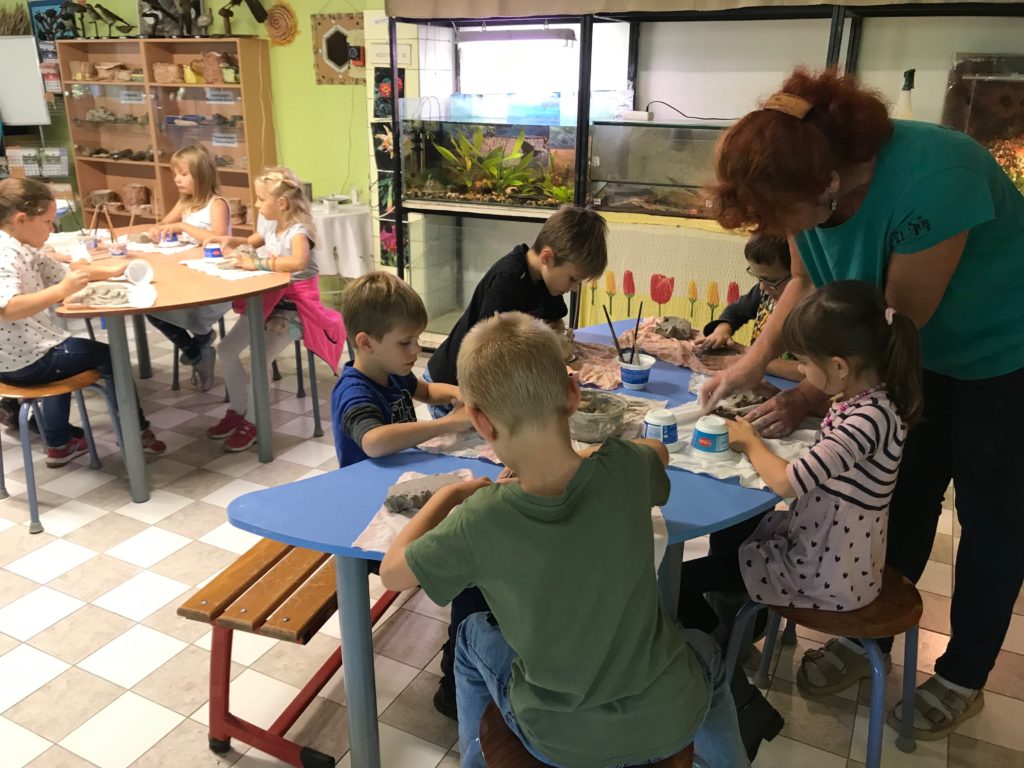 Na fotogalerii se můžete podívat, jak se tvoření dětem povedlo. Některé děti se s keramickou hlínou setkaly poprvé, ale všichni dobře zvládly zadaný úkol. Děti tvoření bavilo, ale nejvíce je zaujala živá zvířátka v místnosti, se kterými si pohrajeme příště a povíme si, jak o ně správně pečovat.