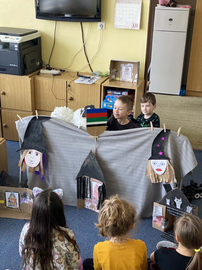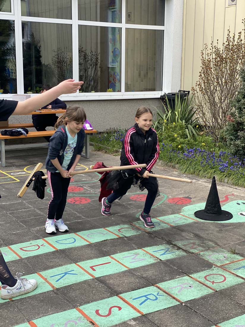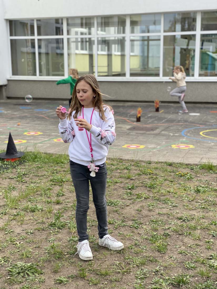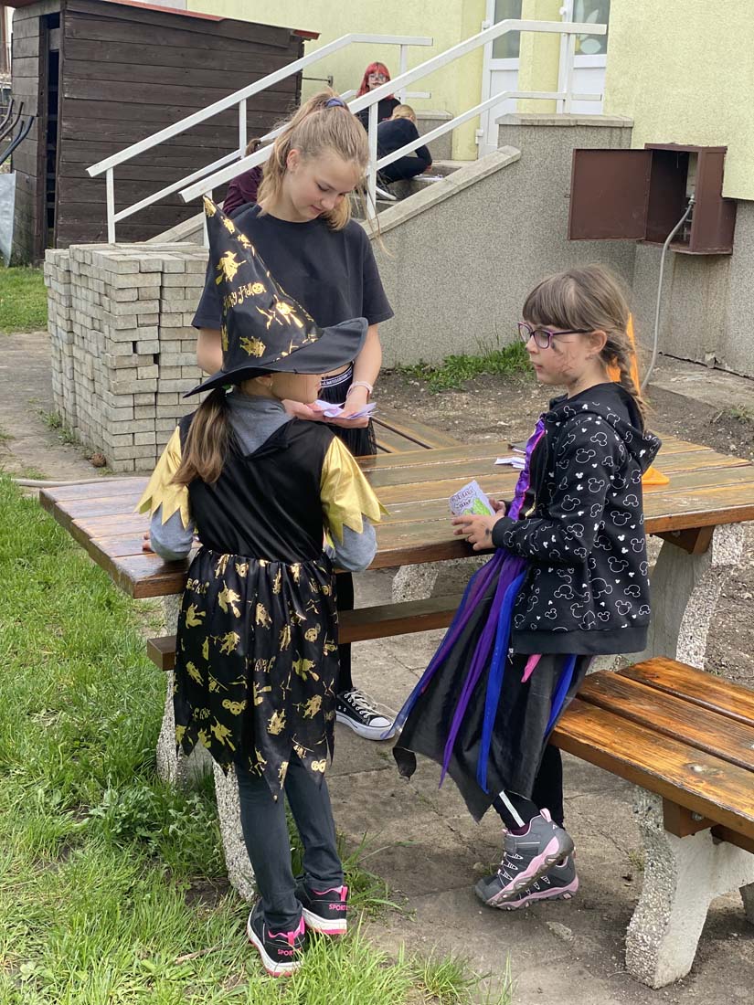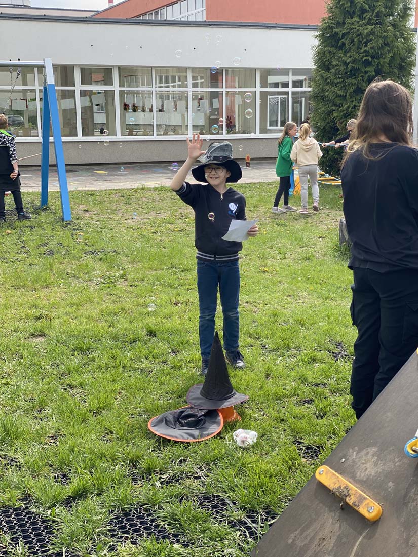 Páteční odpoledne bylo u nás v družině kouzelně veselé. Velké i malé čarodějnice a kouzelníci se slétli na svých košťatech na školní zahradě, abychom společně oslavili „slet čarodějnic“. K zábavnému odpoledni patřilo plnění čarodějnických disciplín: Lovení potvor ve slizu, skládání zaklínadel, let na koštěti, skok přes oheň, luštění v magickém oku, sběr kouzelných hub, hod ohnivou koulí, aj. Na závěr si každý vylovil odměnu v čarodějnickém kotlíku a dostal účastnickou medaili. Na soutěžích se podílela děvčata ze školního klubu, patří jim velký dík. Krásně se postarala o své mladší spolužáky. Jsme velice rádi, že po různých opatřeních minulých let, můžeme opět vidět děti společně a šťastné ?