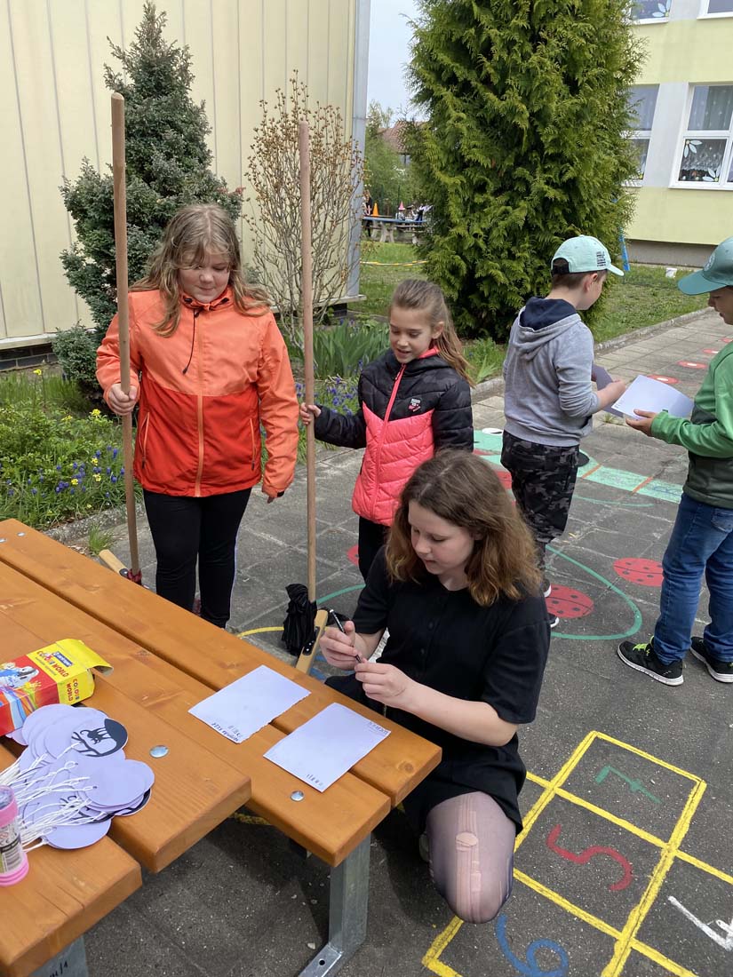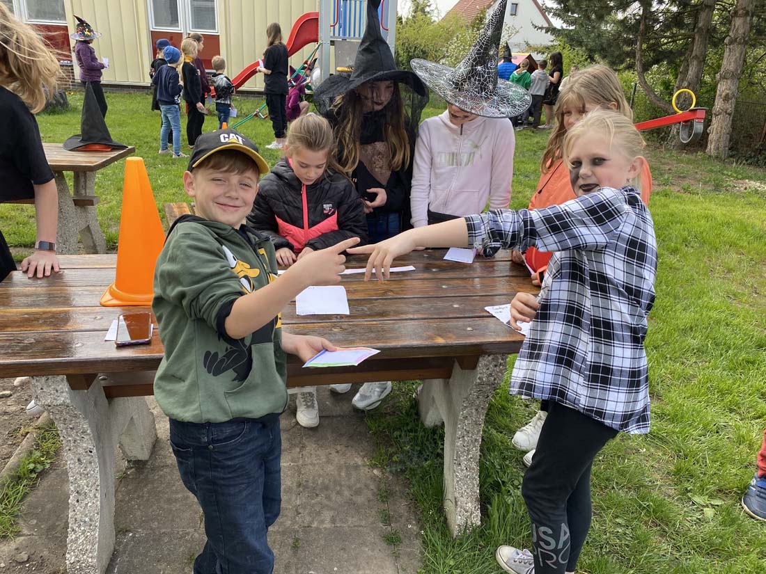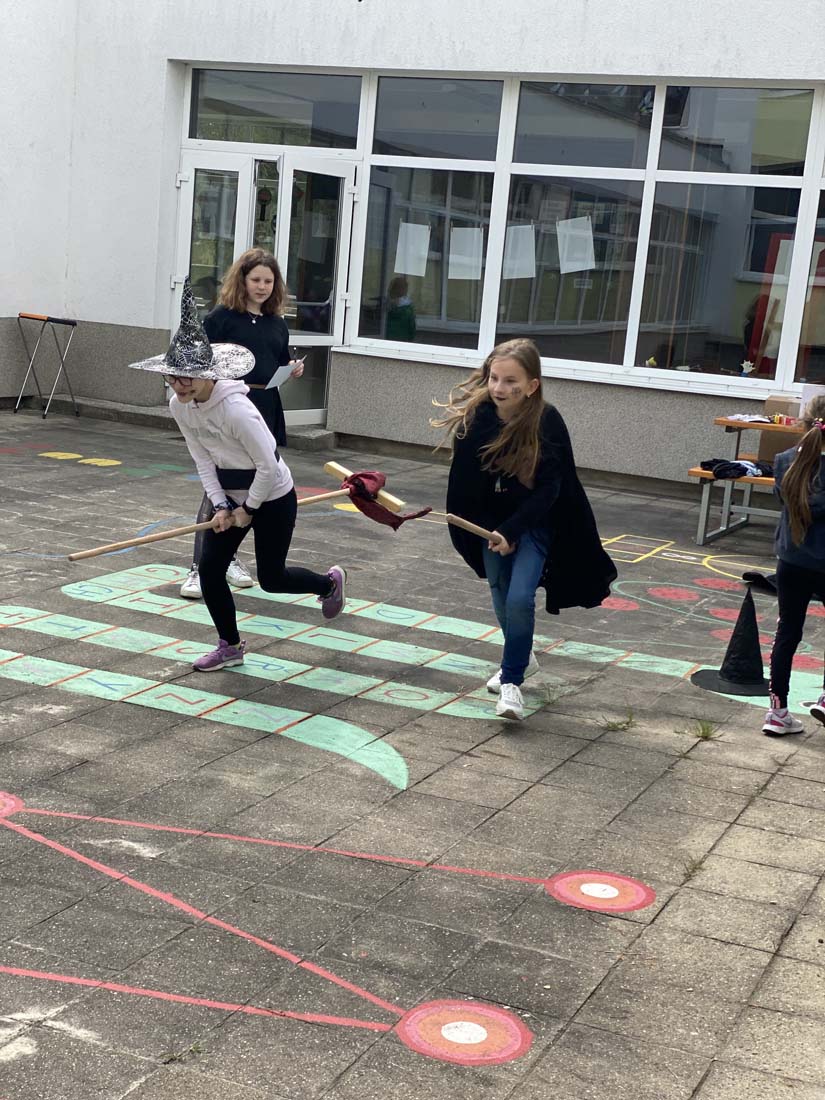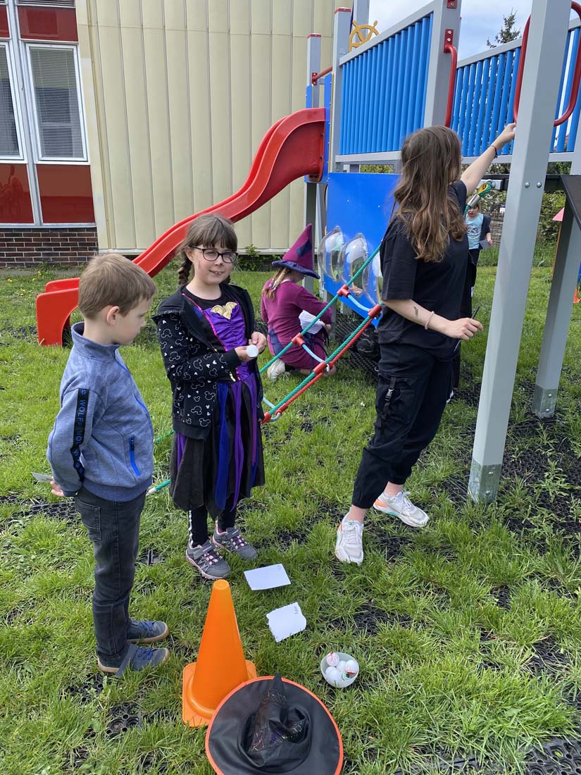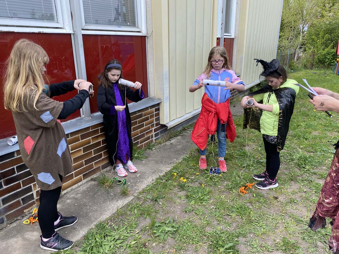 Páteční odpoledne bylo u nás v družině kouzelně veselé. Velké i malé čarodějnice a kouzelníci se slétli na svých košťatech na školní zahradě, abychom společně oslavili „slet čarodějnic“. K zábavnému odpoledni patřilo plnění čarodějnických disciplín: Lovení potvor ve slizu, skládání zaklínadel, let na koštěti, skok přes oheň, luštění v magickém oku, sběr kouzelných hub, hod ohnivou koulí, aj. Na závěr si každý vylovil odměnu v čarodějnickém kotlíku a dostal účastnickou medaili. Na soutěžích se podílela děvčata ze školního klubu, patří jim velký dík. Krásně se postarala o své mladší spolužáky. Jsme velice rádi, že po různých opatřeních minulých let, můžeme opět vidět děti společně a šťastné ?