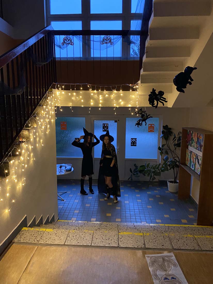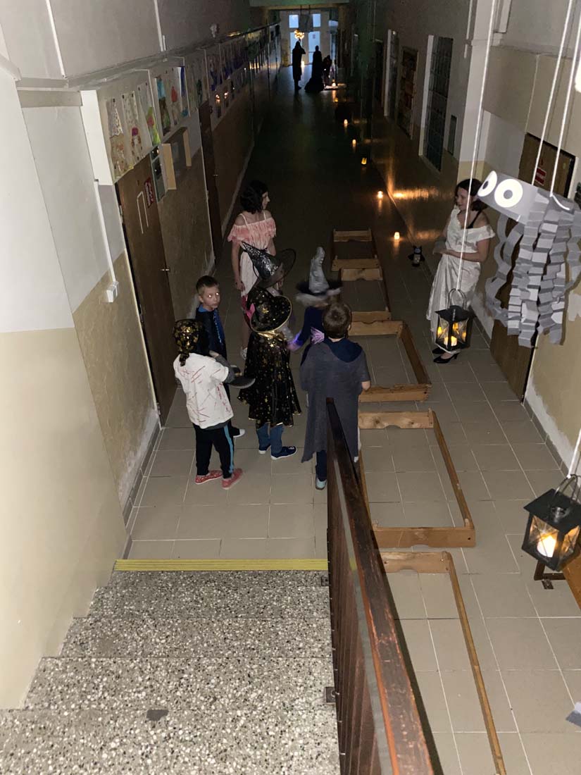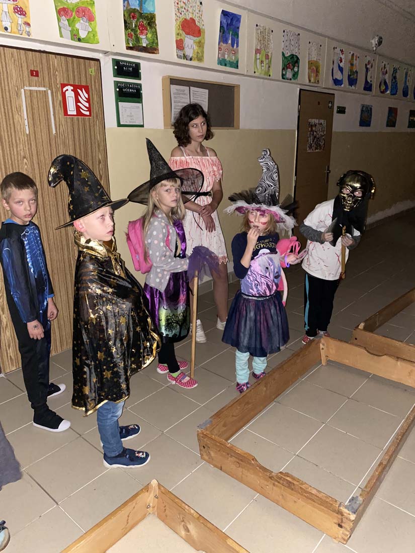 Jaká je škola večer? …trochu strašidelná, když se na chodbách ukrývá Bludička, Upír, Vodník, Bílá paní, Duchové, Vlkodlak a Čarodějnice.