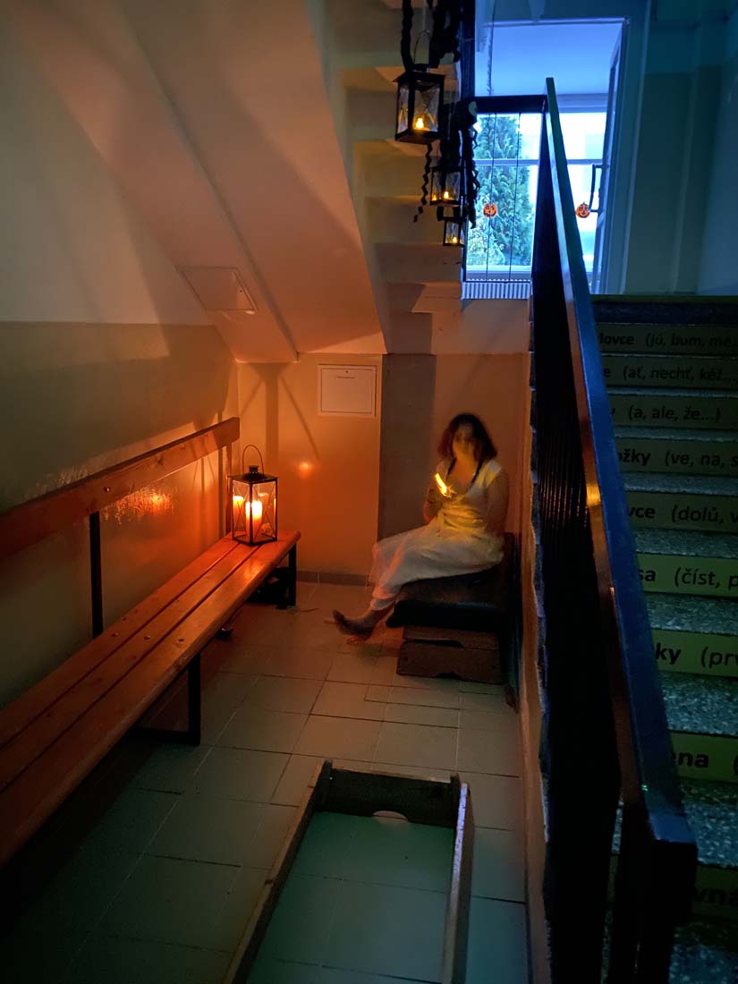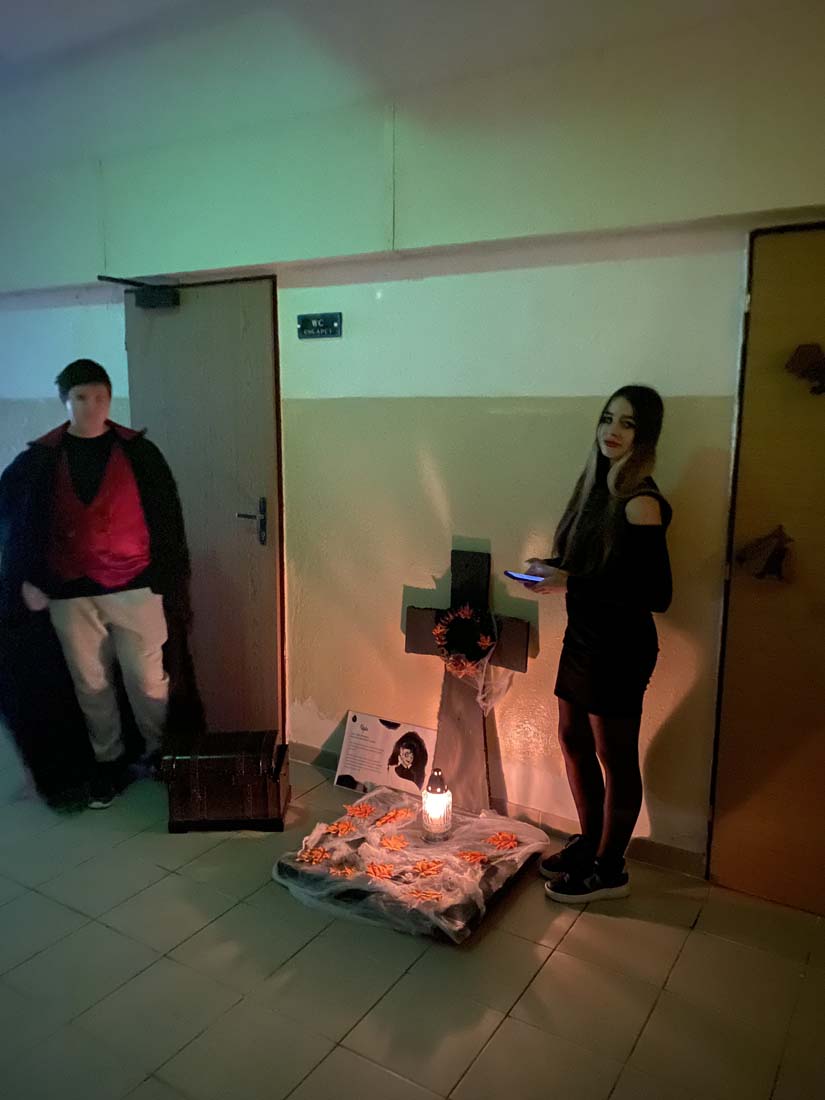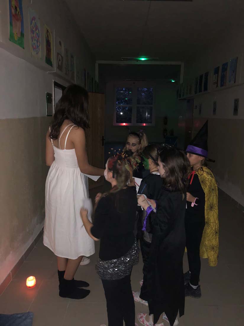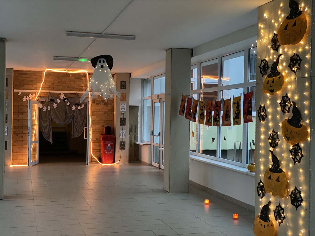 Jaká je škola večer? …trochu strašidelná, když se na chodbách ukrývá Bludička, Upír, Vodník, Bílá paní, Duchové, Vlkodlak a Čarodějnice.