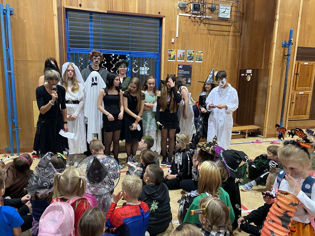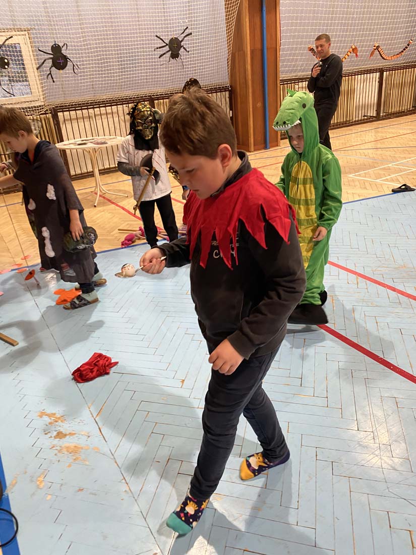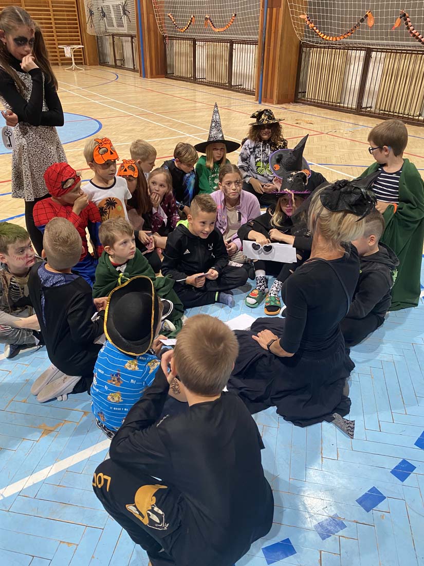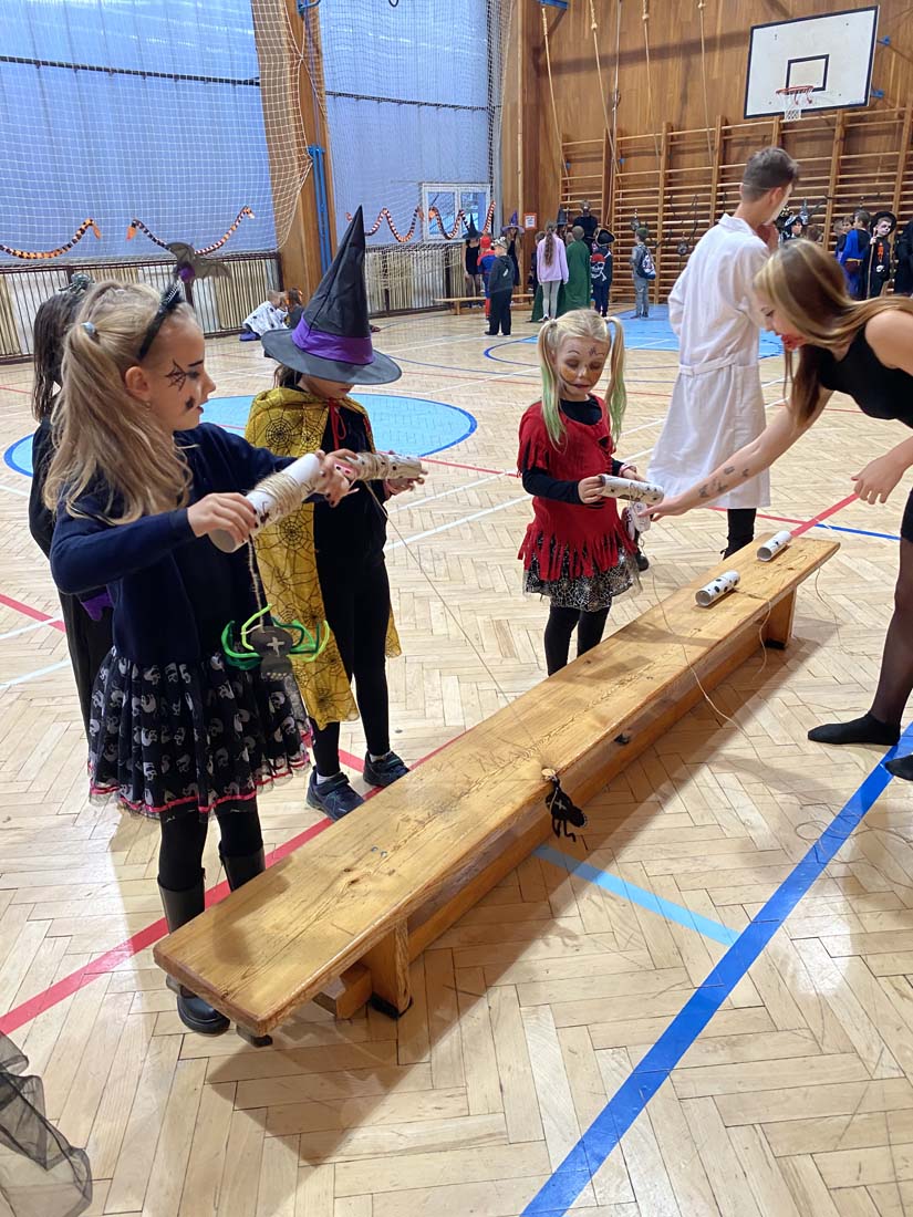 V tělocvičně jsme si změřili síly v soutěžích, vyrobili Halloweenský náramek a vyfotili se ve foto koutku.