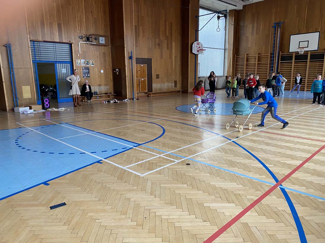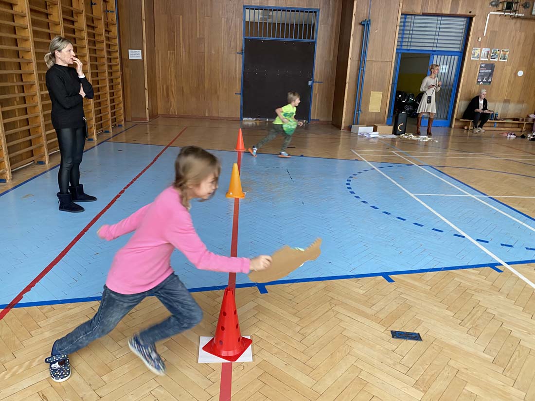 Soutěžili jsme v disciplínách: běh za kometou, vozili jsme Ježíška, skládali kapří šupinky, běhali s korunkou na hlavě, skládali vánoční stromeček a společně jsme si zazpívali koledu „My Tři králové…“