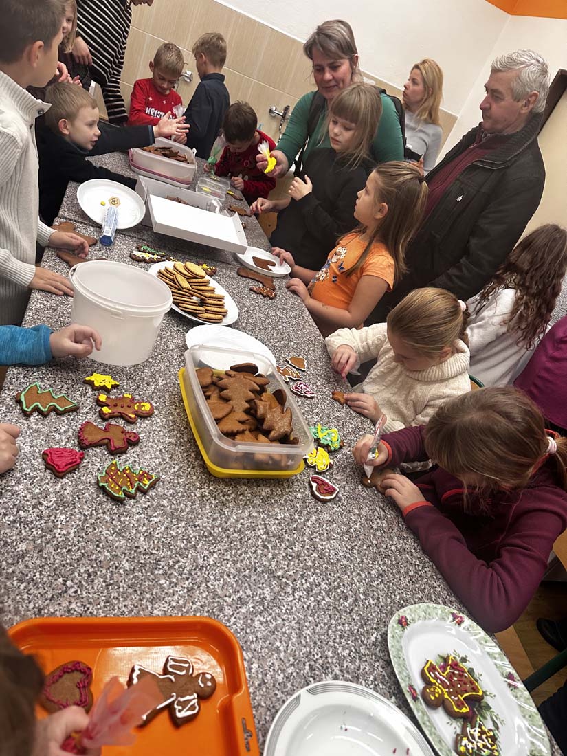 Školní kuchyňku nám provoněl vánoční čaj, svařák a perníčky, které jsme společně nazdobili a odnesli domů nebo hned zbaštili.