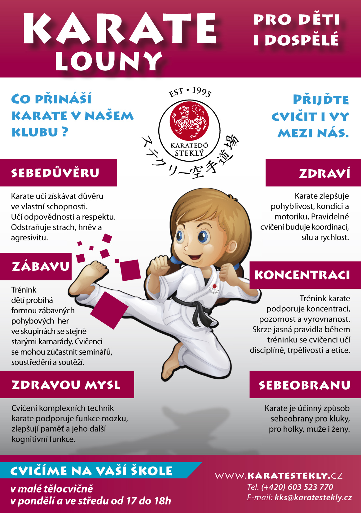 Na naší škole nově cvičíme karate stylu Shotokan podle Japonské asociace karate JKA. Kdo má zájem, může se přidat, trénujeme v malé tělocvičně.