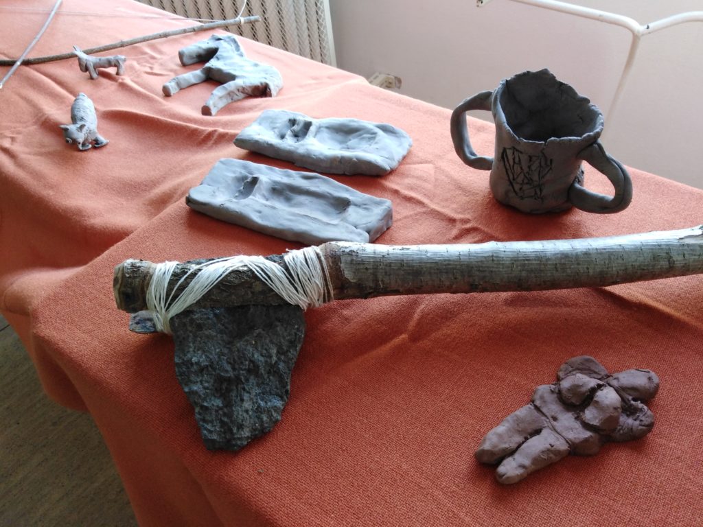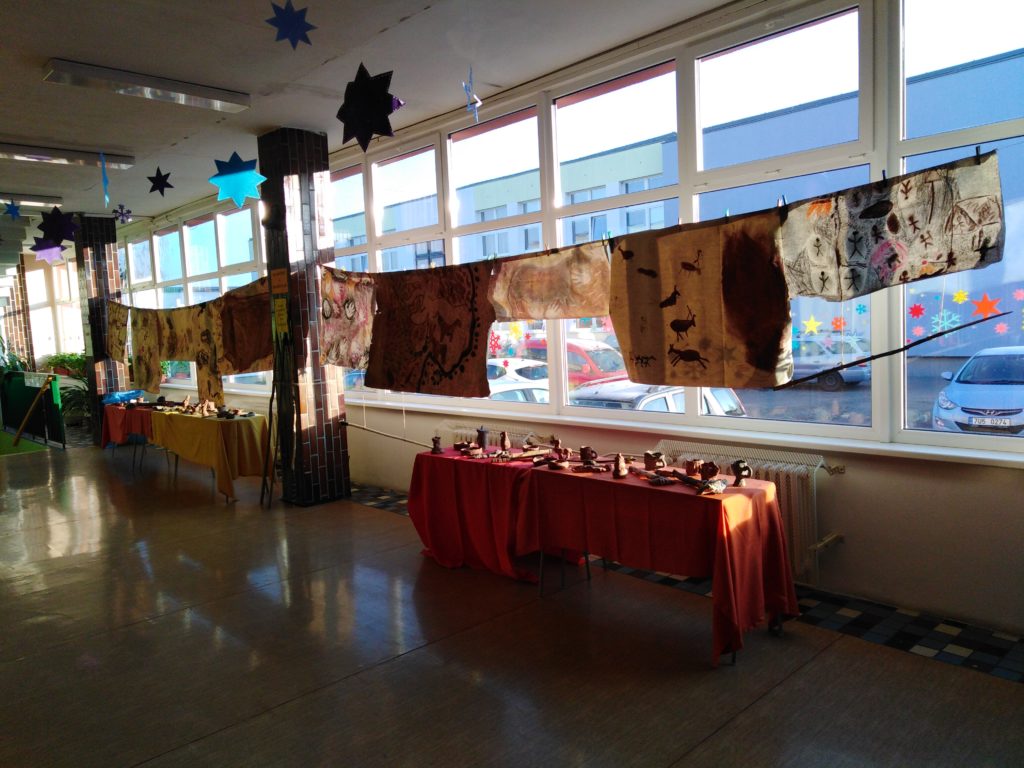 Své poznatky si děti mohly prakticky vyzkoušet v hodinách výtvarné výchovy, kdy z keramické hlíny modelovaly sošky, ozdoby a nádoby podle pravěkých vzorů. Napodobovaly také dávné umělce, kteří zanechali svá díla na stěnách jeskyní po celém světě. Děti pomocí uhlů a rudek ztvárnily výjevy z jeskynních maleb při skupinových pracích na balicí papíry.