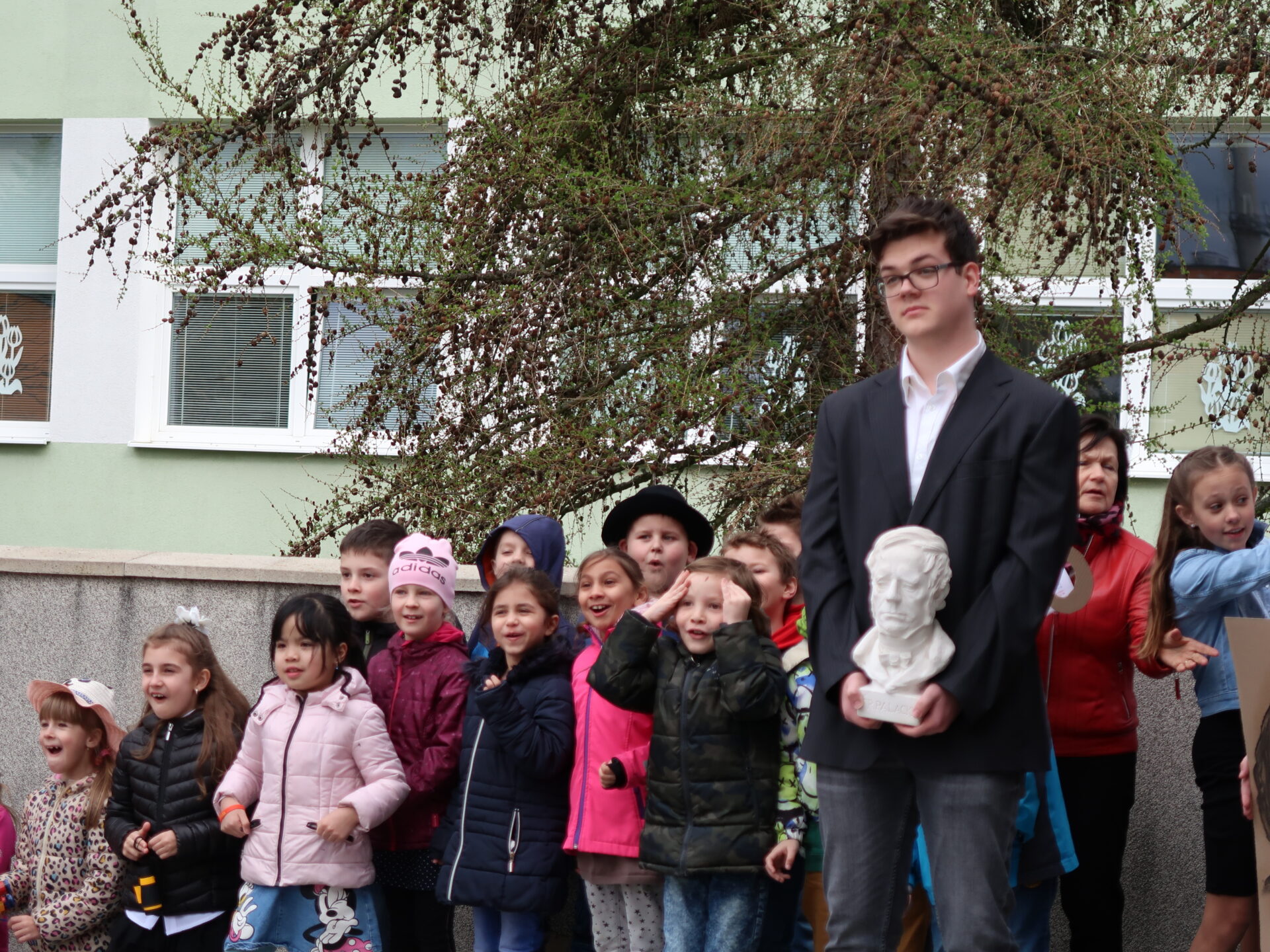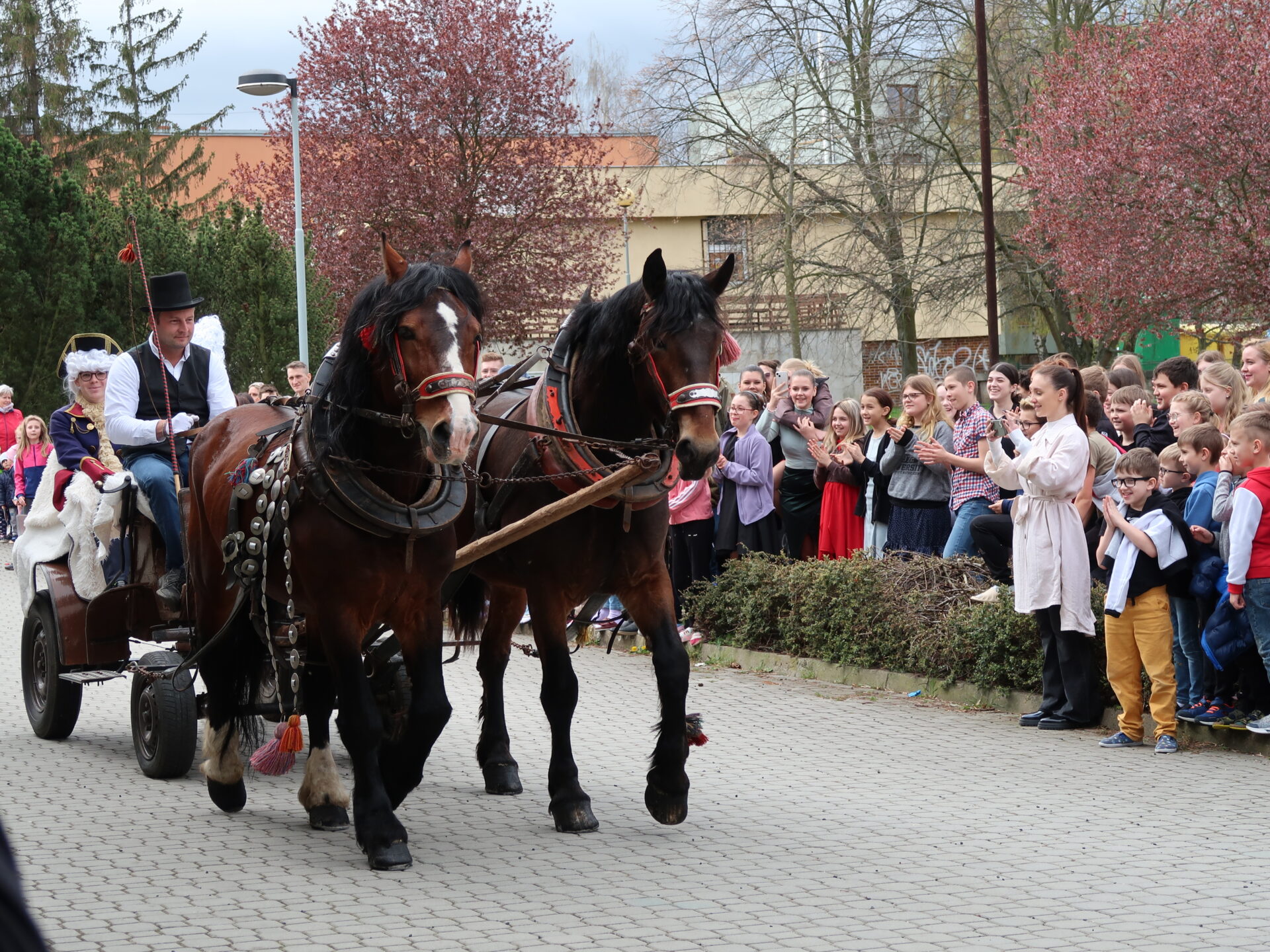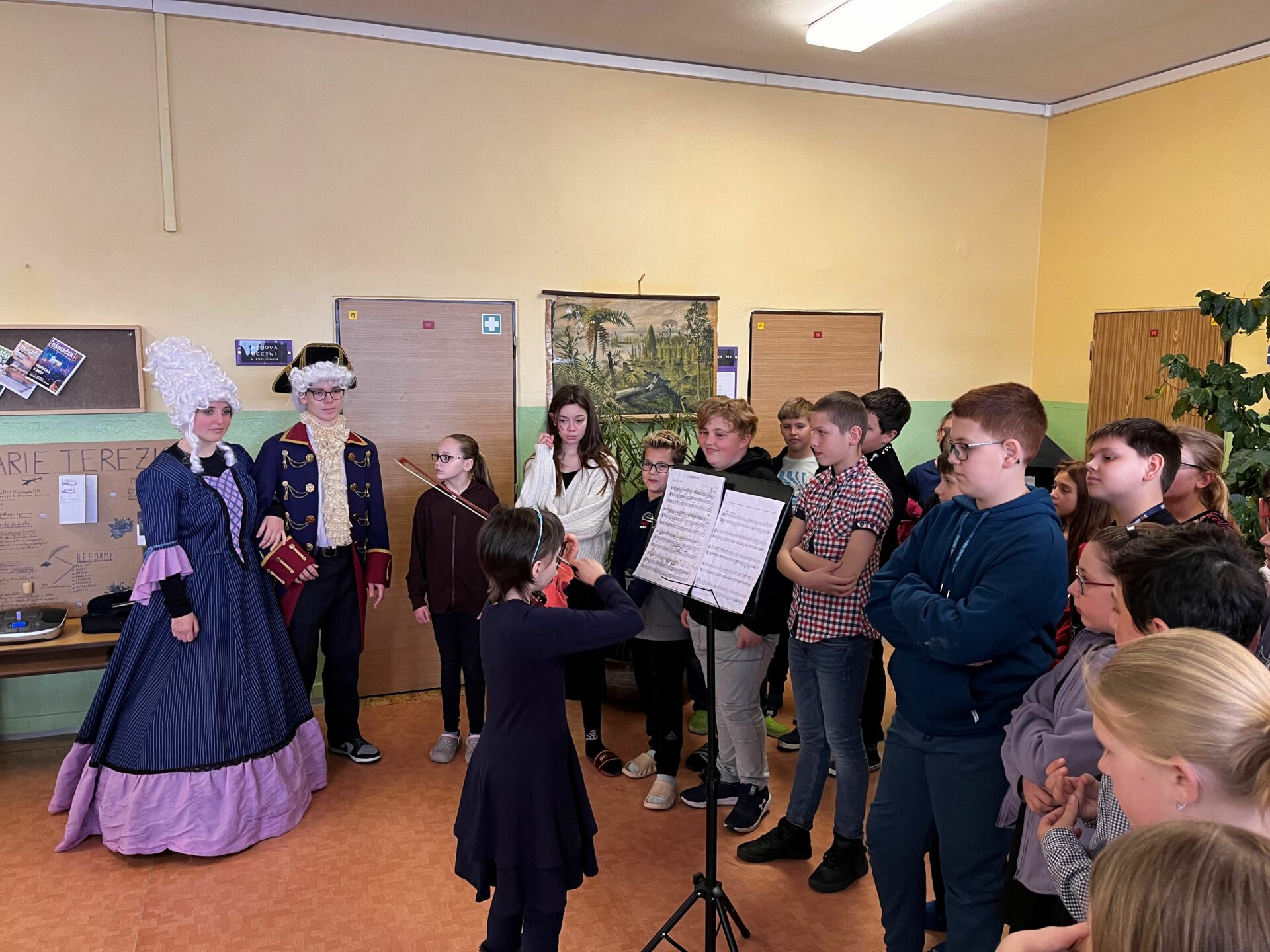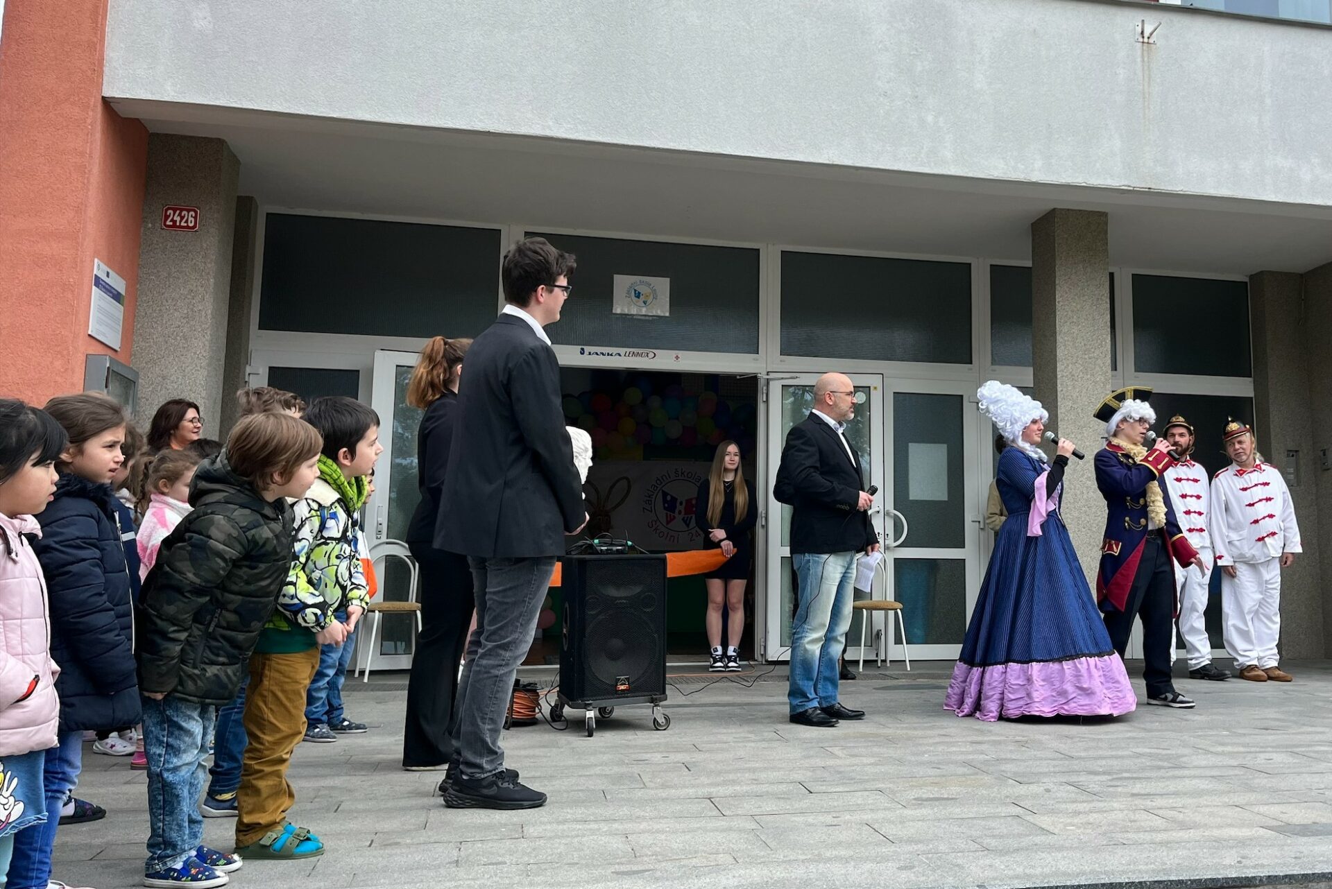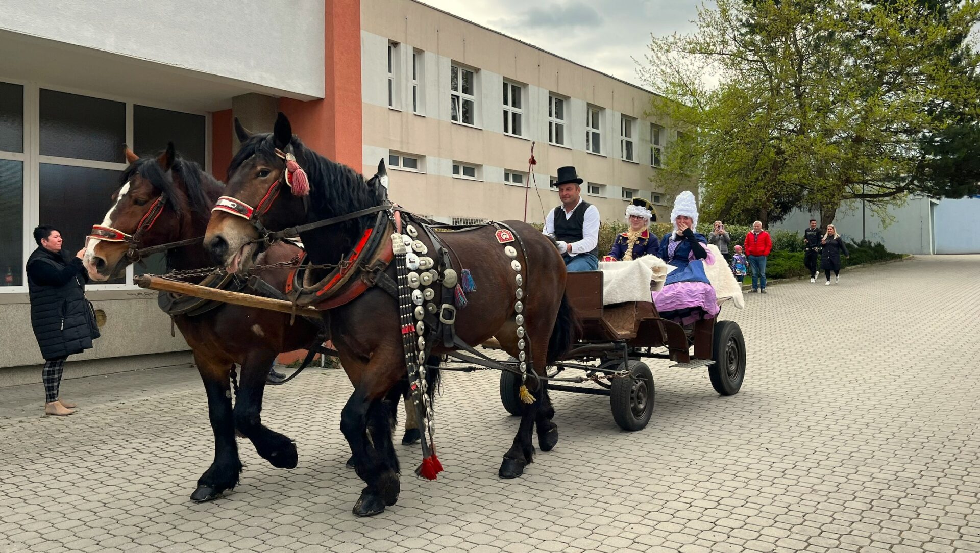 Nikdo z žáků do poslední chvíle netušil, že vzácná návštěva přijede tradičně v kočáru taženém koňmi. A když k nebi vyletělo hejno poštovních holubů se vzkazem do Vídně, bylo nadšení úplné. Nechyběla slavnostní fanfára, čestná stráž hasičů v dobových uniformách a přední velikáni českého národa: J. A. Komenský, Fr. Palacký a největší z Čechů – Jára Cimrman, kteří společně s císařovnou výstavu zahájili.