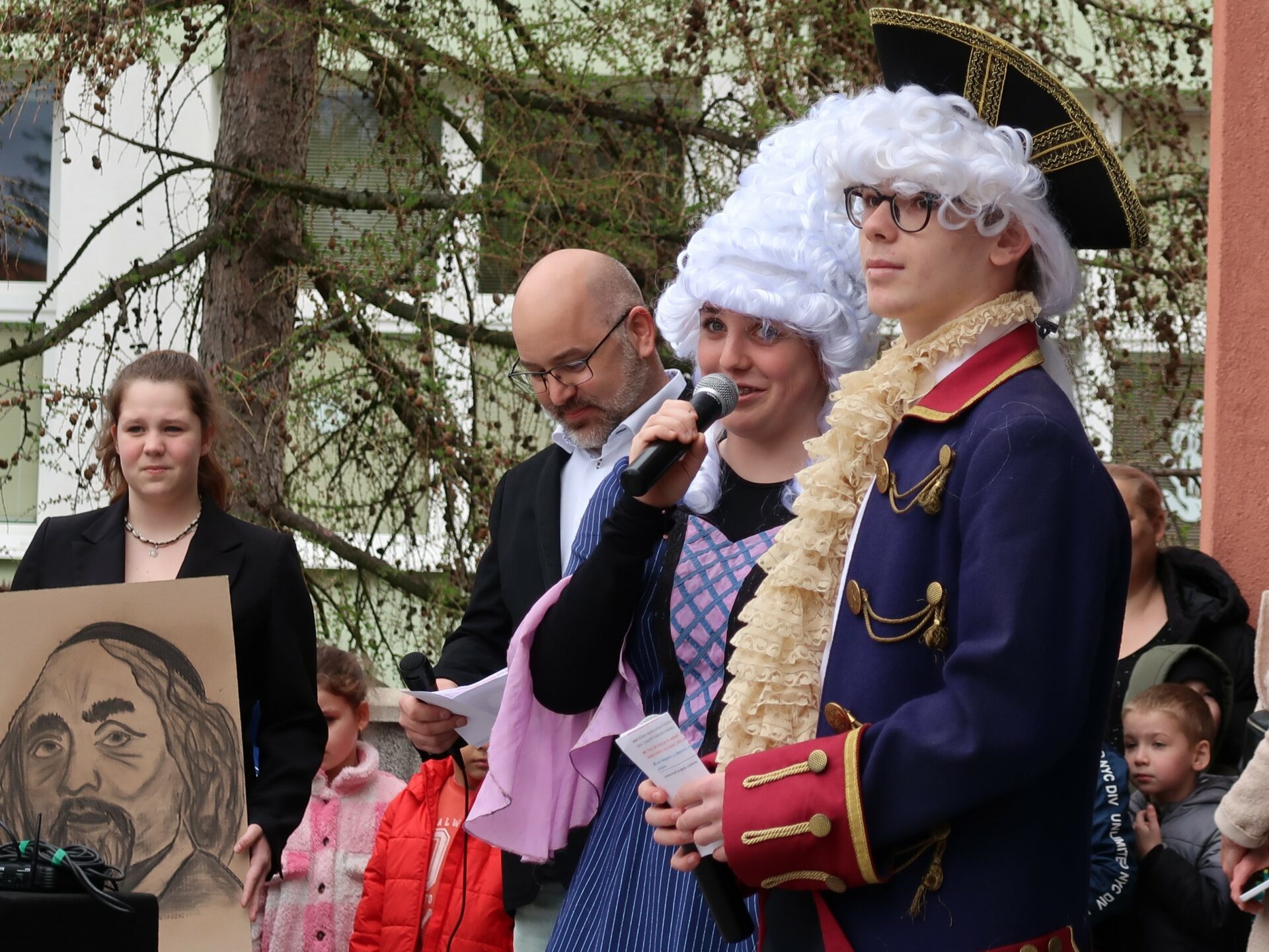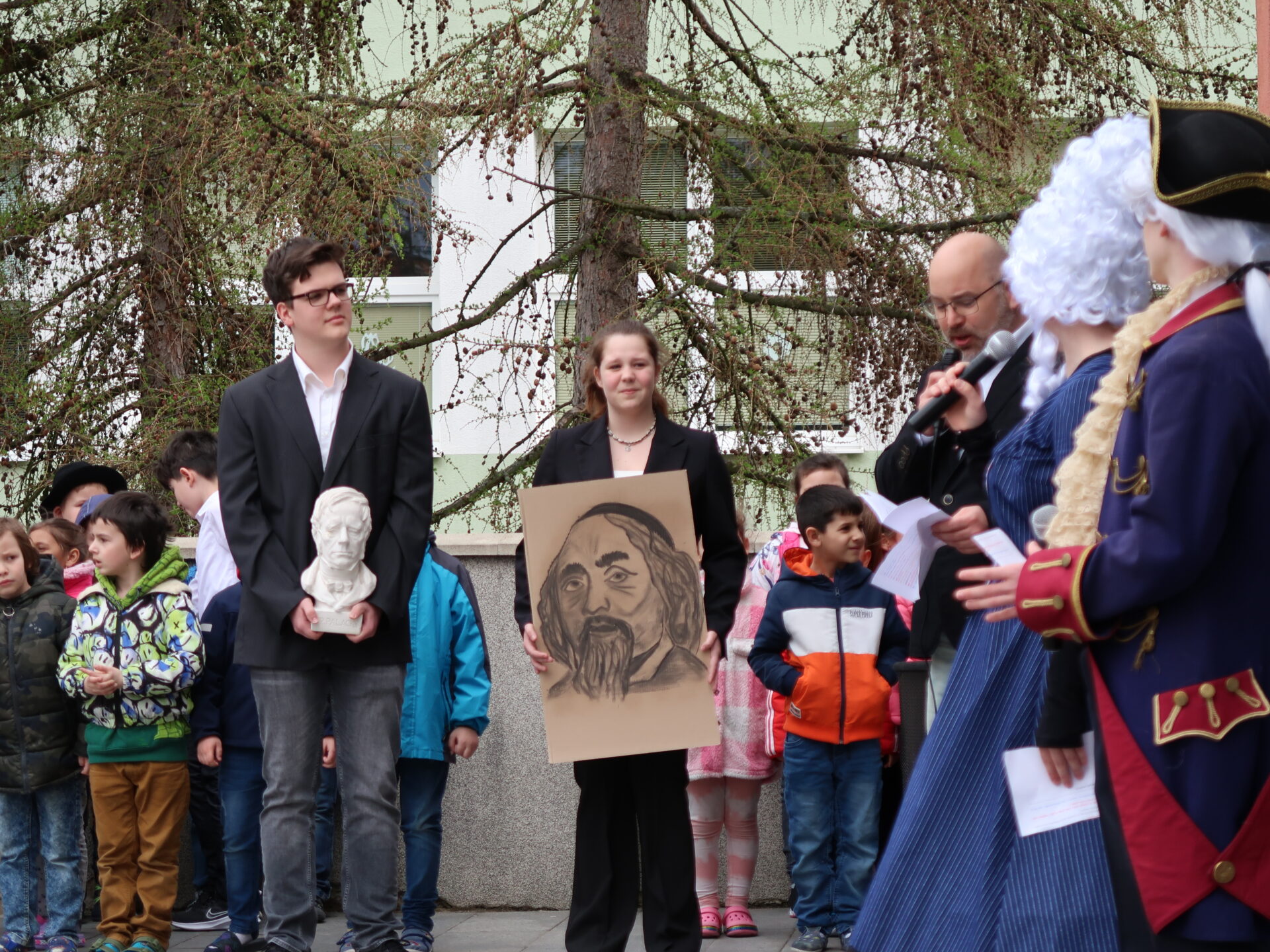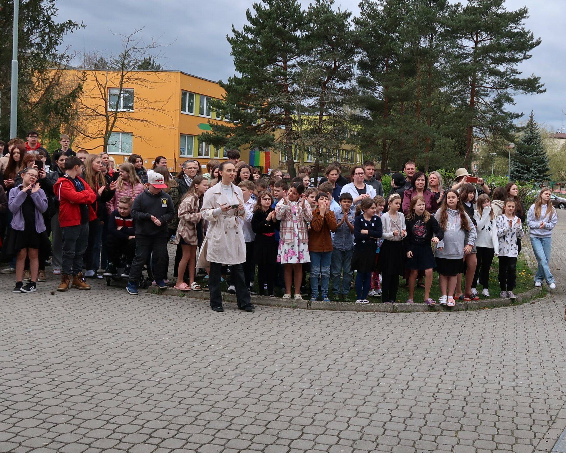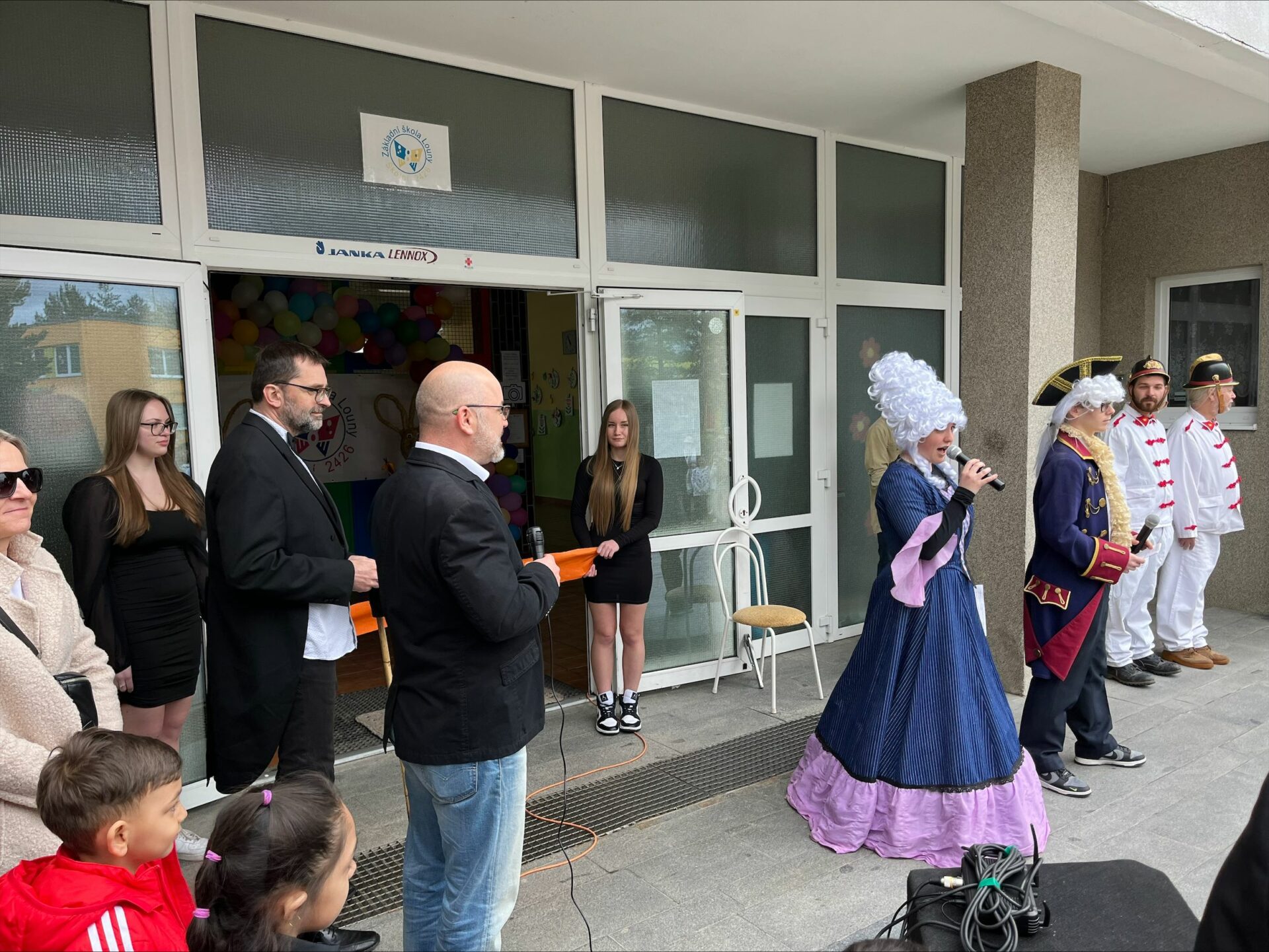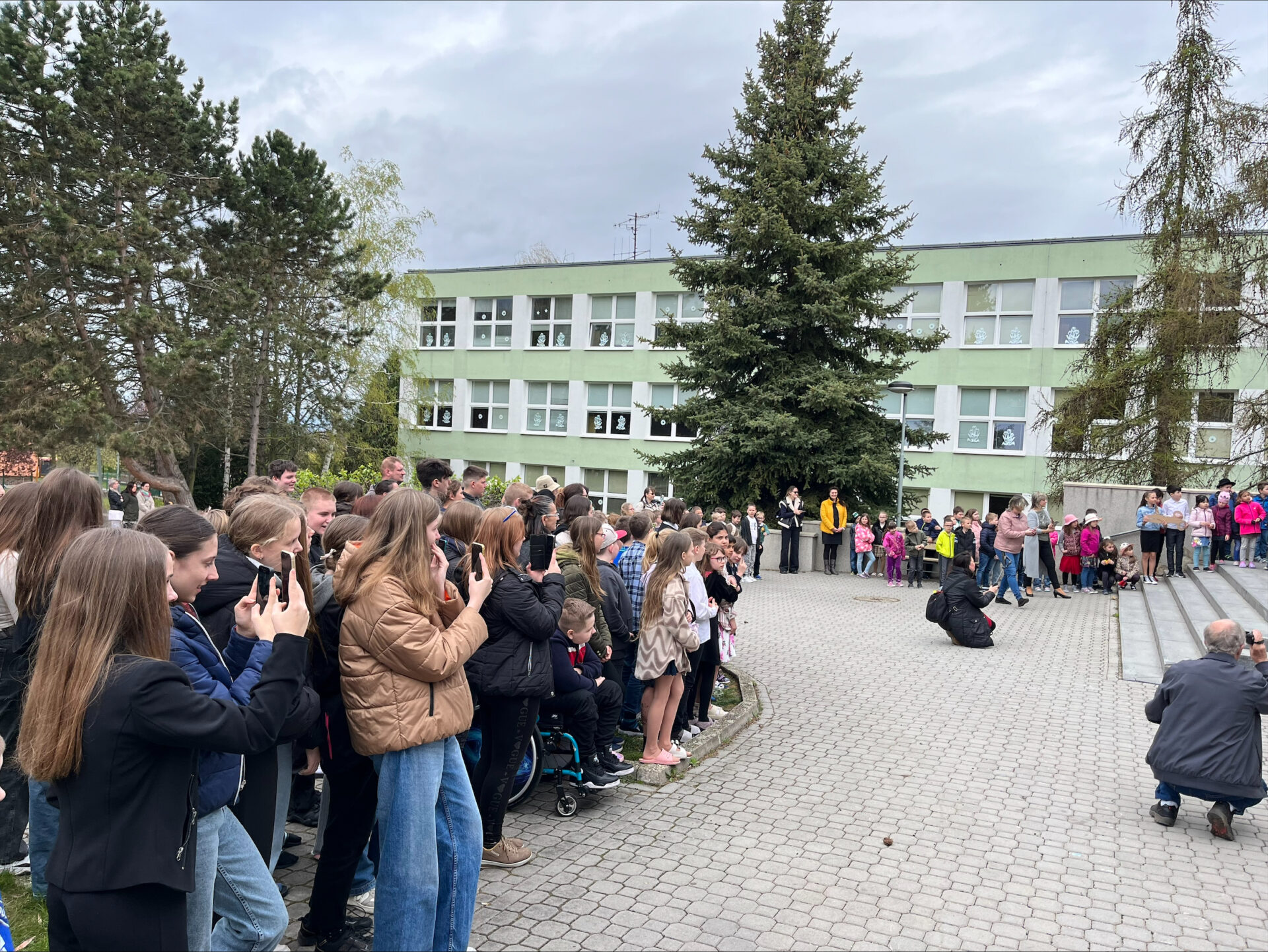 Nikdo z žáků do poslední chvíle netušil, že vzácná návštěva přijede tradičně v kočáru taženém koňmi. A když k nebi vyletělo hejno poštovních holubů se vzkazem do Vídně, bylo nadšení úplné. Nechyběla slavnostní fanfára, čestná stráž hasičů v dobových uniformách a přední velikáni českého národa: J. A. Komenský, Fr. Palacký a největší z Čechů – Jára Cimrman, kteří společně s císařovnou výstavu zahájili.