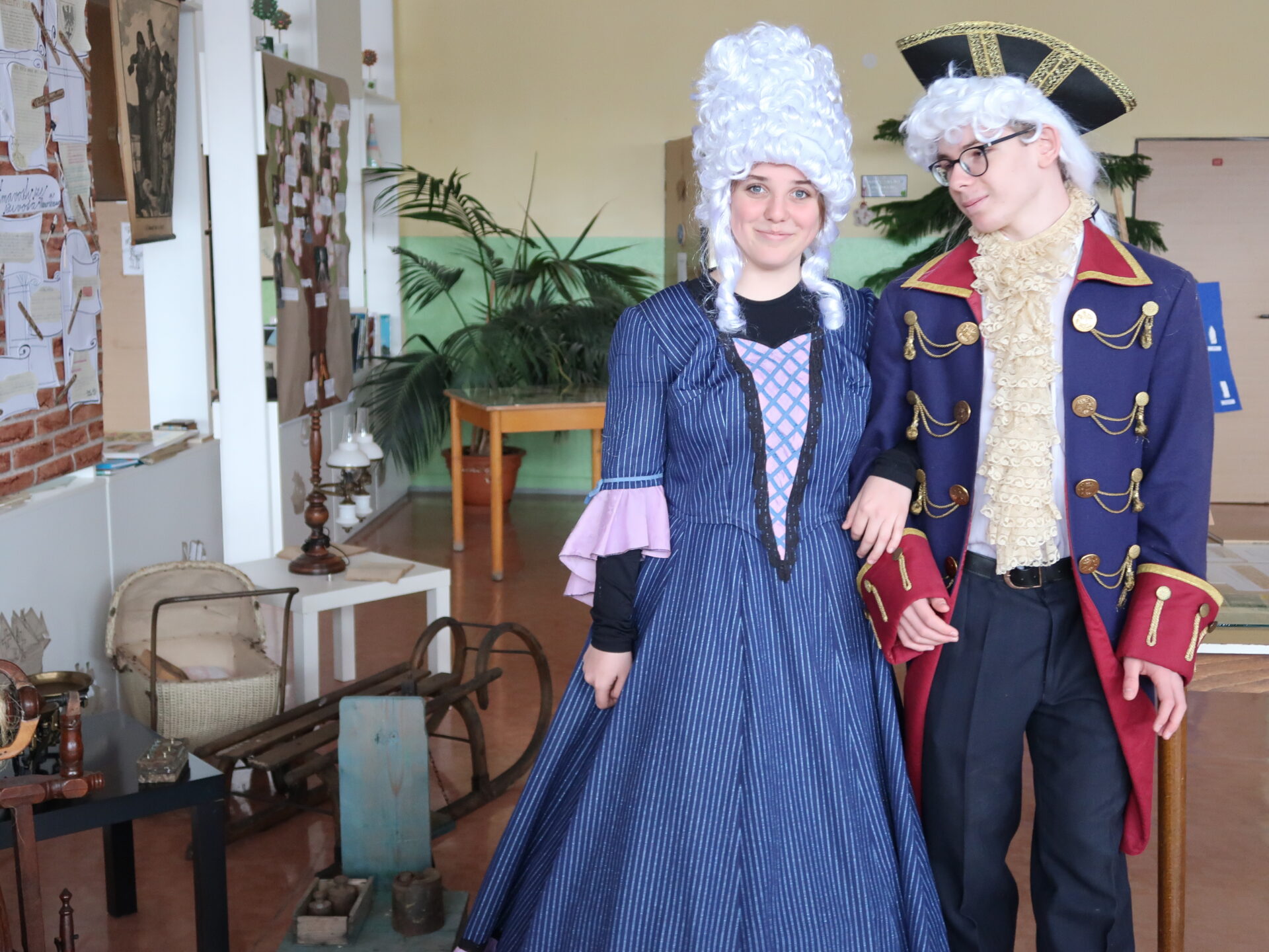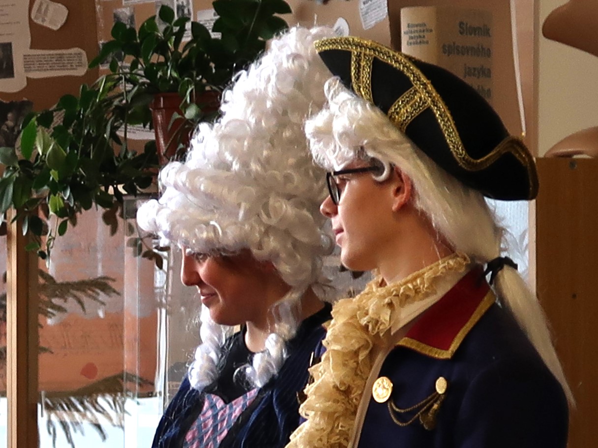 U příležitosti slavnostního zahájení školní výstavy navštívila naši školu Její excelence císařovna Marie Terezie se svým synem Josefem II.