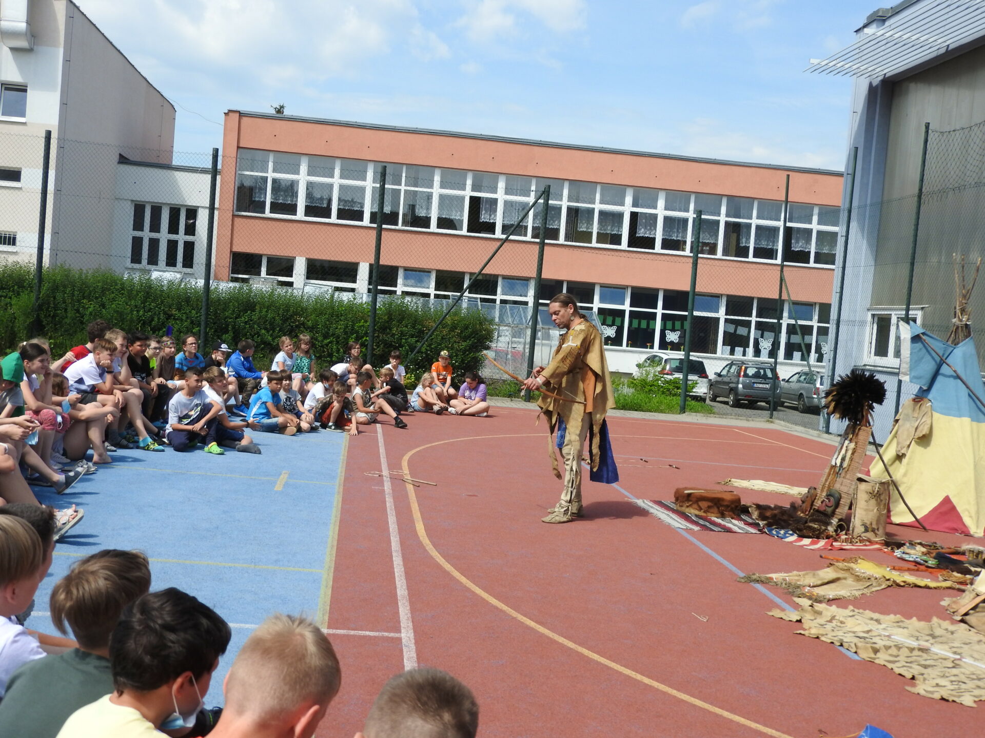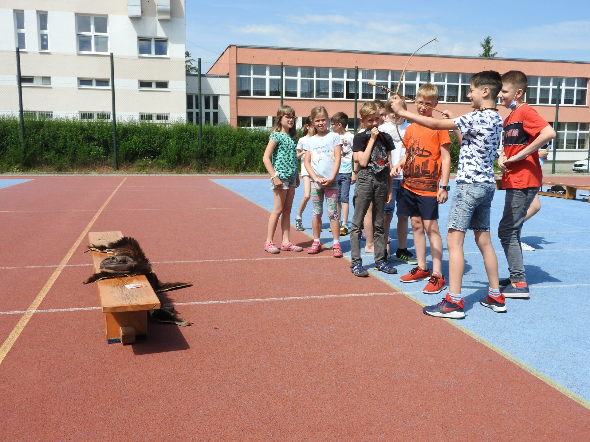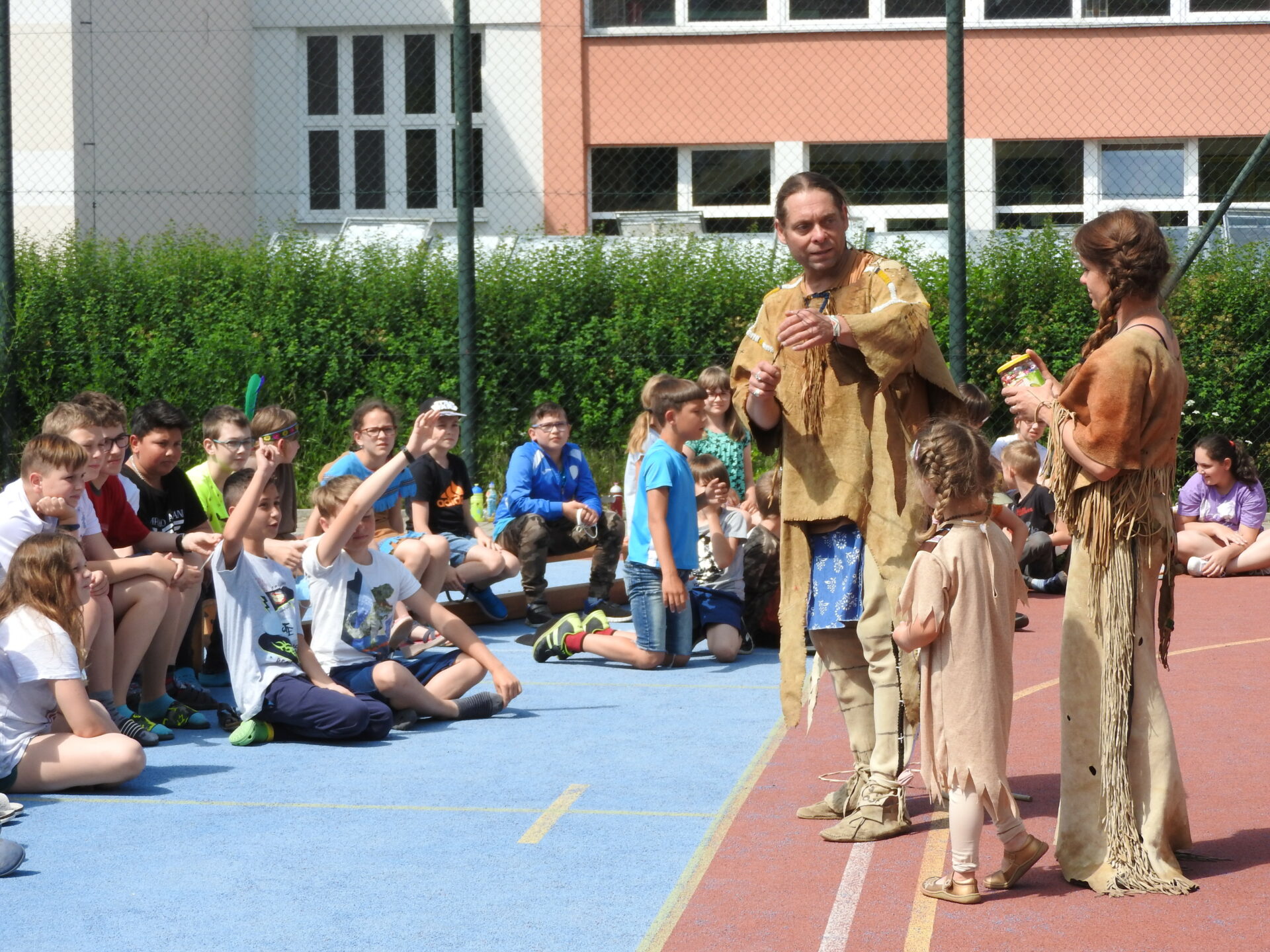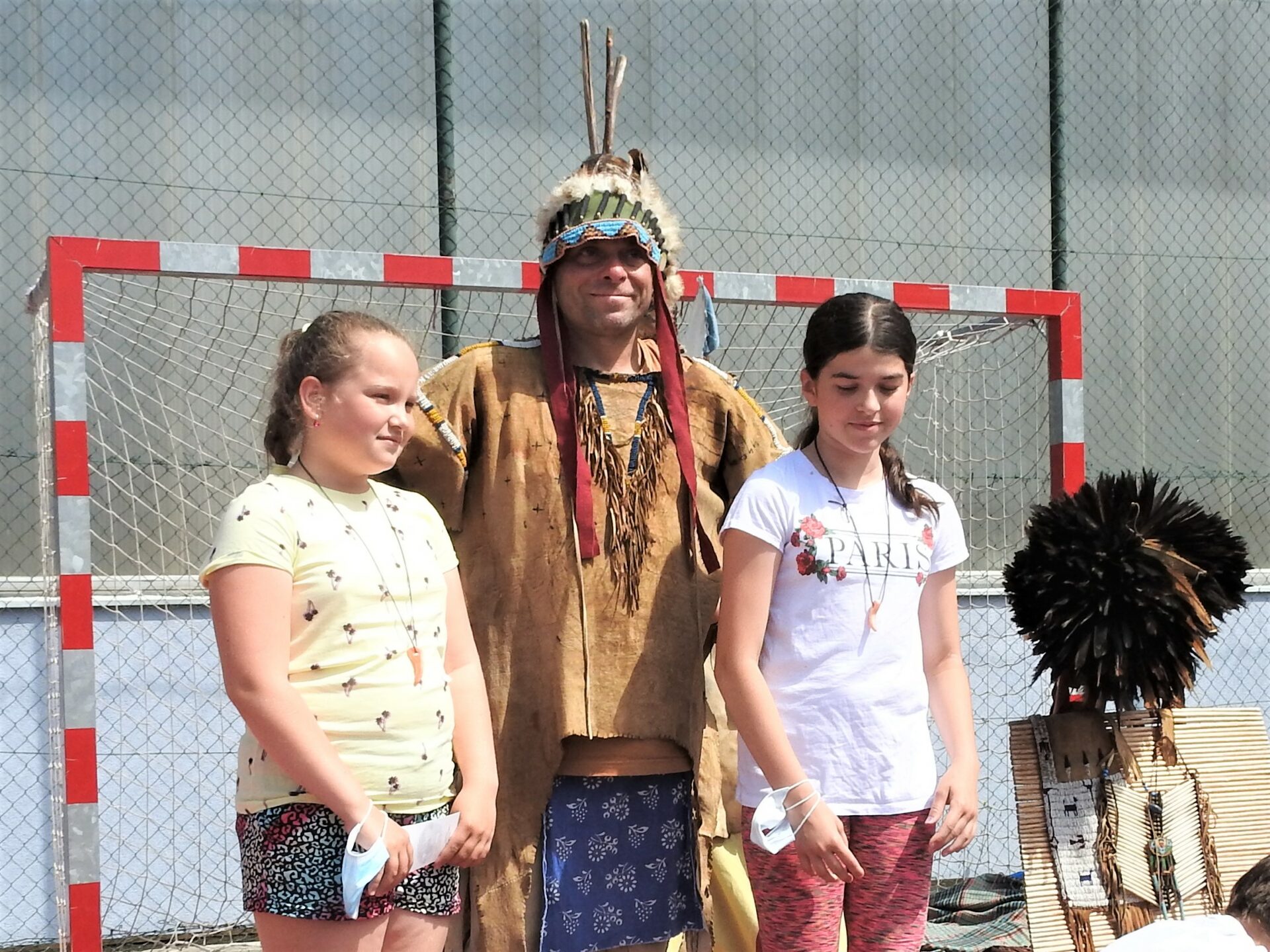 Dnešní den mezi nás zavítala indiánská rodinka až z daleké vesničky jménem Rosehill, ze světa prérijních indiánů. Její členové nás seznámili, jak žili původní obyvatelé Severní Ameriky, zejména prérijní idiáni z kmene Siouxů, Šajenů, Arapahů… Dozvěděli jsme se mnoho zajímavého z jejich života, mohli jsme si zastřílet z luku, poslechli si indiánskou hudbu, zahráli si různé hry a nakonec jsme si vyrobili náramek, náhrdelník nebo měšec z kůže na krk. Prožili jsme další prima den ve škole.