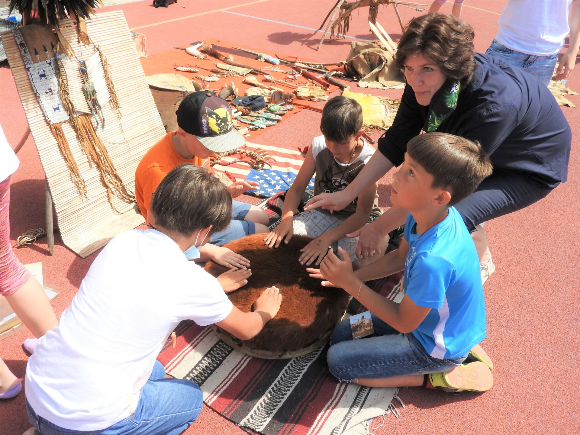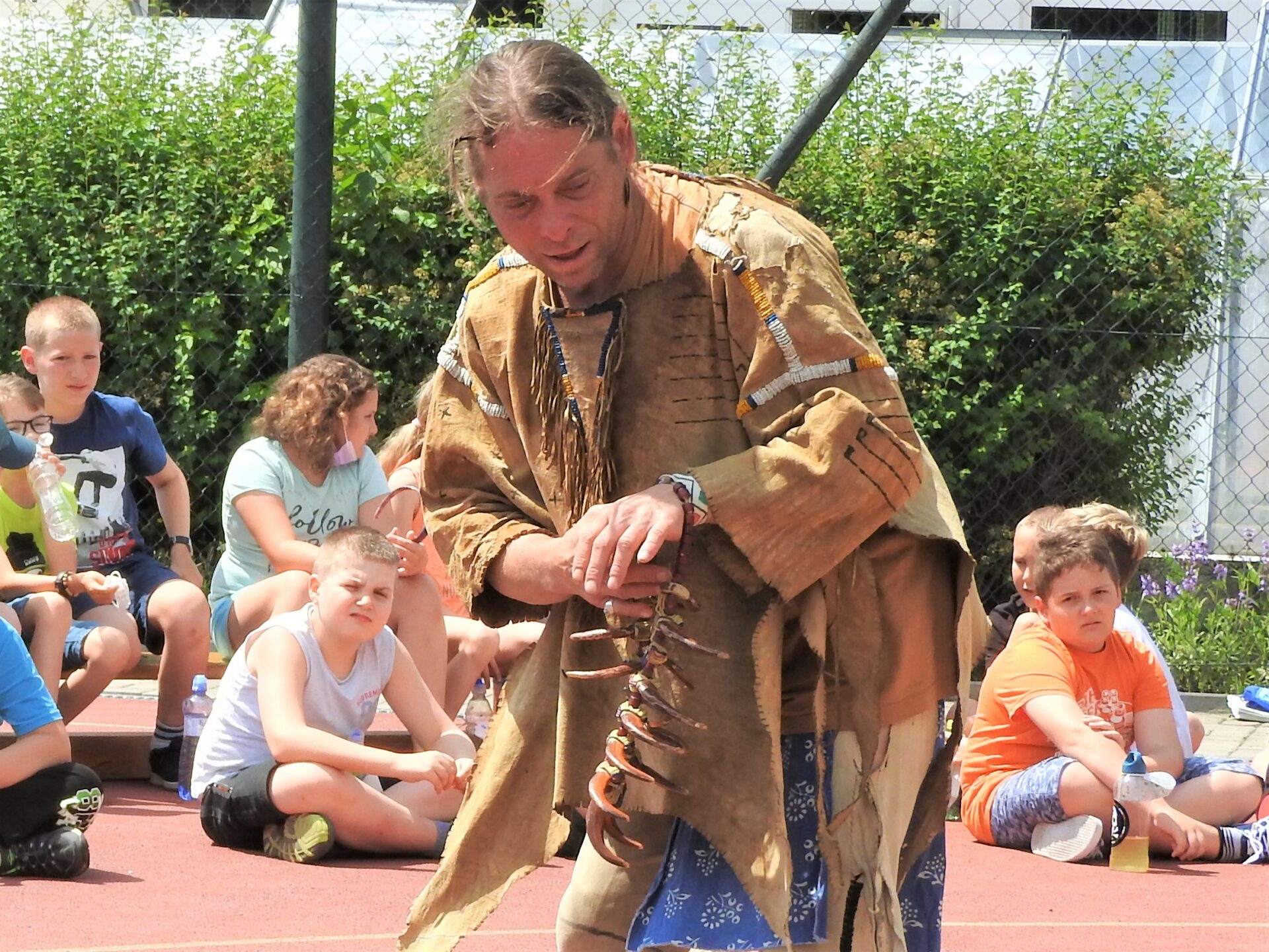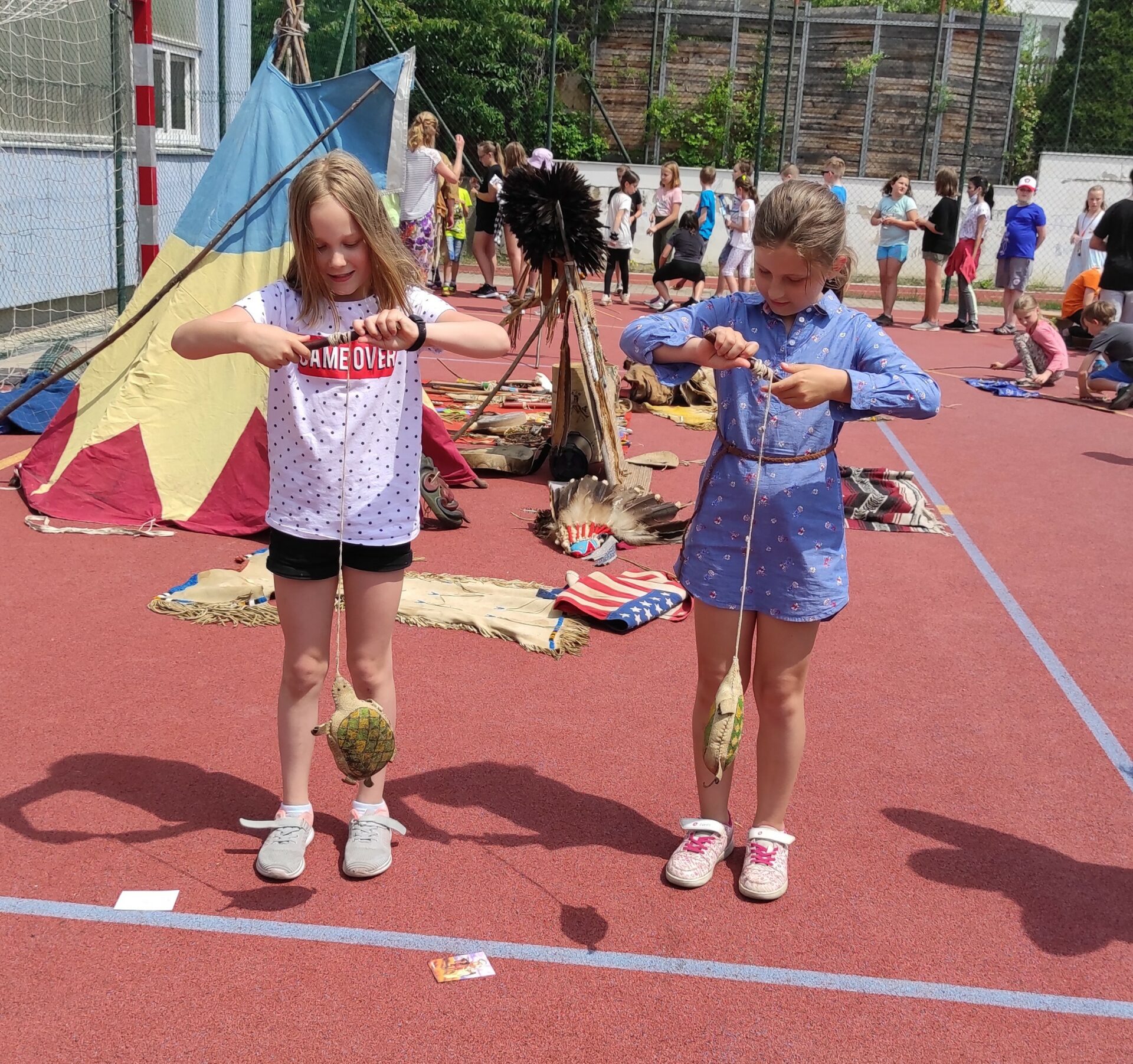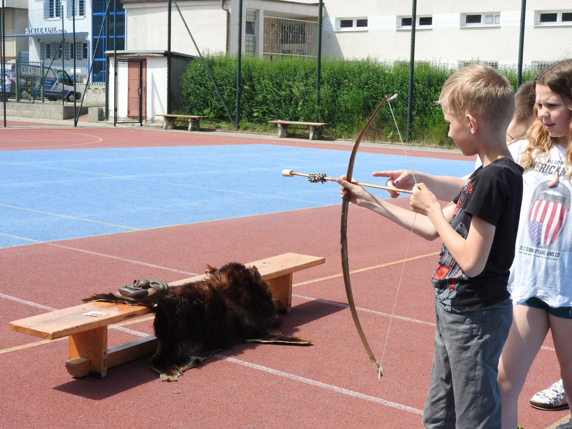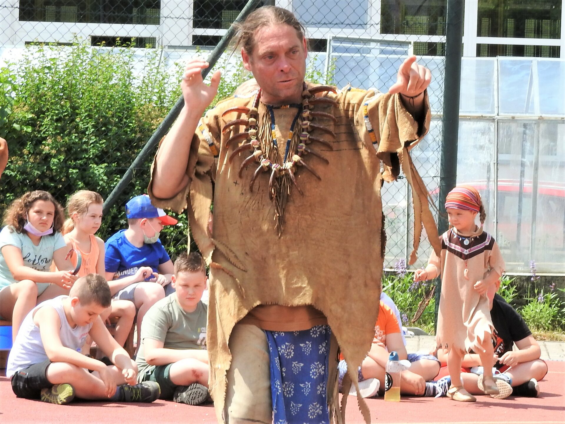 Dnešní den mezi nás zavítala indiánská rodinka až z daleké vesničky jménem Rosehill, ze světa prérijních indiánů. Její členové nás seznámili, jak žili původní obyvatelé Severní Ameriky, zejména prérijní idiáni z kmene Siouxů, Šajenů, Arapahů… Dozvěděli jsme se mnoho zajímavého z jejich života, mohli jsme si zastřílet z luku, poslechli si indiánskou hudbu, zahráli si různé hry a nakonec jsme si vyrobili náramek, náhrdelník nebo měšec z kůže na krk. Prožili jsme další prima den ve škole.