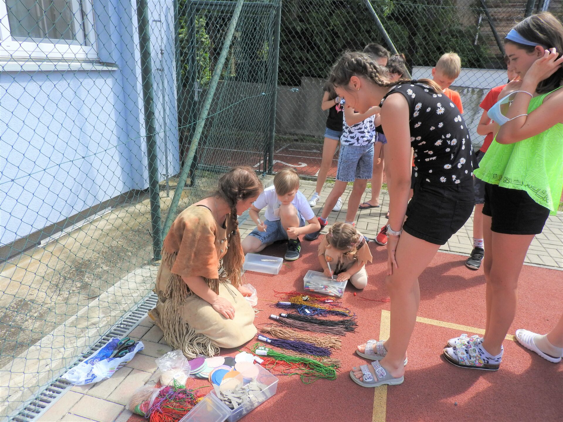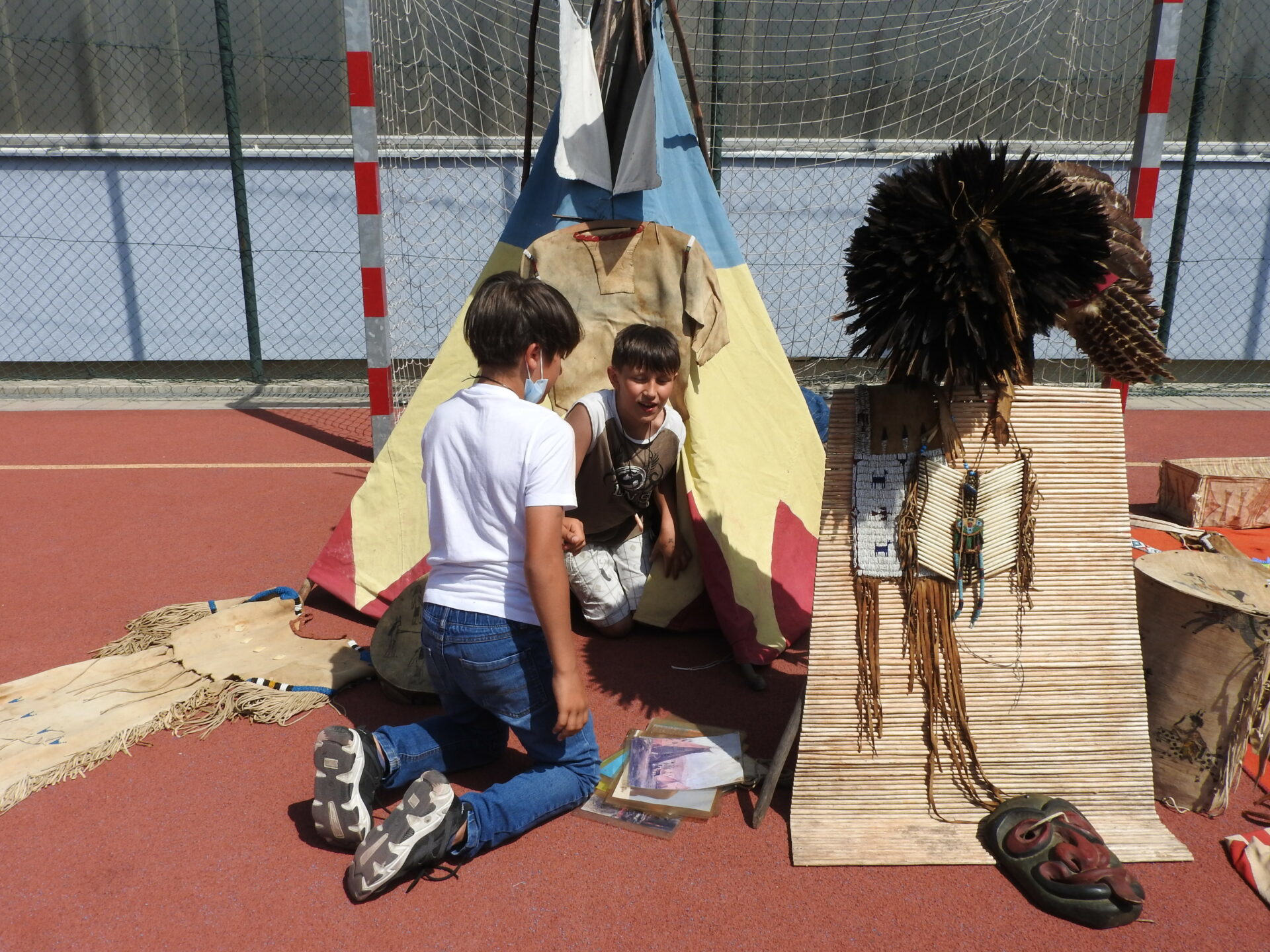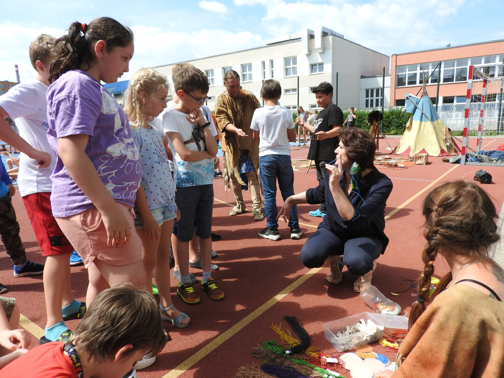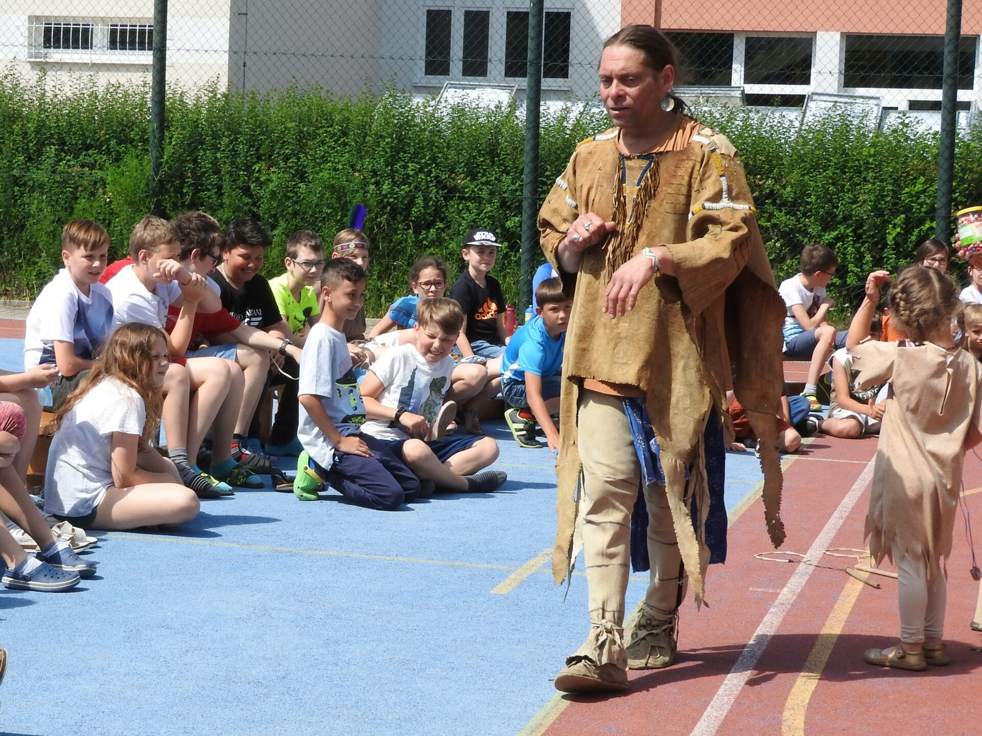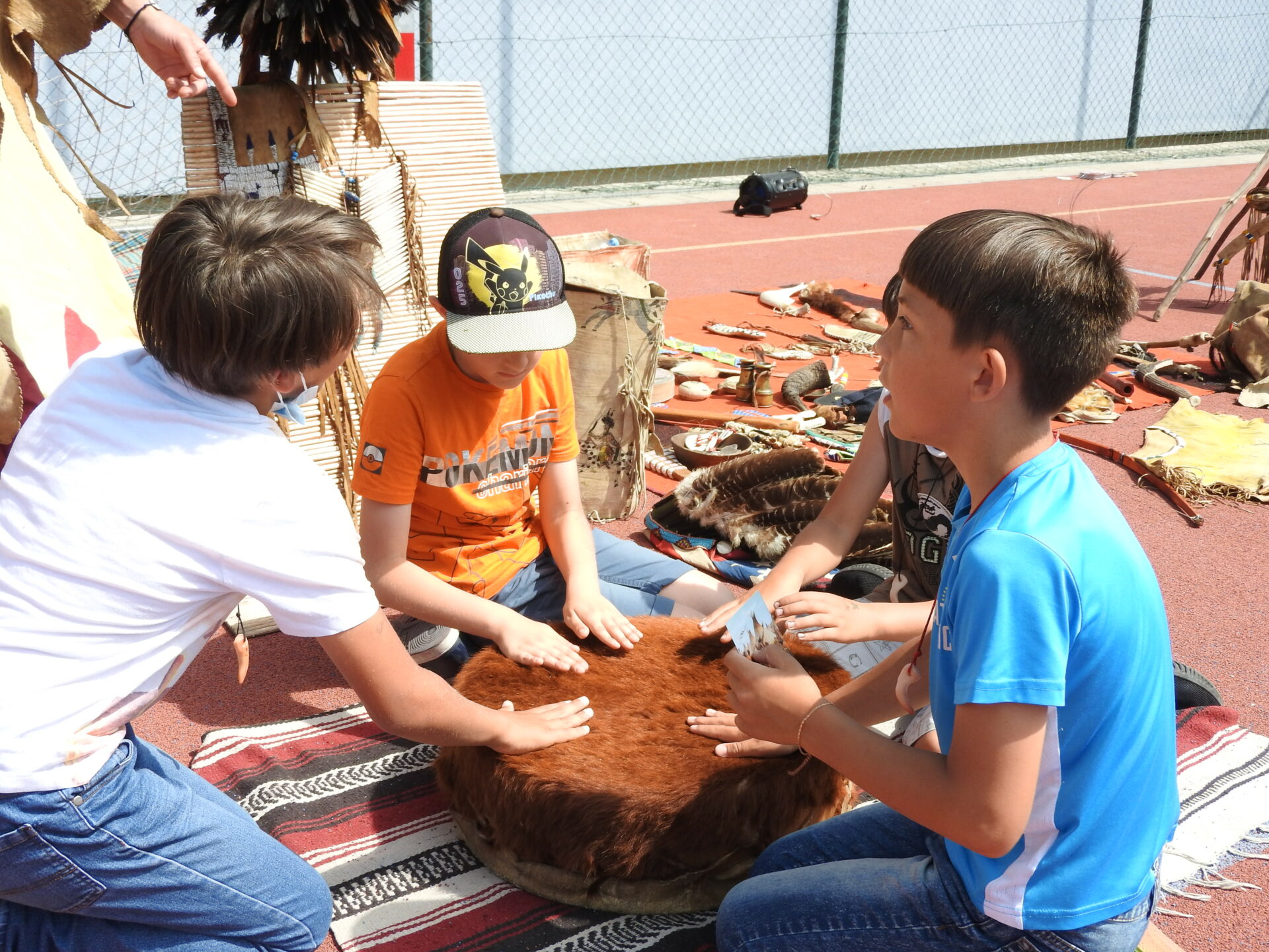 Dnešní den mezi nás zavítala indiánská rodinka až z daleké vesničky jménem Rosehill, ze světa prérijních indiánů. Její členové nás seznámili, jak žili původní obyvatelé Severní Ameriky, zejména prérijní idiáni z kmene Siouxů, Šajenů, Arapahů… Dozvěděli jsme se mnoho zajímavého z jejich života, mohli jsme si zastřílet z luku, poslechli si indiánskou hudbu, zahráli si různé hry a nakonec jsme si vyrobili náramek, náhrdelník nebo měšec z kůže na krk. Prožili jsme další prima den ve škole.