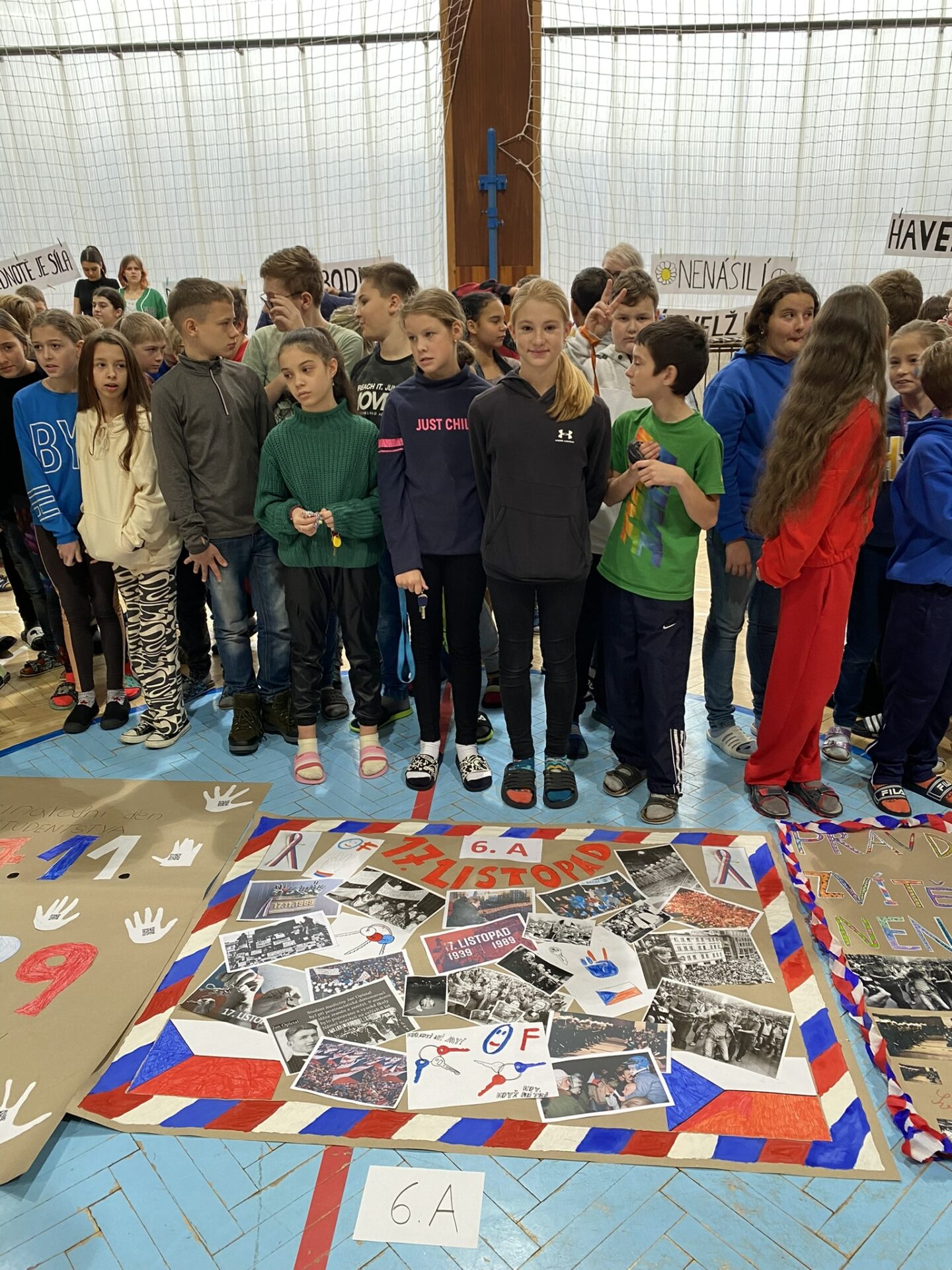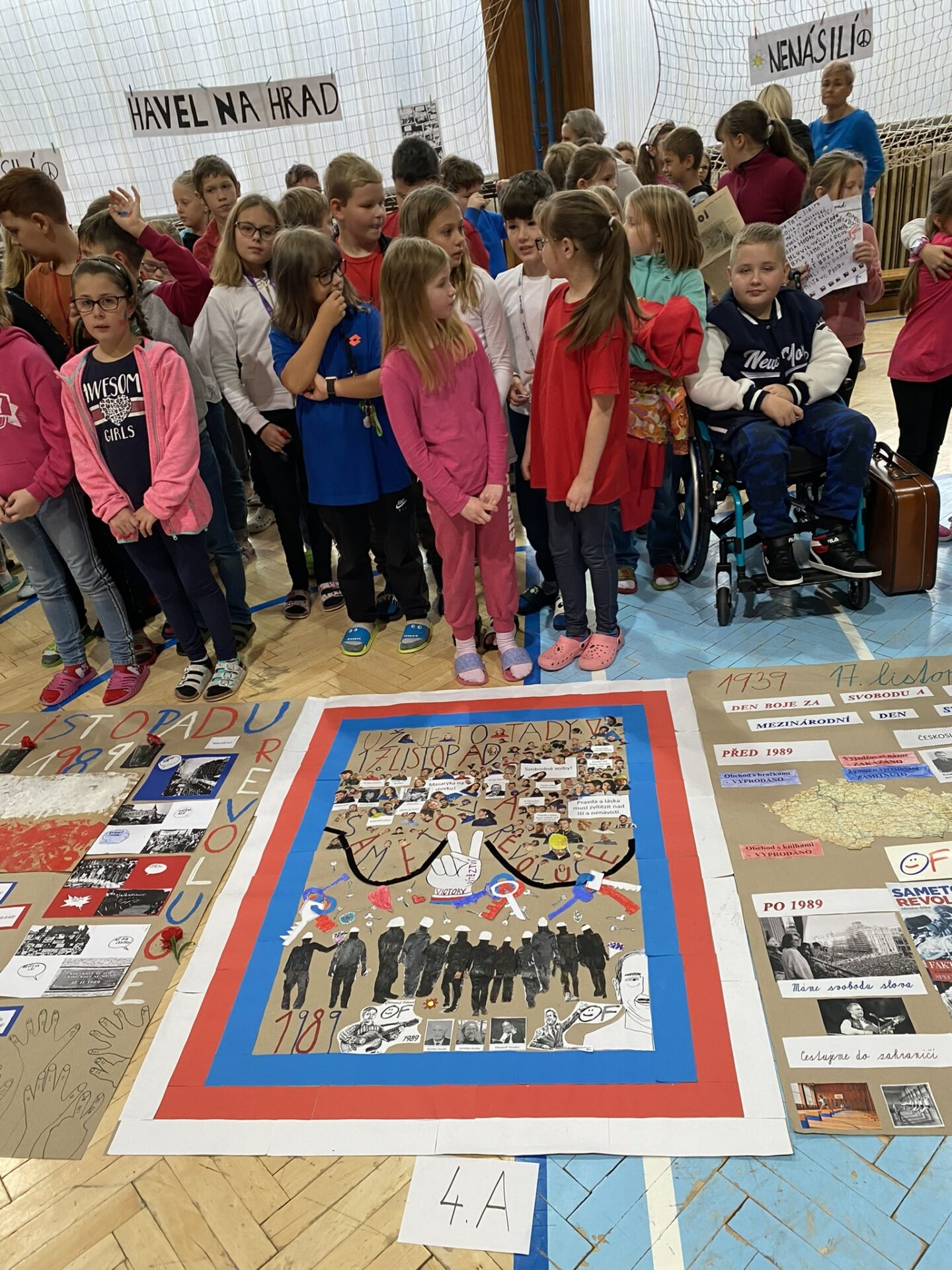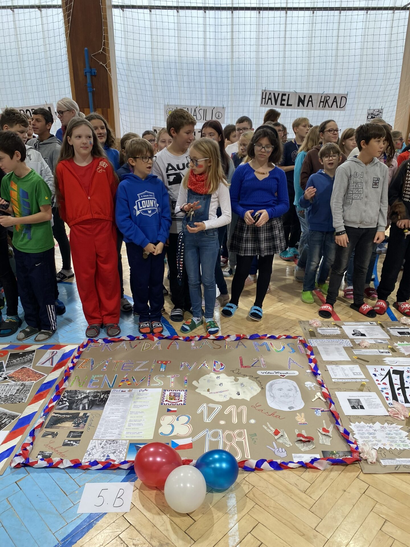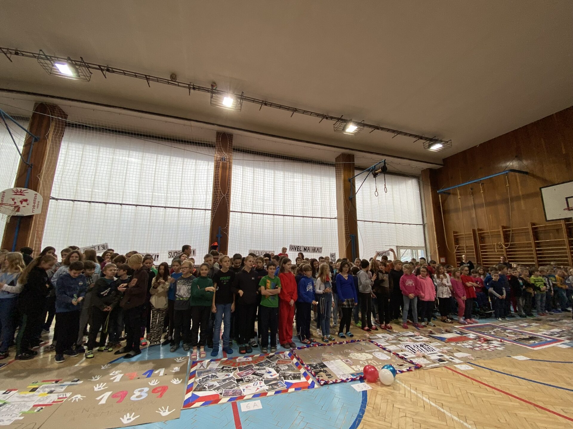 Společně s žáky jsme si připomněli výročí 33 let od listopadových událostí v roce 1989. Každá třída zpracovala svůj projekt na toto téma, v tělocvičně poté proběhlo společné setkání, vernisáž projektů, zazněla Modlitba pro Martu, studentská hymna a hymna ČR.