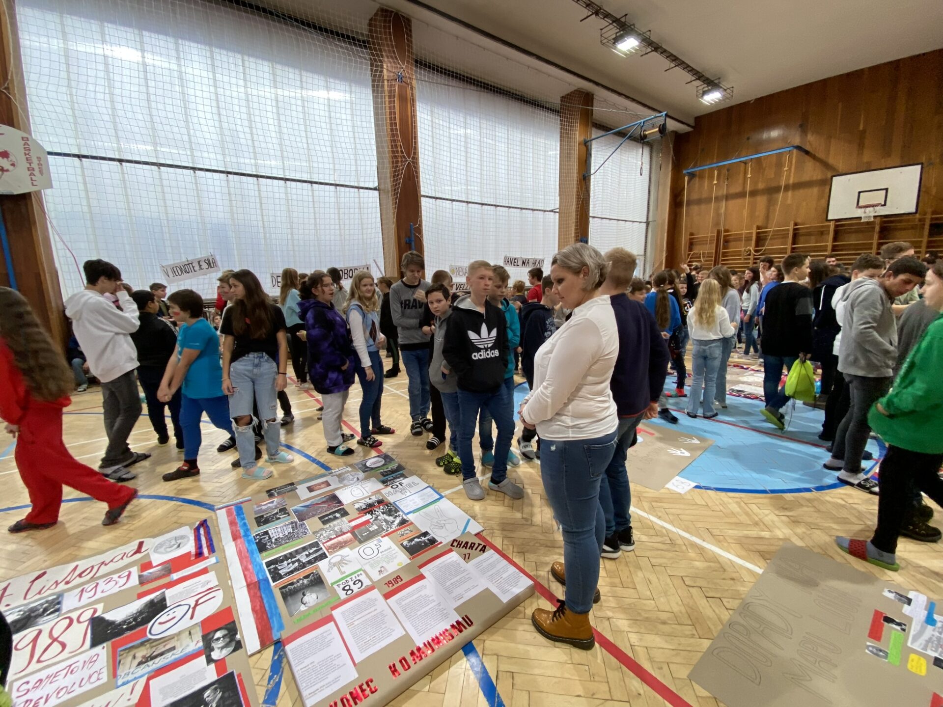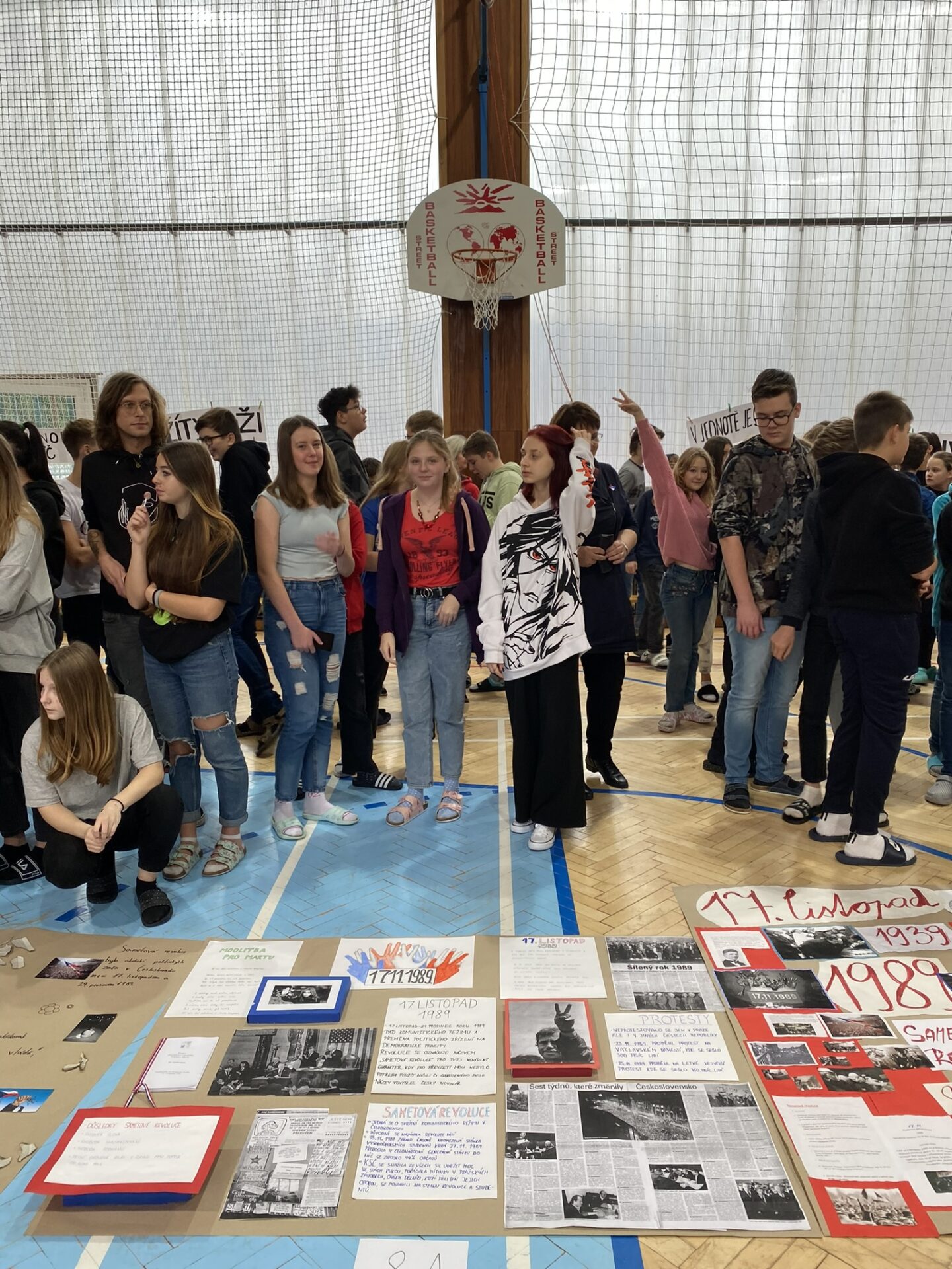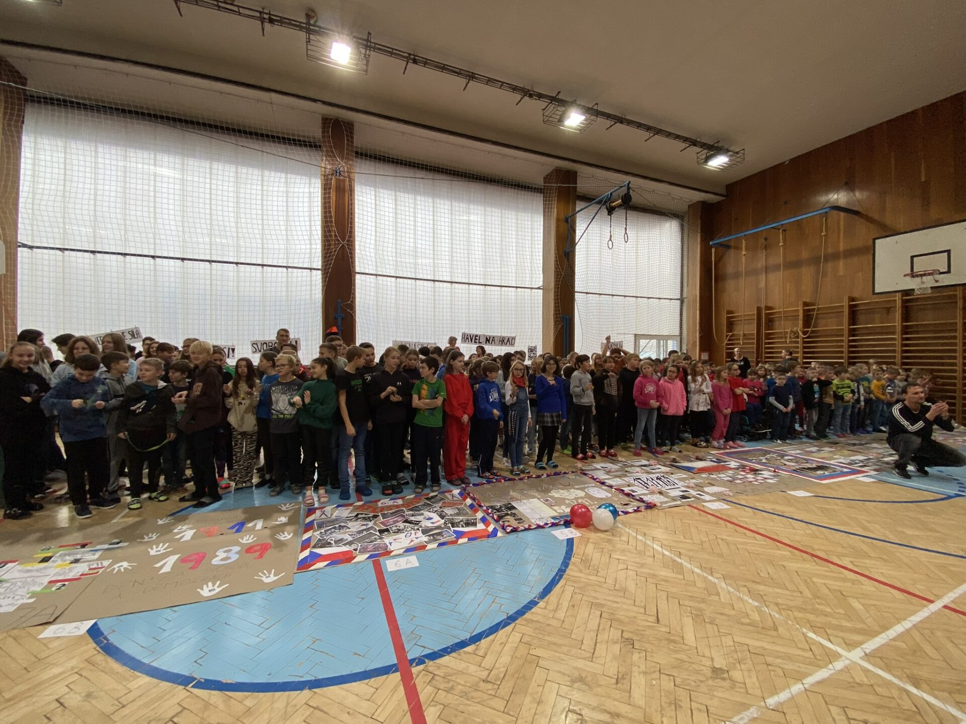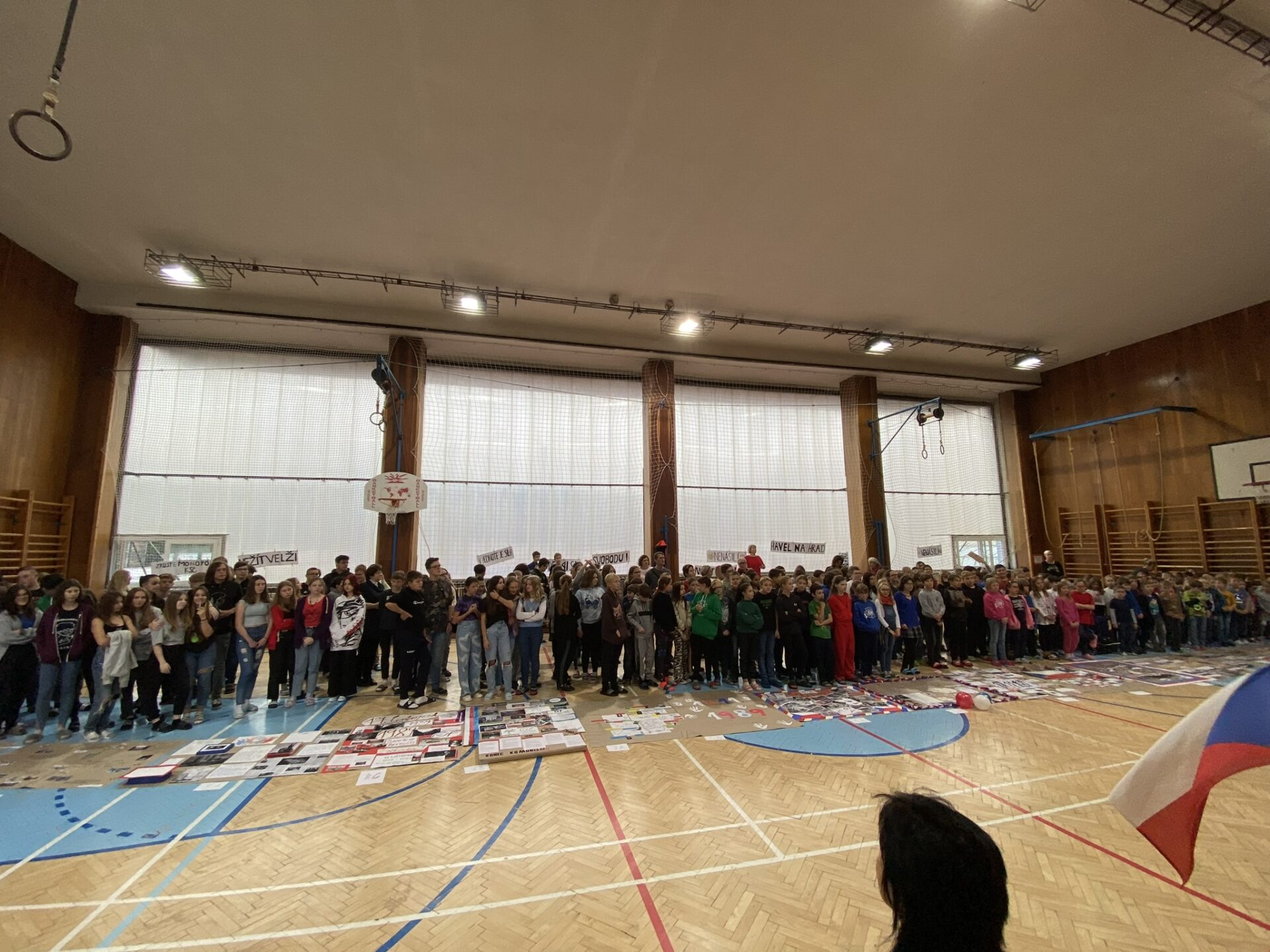 Společně s žáky jsme si připomněli výročí 33 let od listopadových událostí v roce 1989. Každá třída zpracovala svůj projekt na toto téma, v tělocvičně poté proběhlo společné setkání, vernisáž projektů, zazněla Modlitba pro Martu, studentská hymna a hymna ČR.