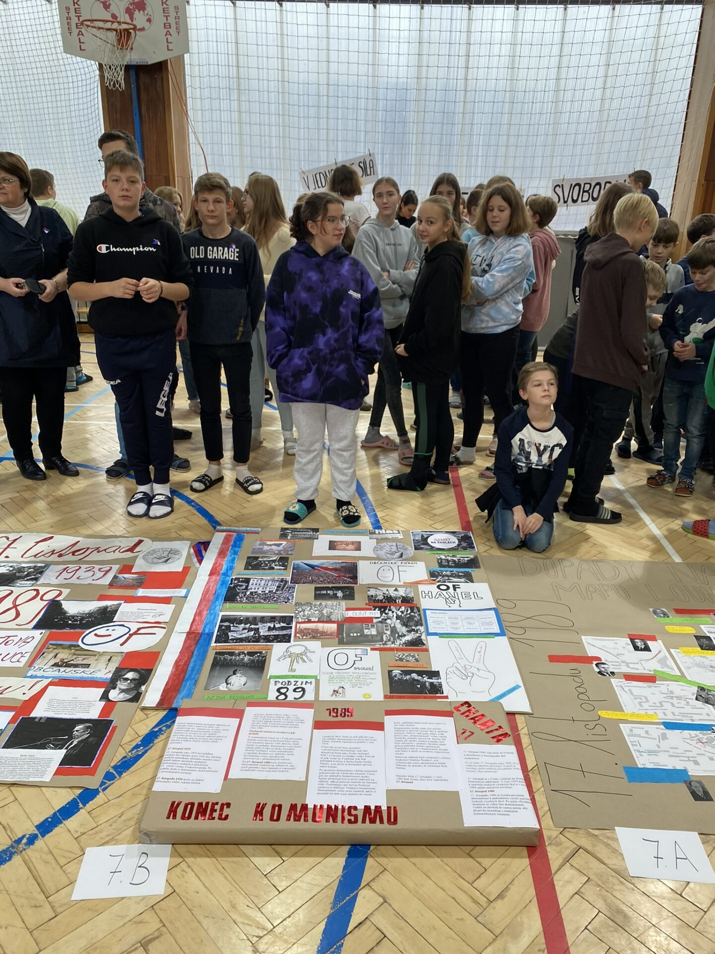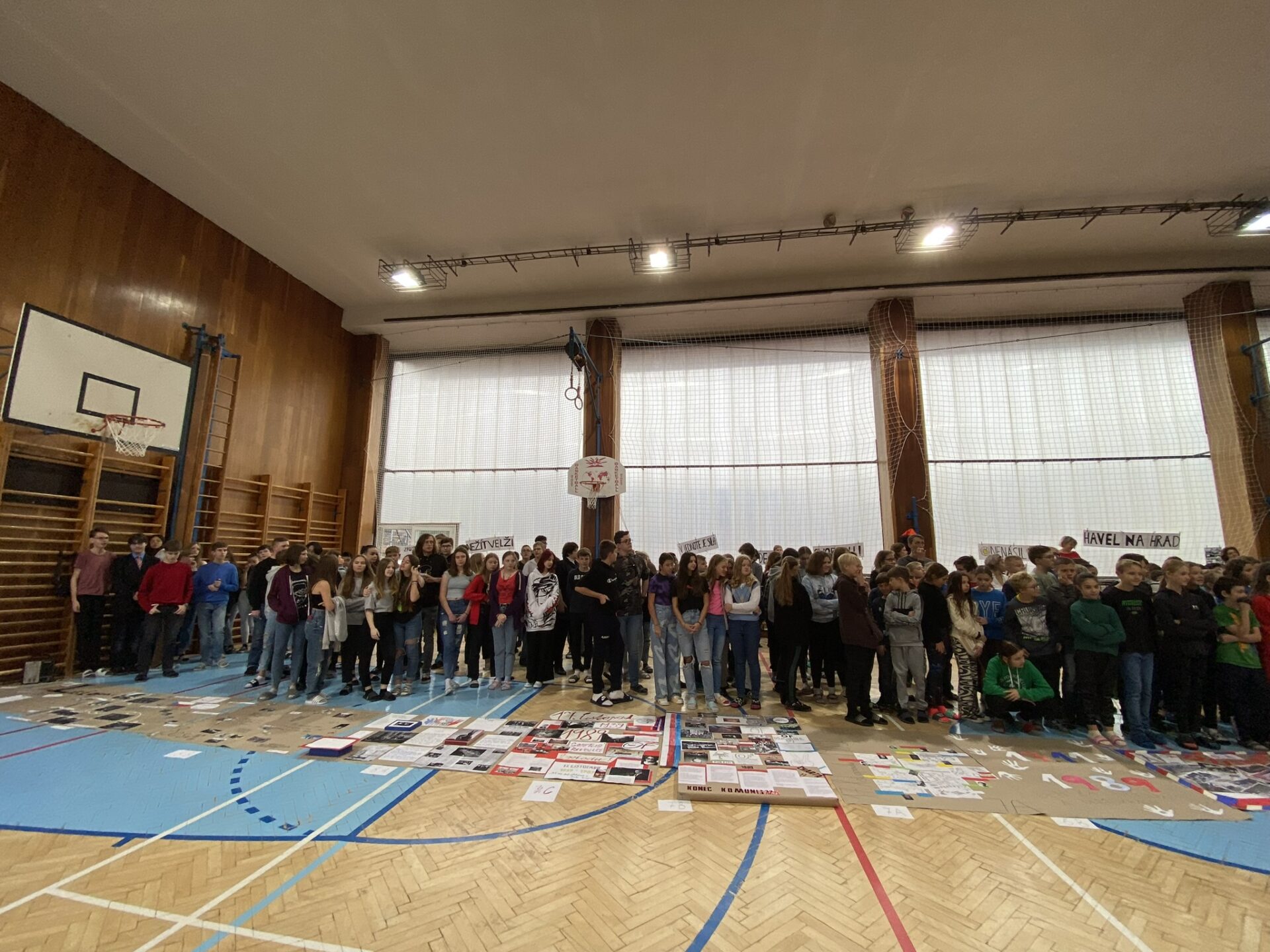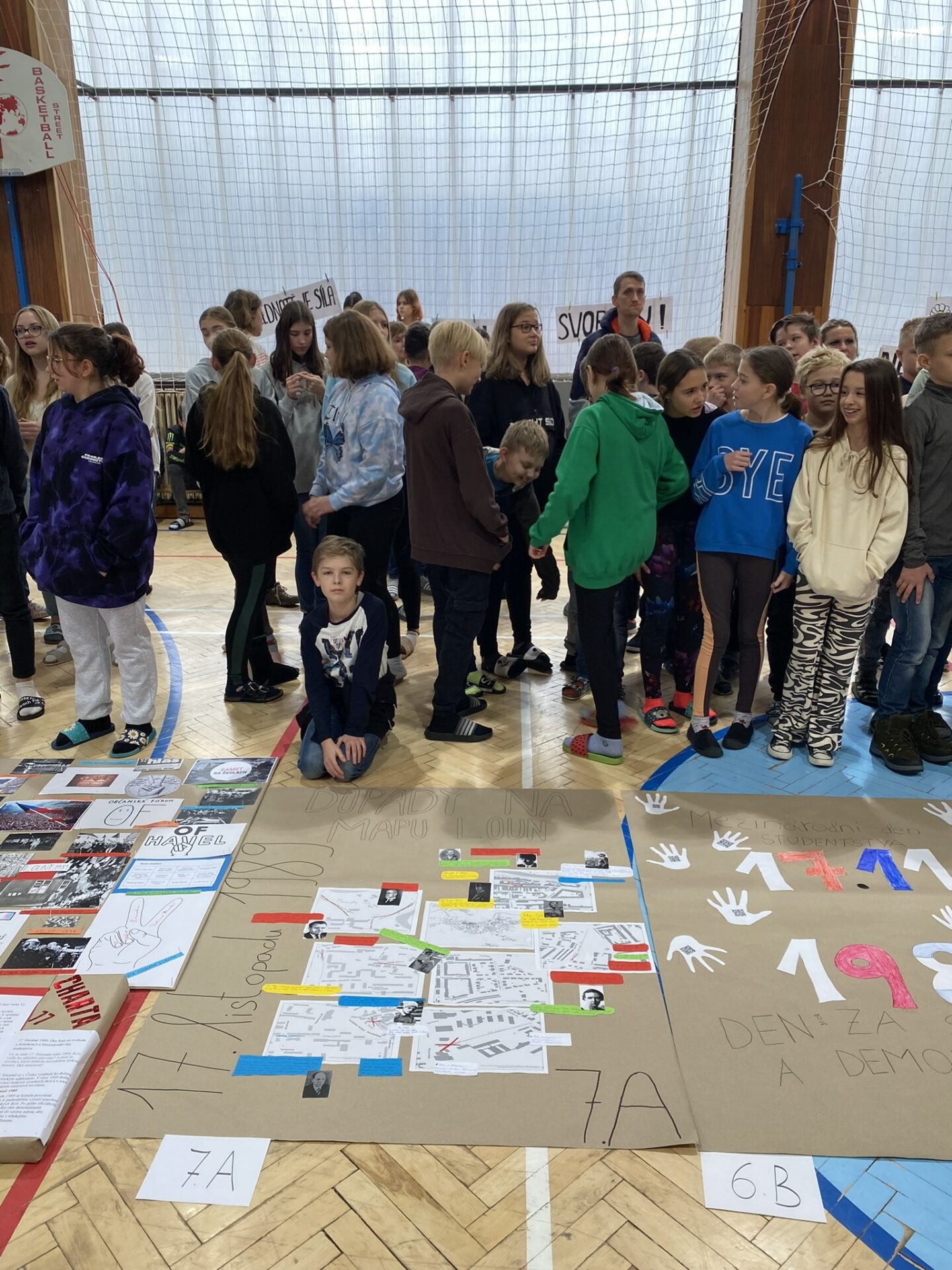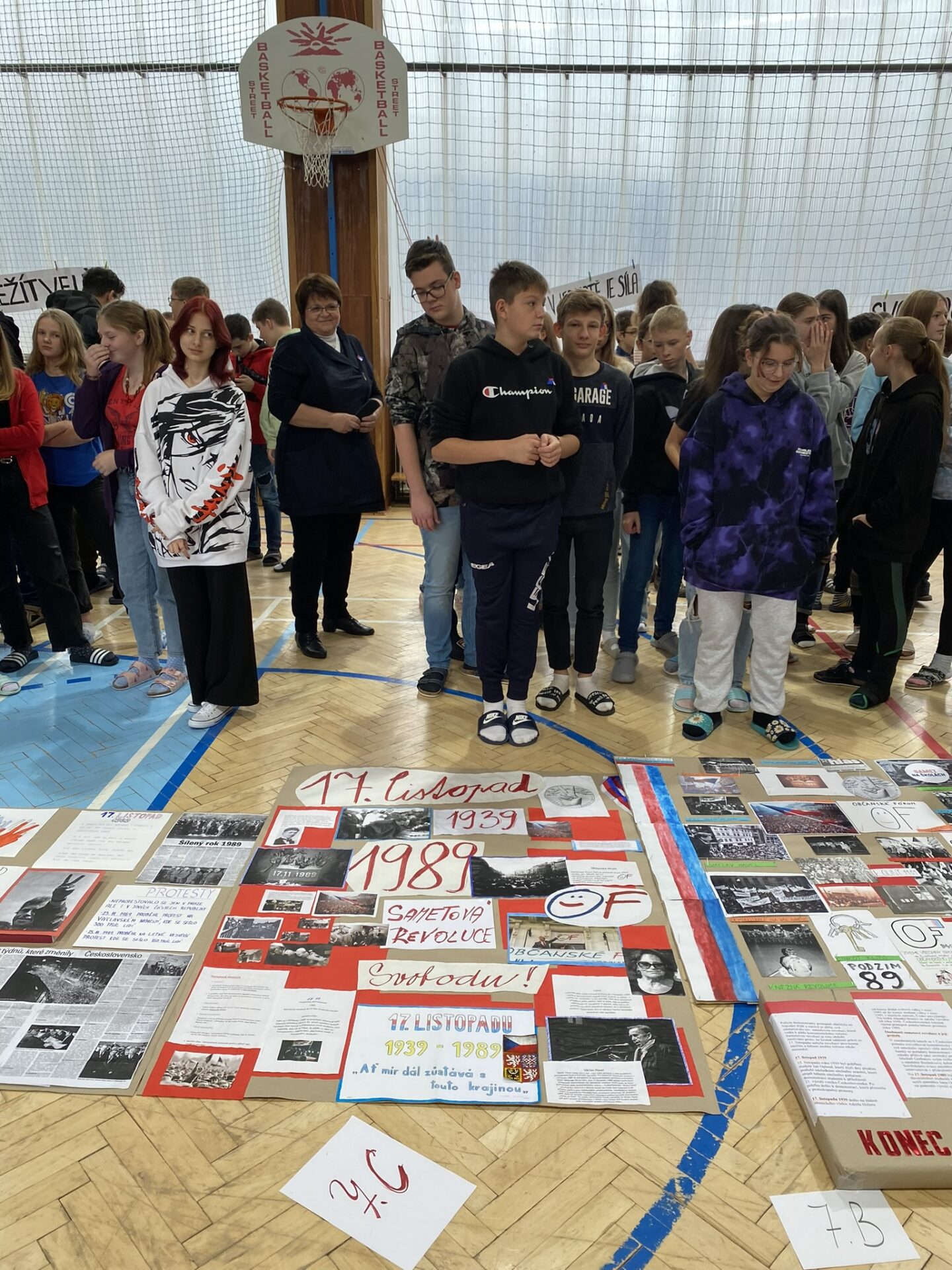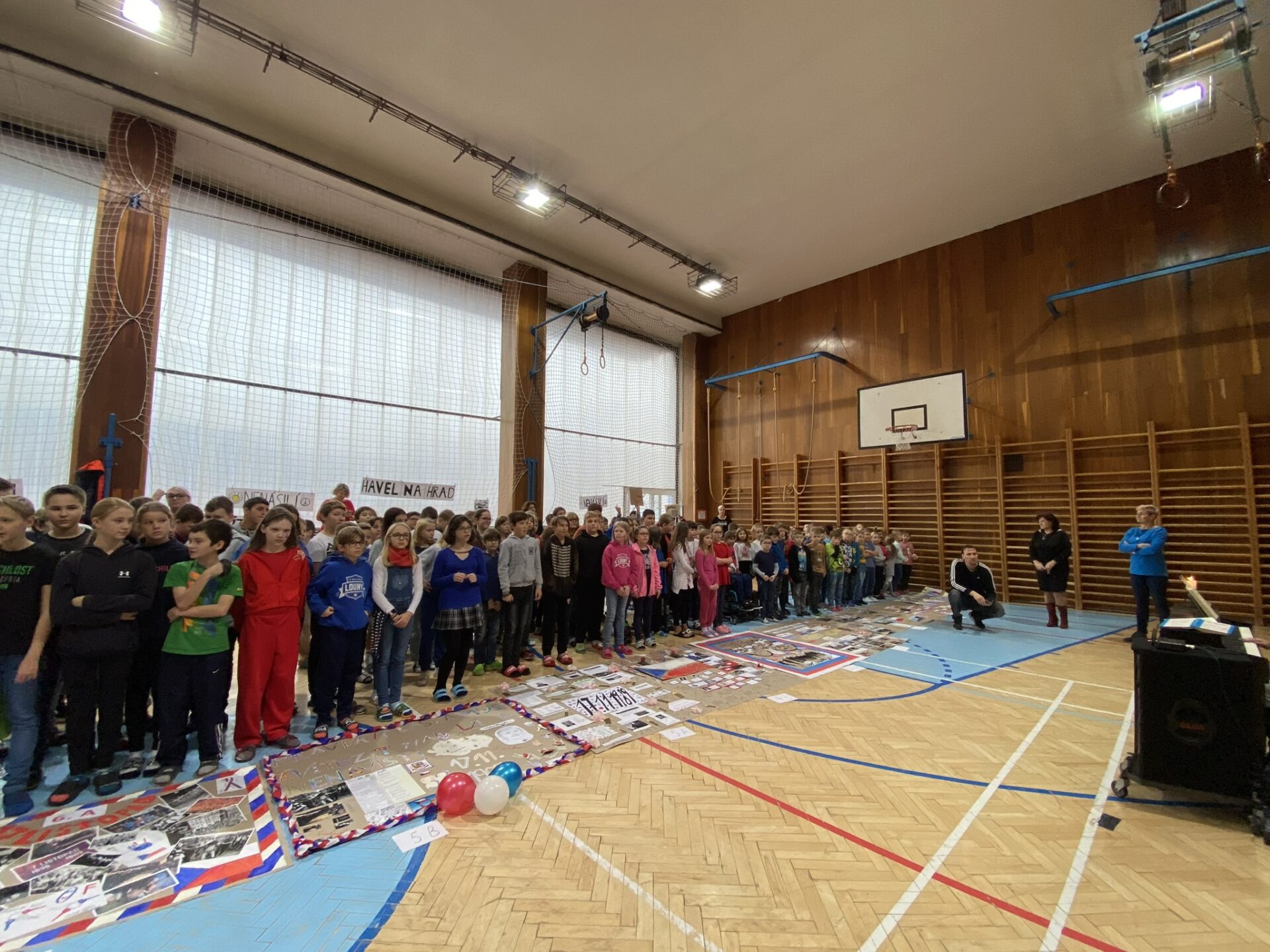 Společně s žáky jsme si připomněli výročí 33 let od listopadových událostí v roce 1989. Každá třída zpracovala svůj projekt na toto téma, v tělocvičně poté proběhlo společné setkání, vernisáž projektů, zazněla Modlitba pro Martu, studentská hymna a hymna ČR.