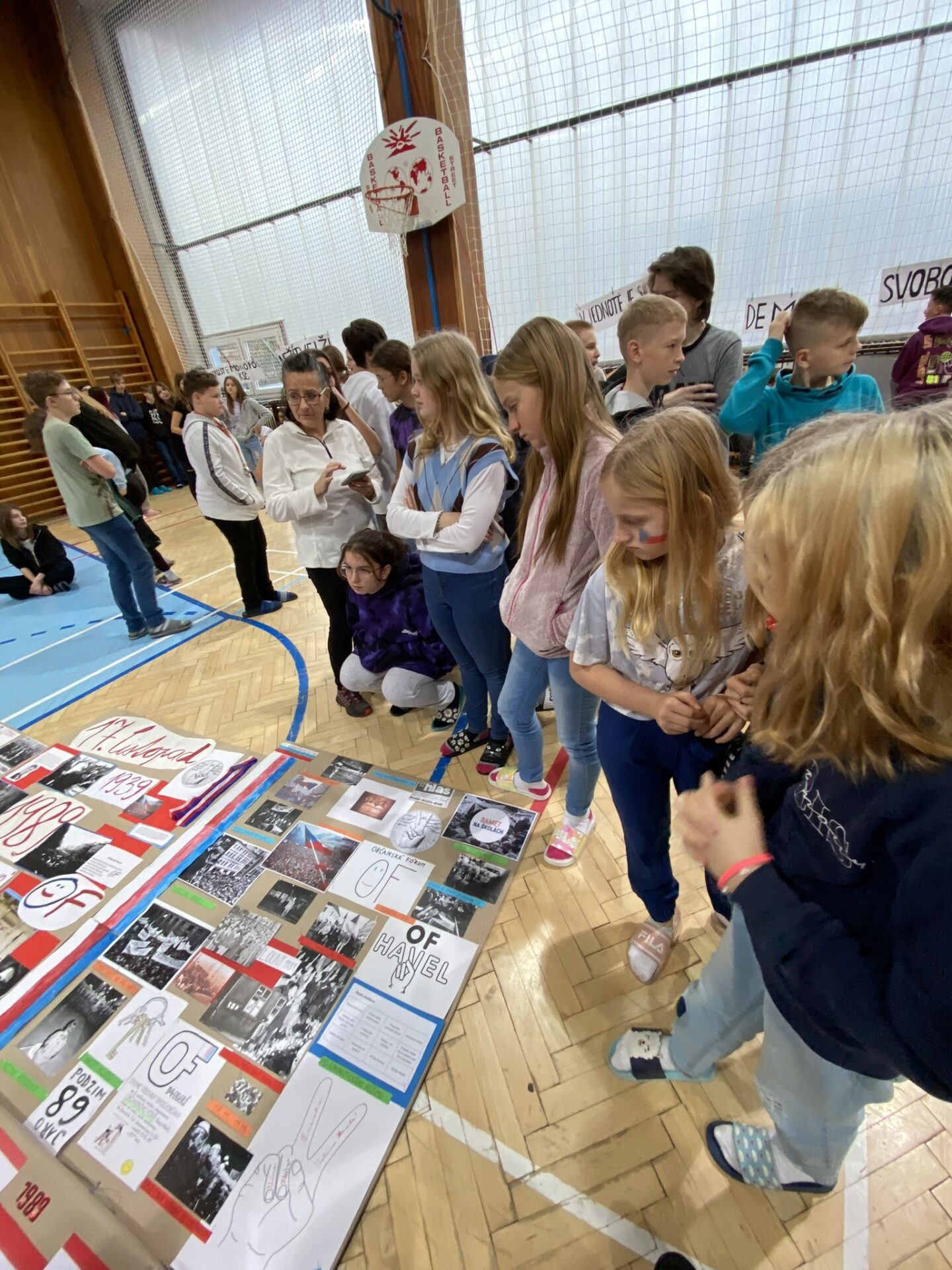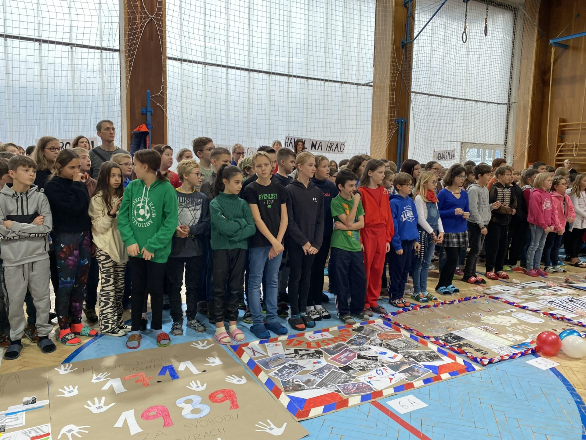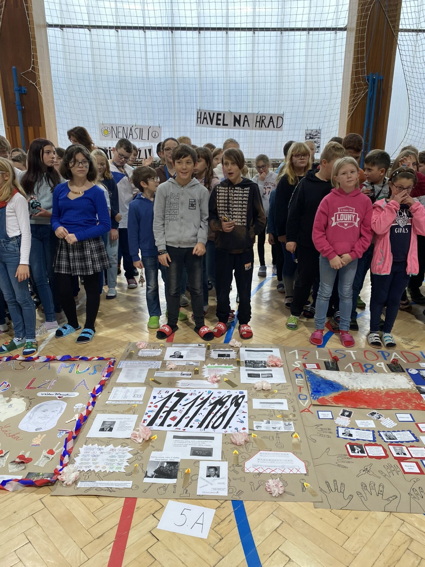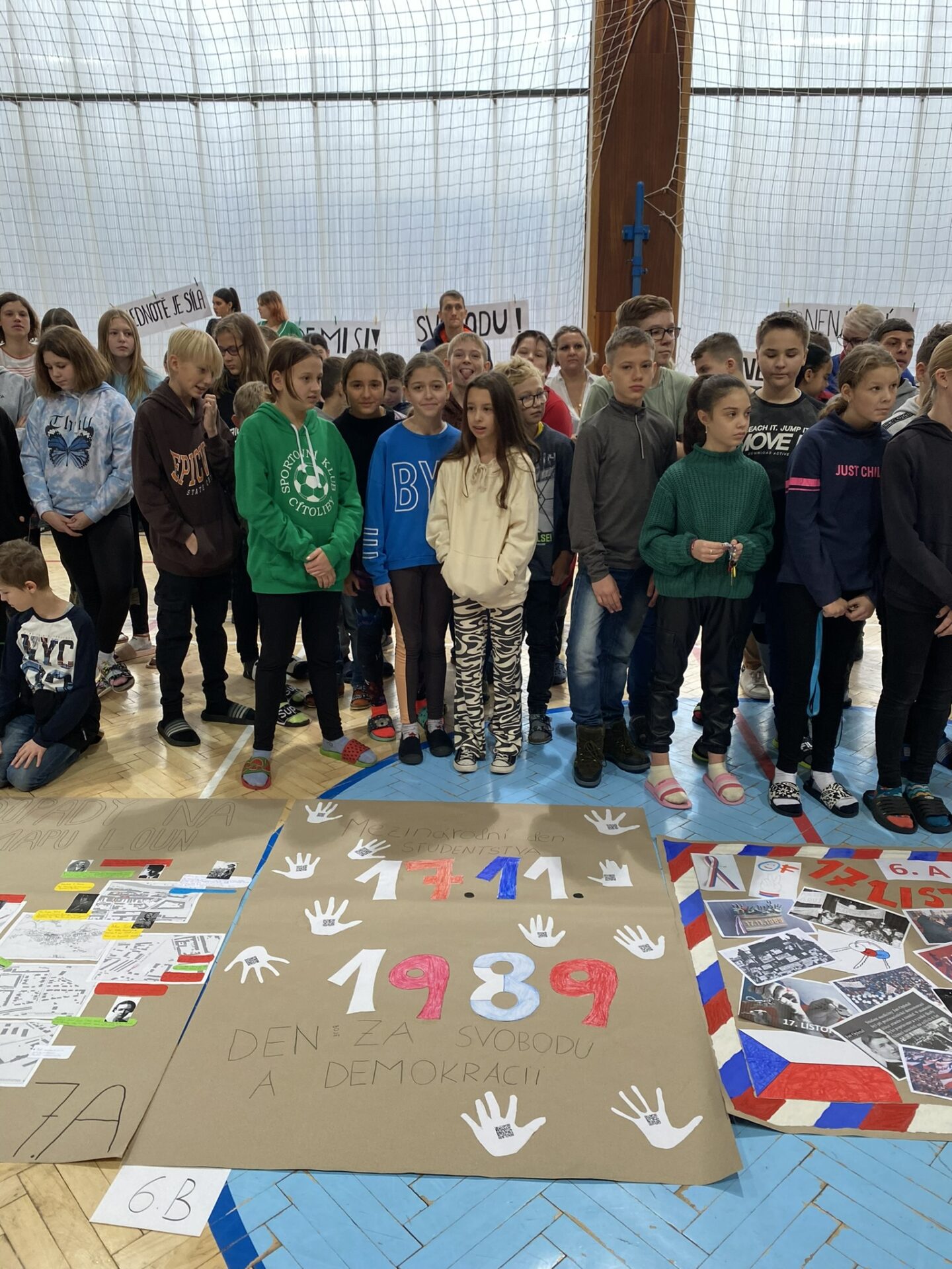 Společně s žáky jsme si připomněli výročí 33 let od listopadových událostí v roce 1989. Každá třída zpracovala svůj projekt na toto téma, v tělocvičně poté proběhlo společné setkání, vernisáž projektů, zazněla Modlitba pro Martu, studentská hymna a hymna ČR.