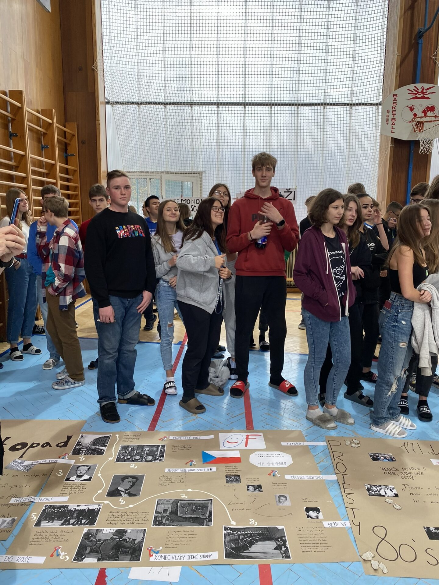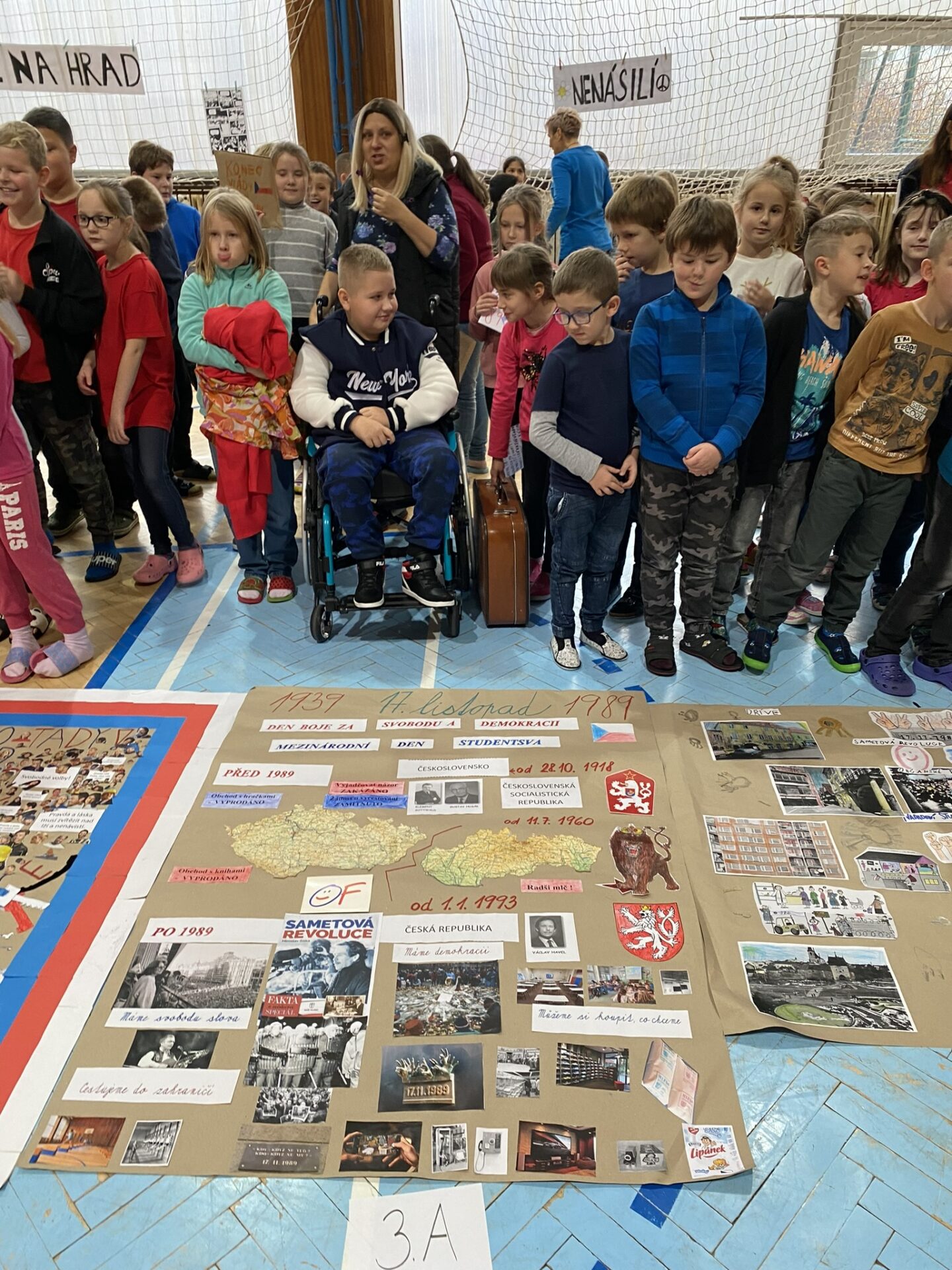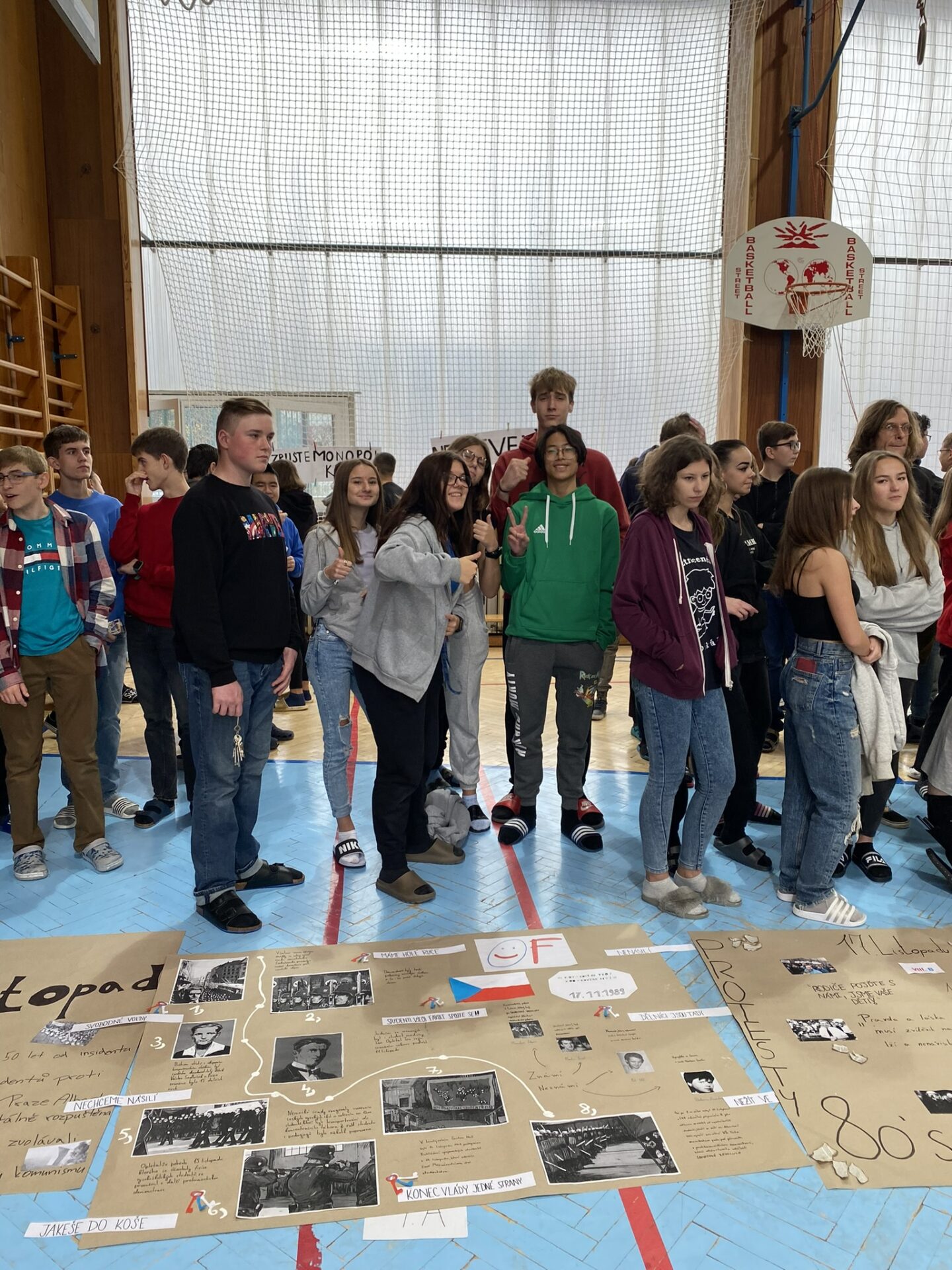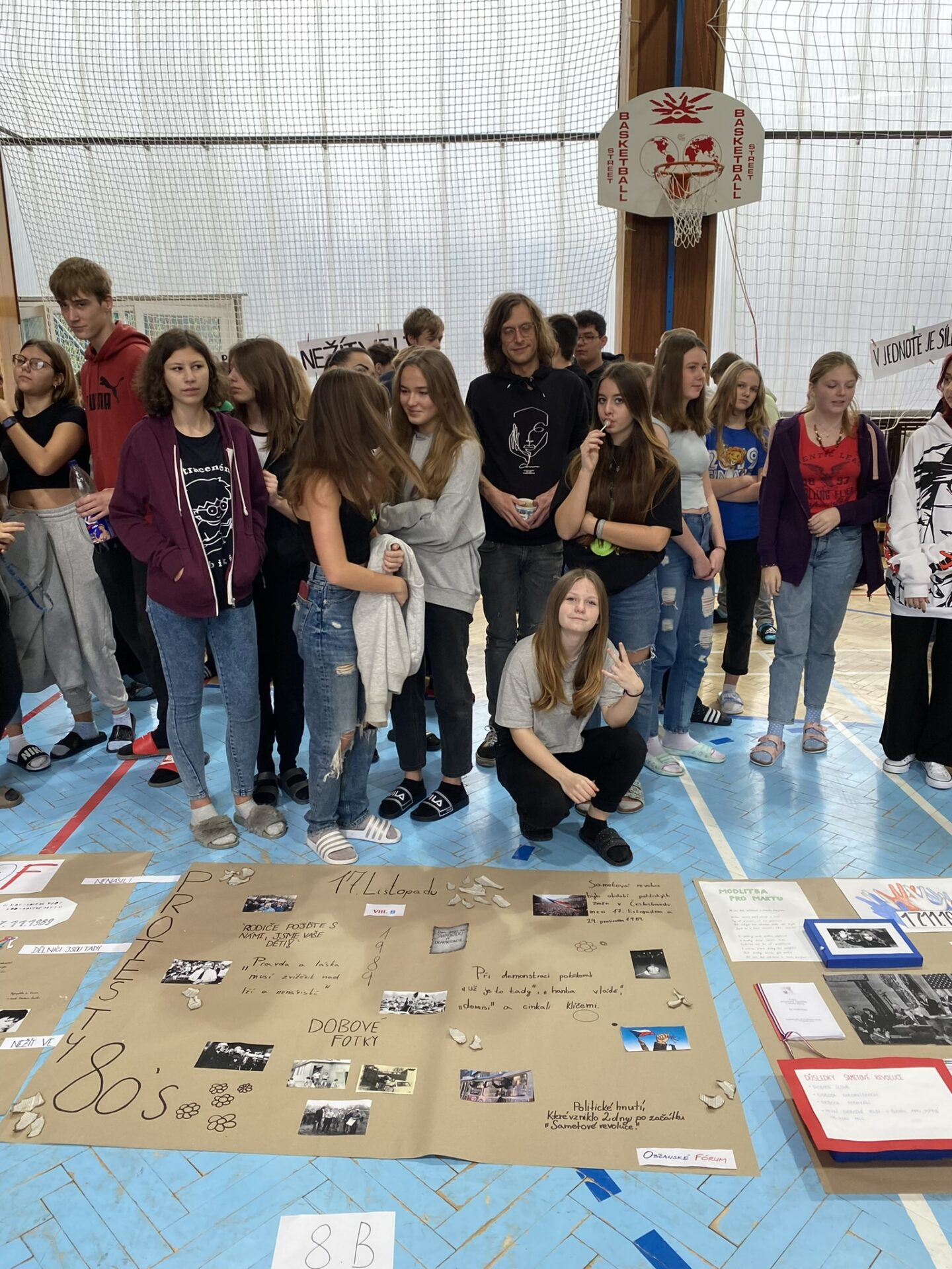 Společně s žáky jsme si připomněli výročí 33 let od listopadových událostí v roce 1989. Každá třída zpracovala svůj projekt na toto téma, v tělocvičně poté proběhlo společné setkání, vernisáž projektů, zazněla Modlitba pro Martu, studentská hymna a hymna ČR.